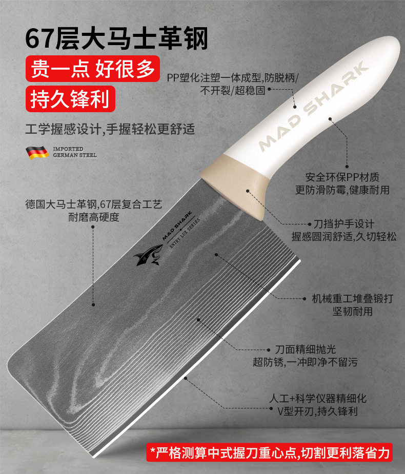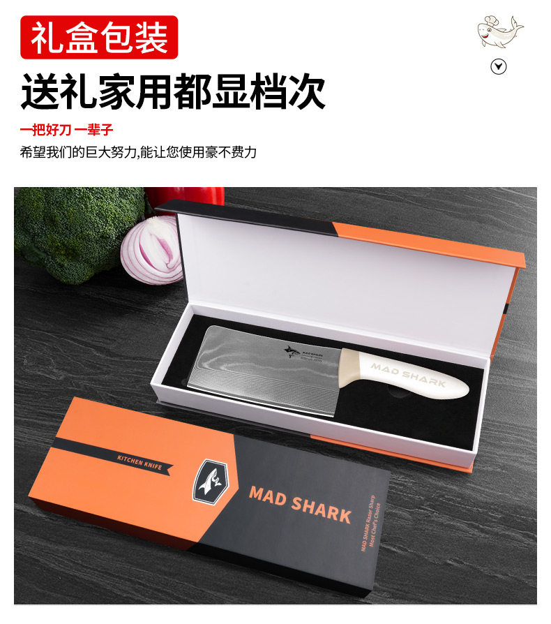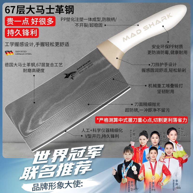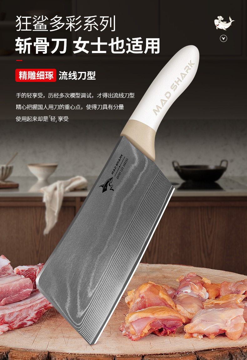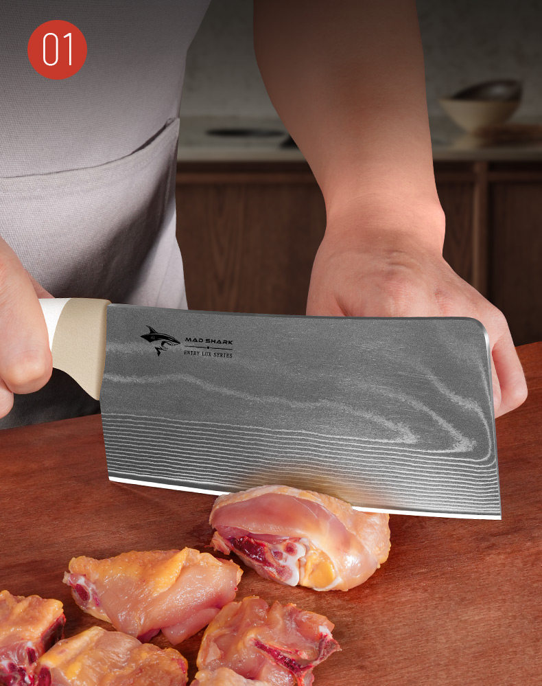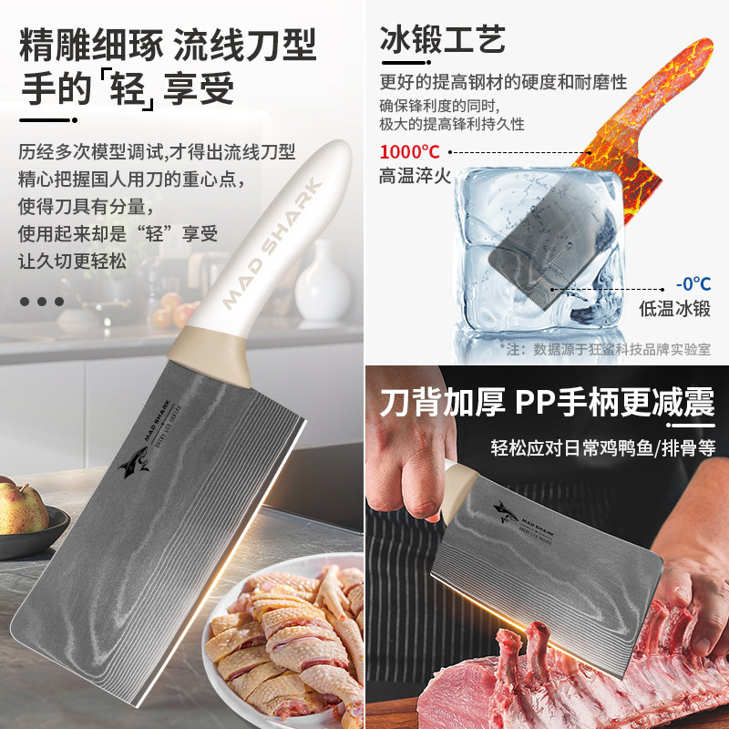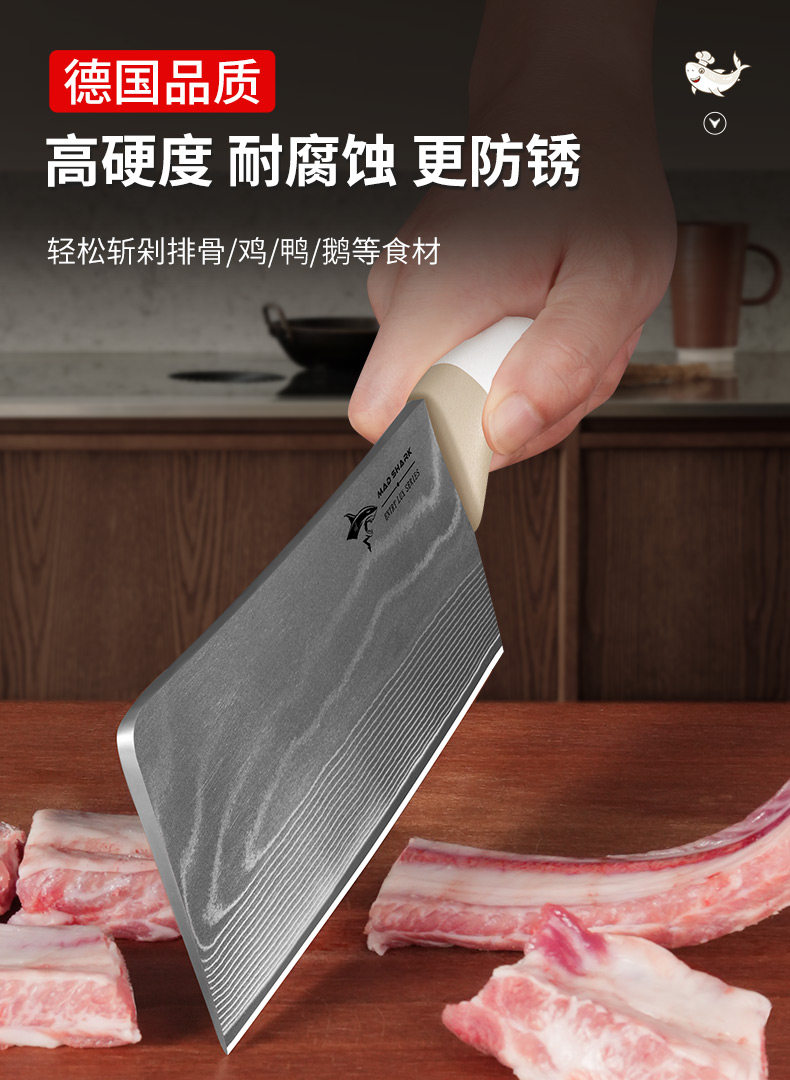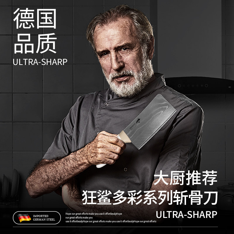 Нож для измельчения костей Crazy Shark Damascus для домашнего использования, специально для измельчения крупных костей, утолщенный и высокой твердости, импортированный из Германии.