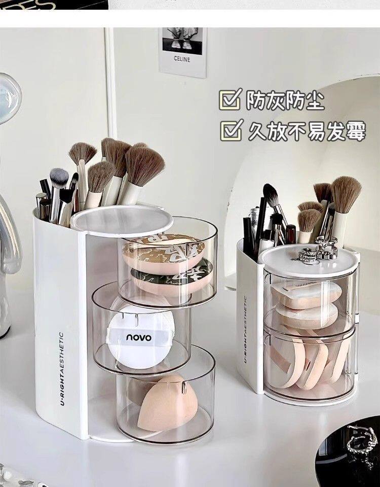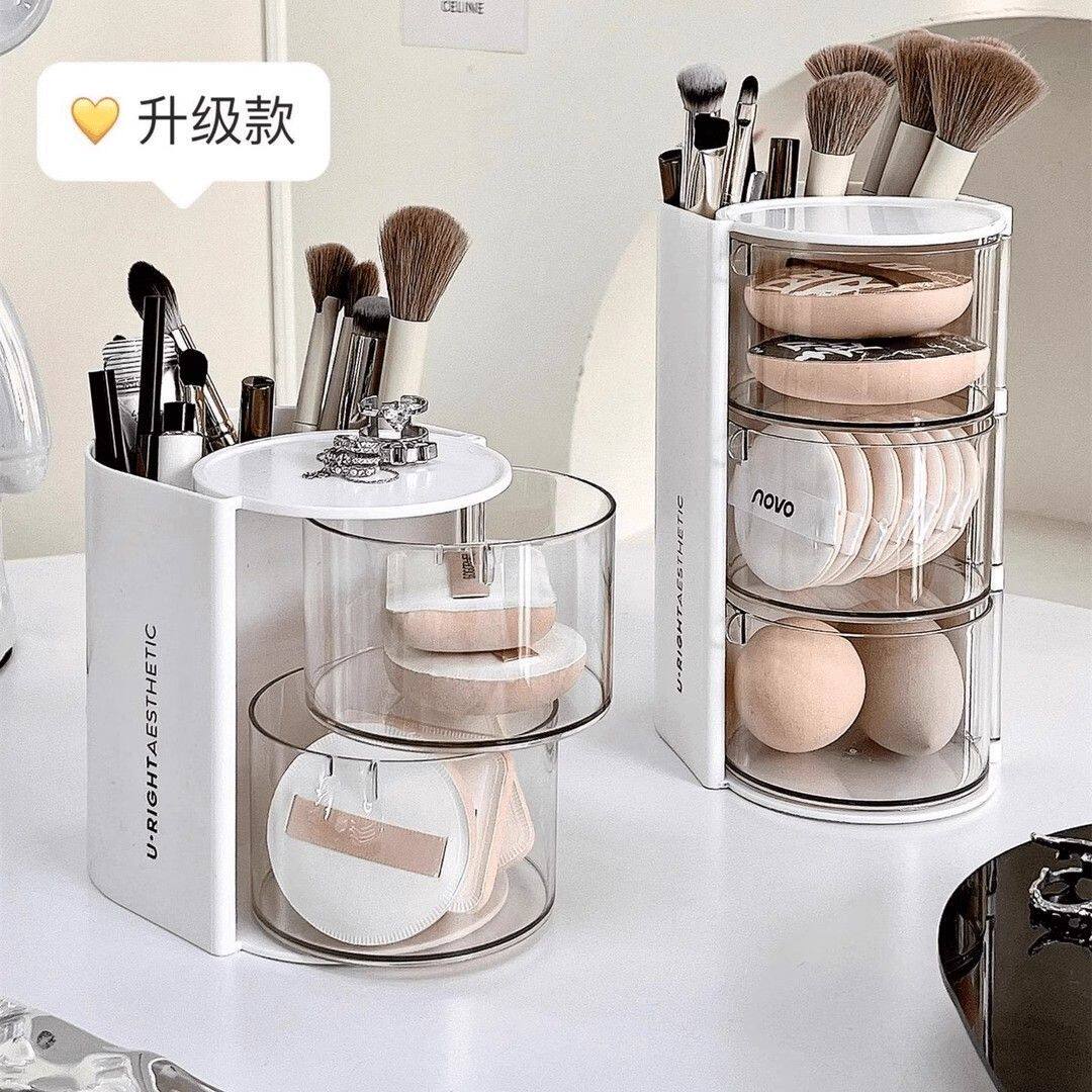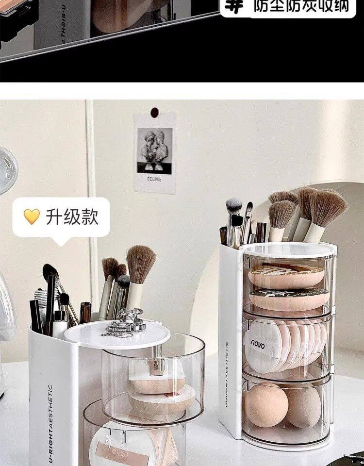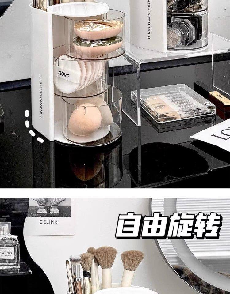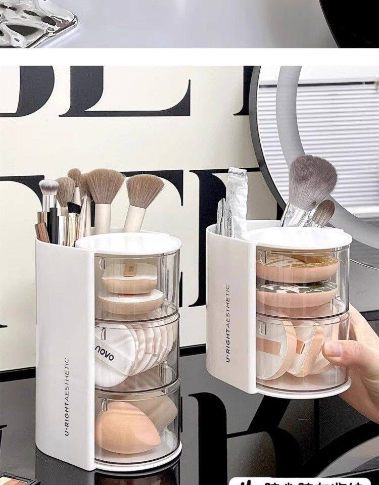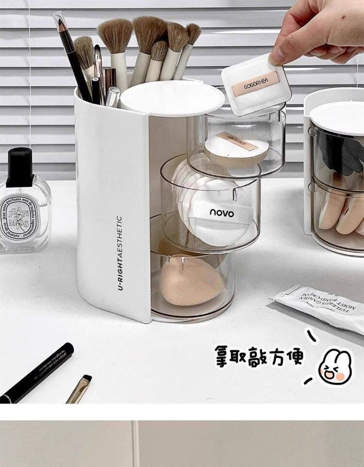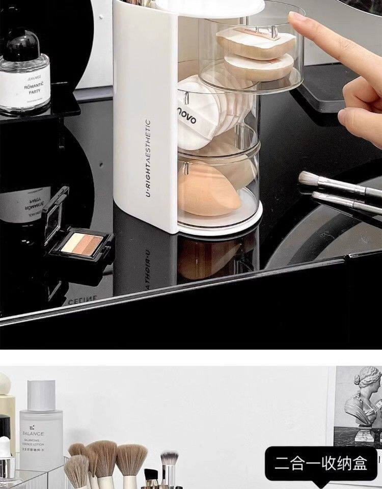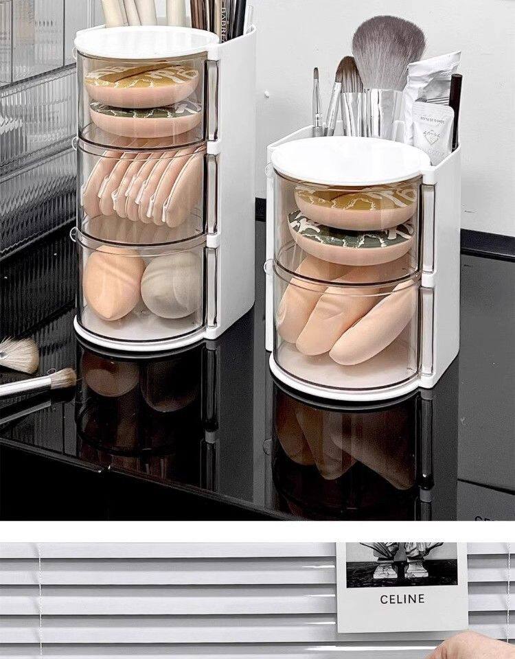 Крутящийся настольный спонж, коробка для хранения, туалетный столик, косметическая губка, кушон, помада, кисть, система хранения