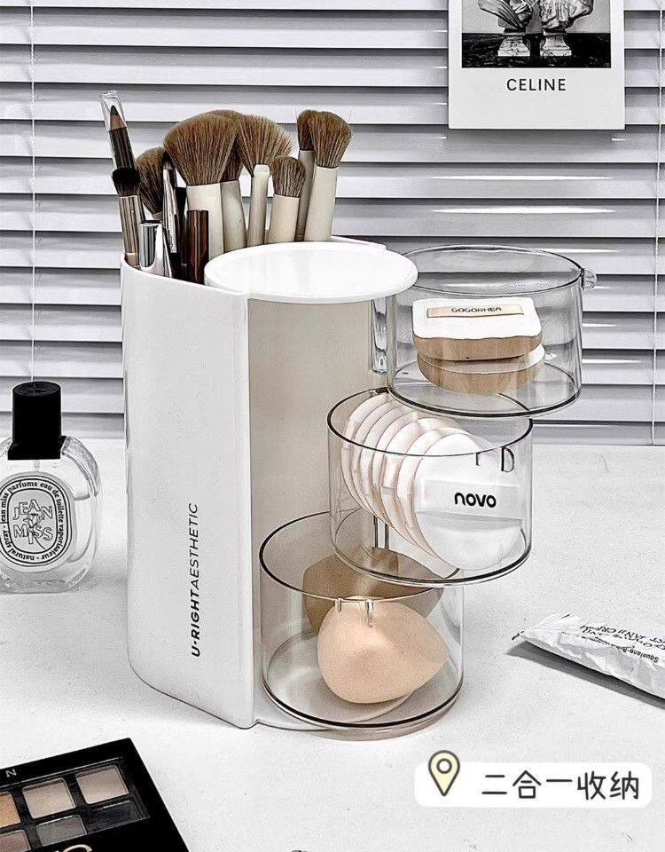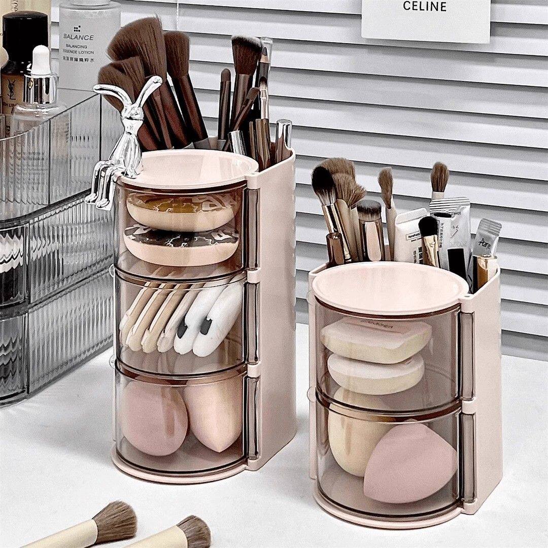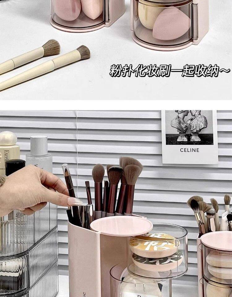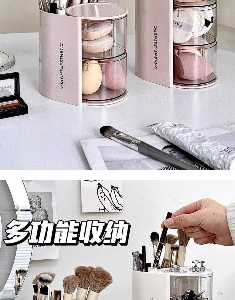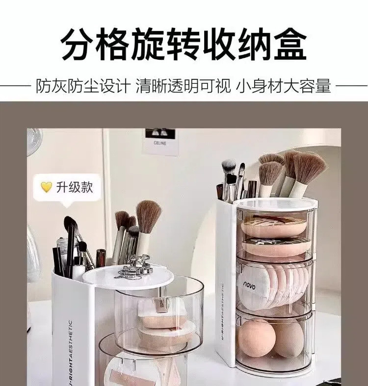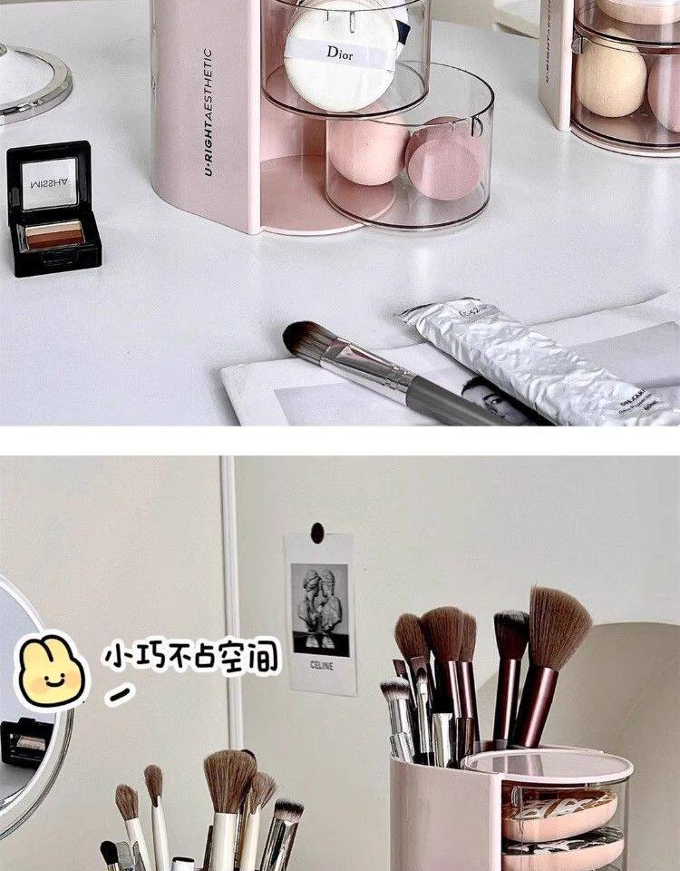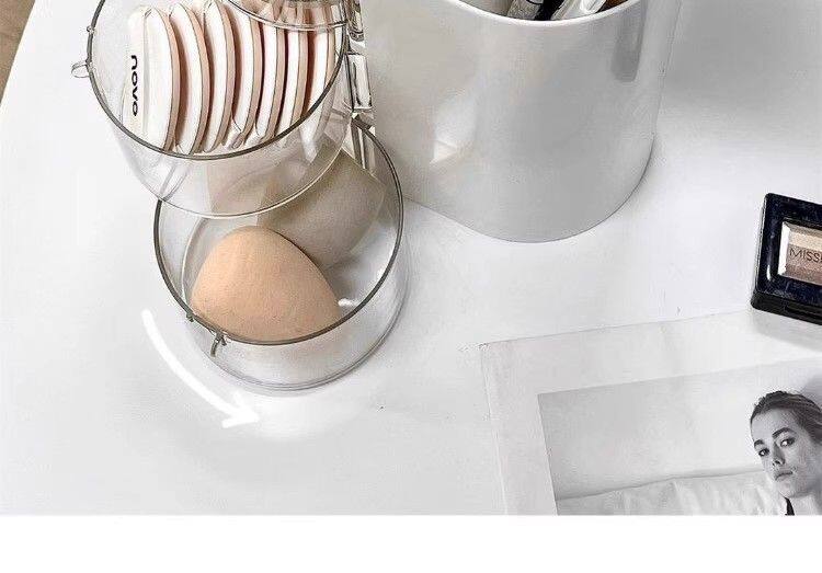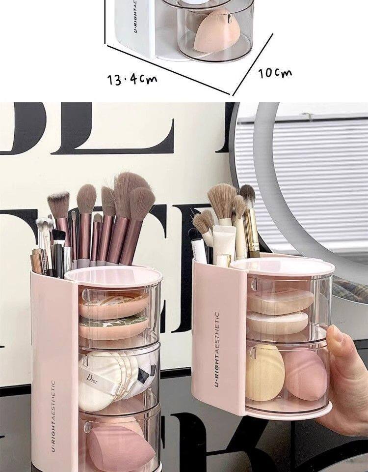 Крутящийся настольный спонж, коробка для хранения, туалетный столик, косметическая губка, кушон, помада, кисть, система хранения