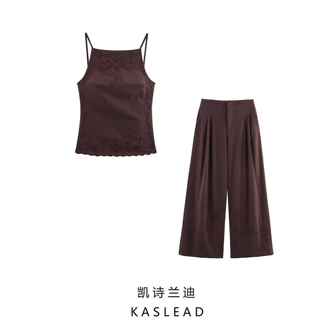 KASLEAD новая женская одежда в европейском и американском стиле, модный топ и брюки с вышивкой на бретельках 0881036 0881406