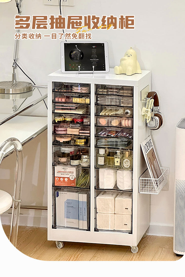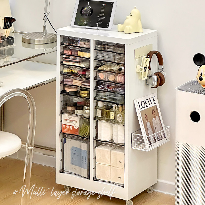 Напольный шкаф для хранения косметики большой вместимости, передвижной многослойный туалетный столик, боковая маска, вторичный многослойный железный шкаф