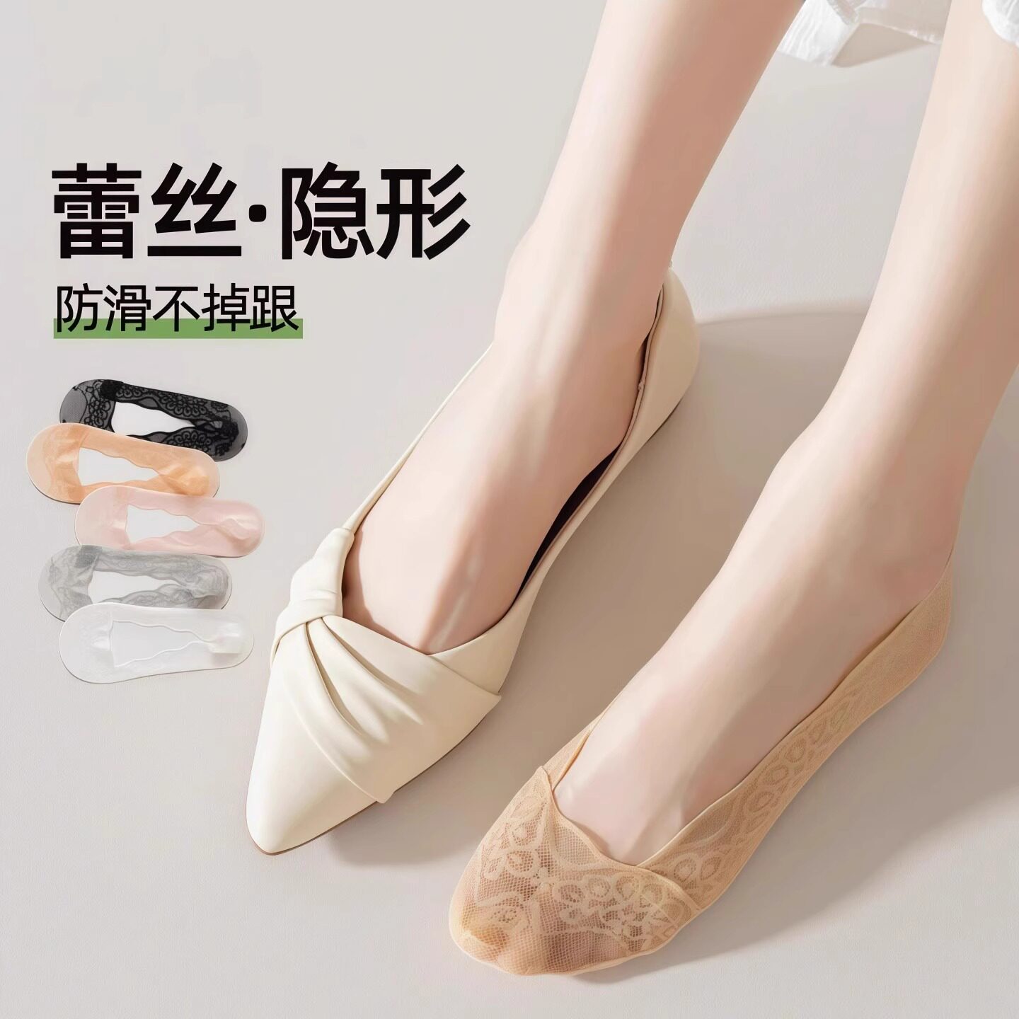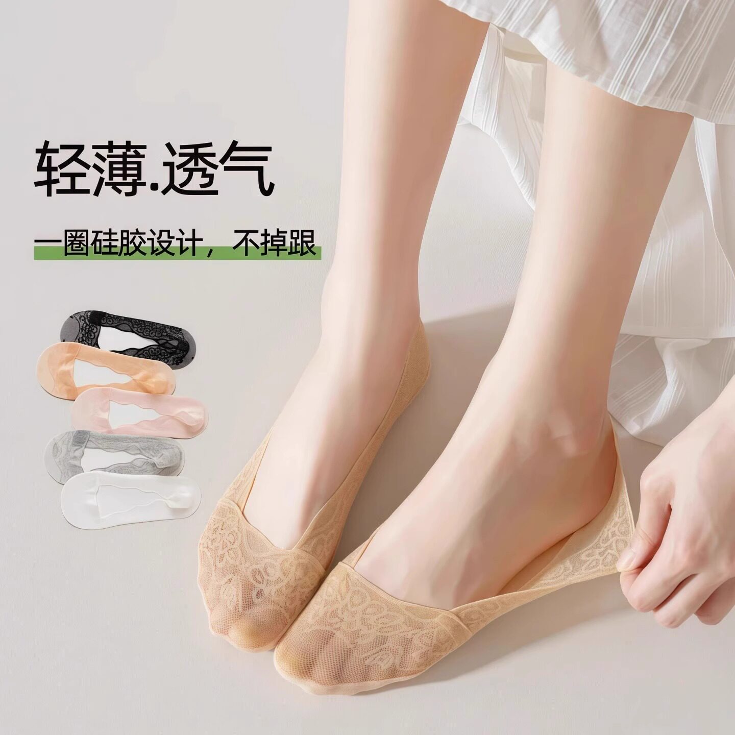 Кружевные нескользящие хлопковые летние тонкие невидимые носки