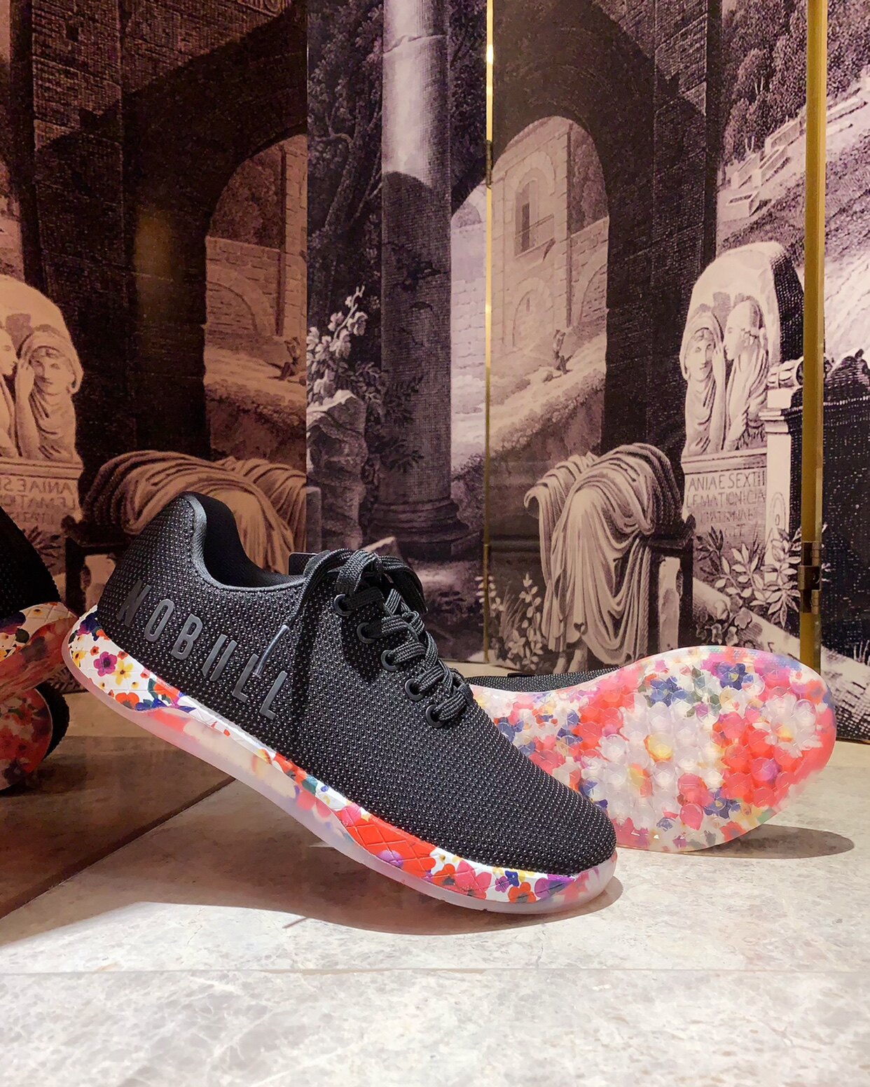 Уникальная черная легкая спортивная женская обувь на шнуровке с цветочной подошвой и уникальной защитой от грязи и обрастания от American Niche 37