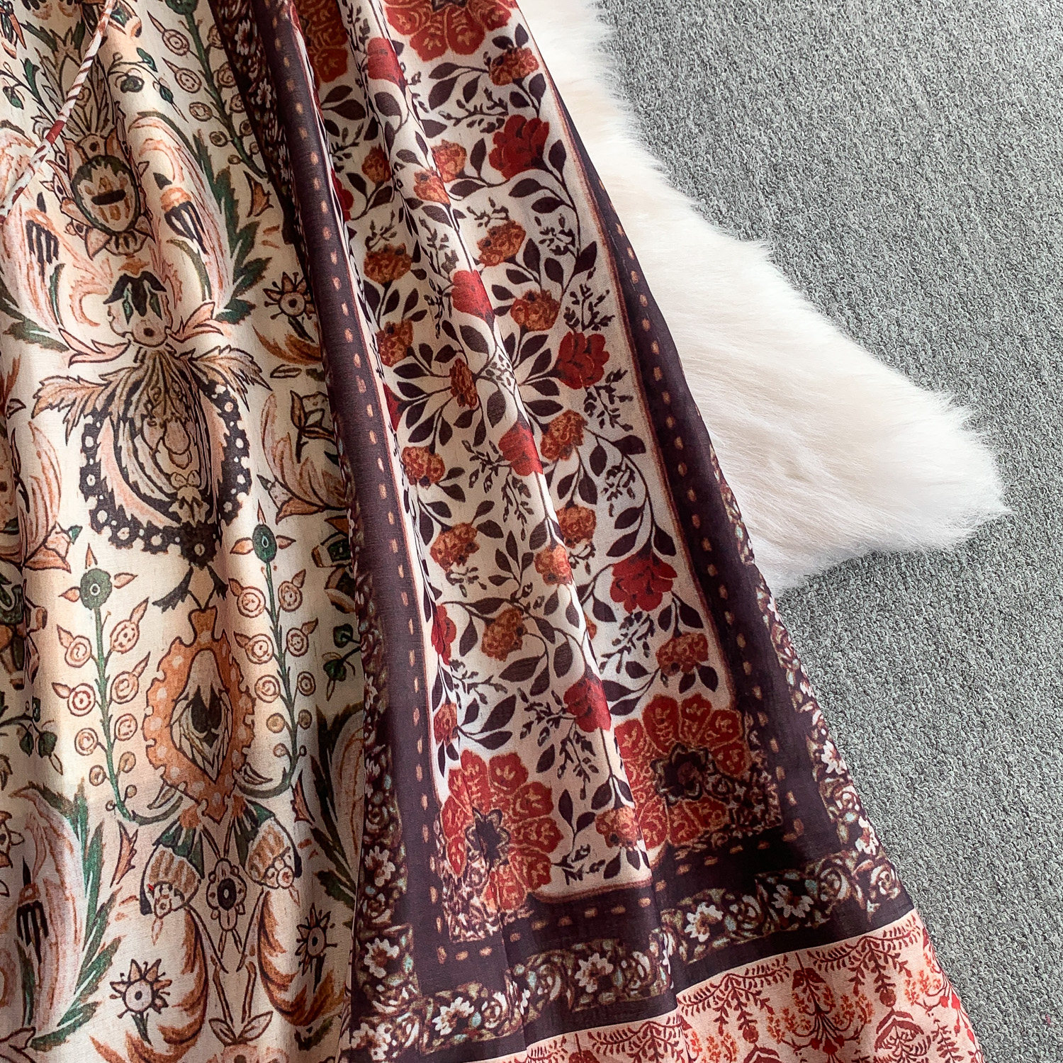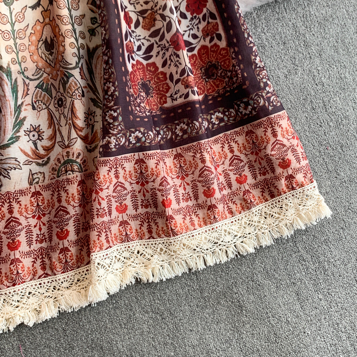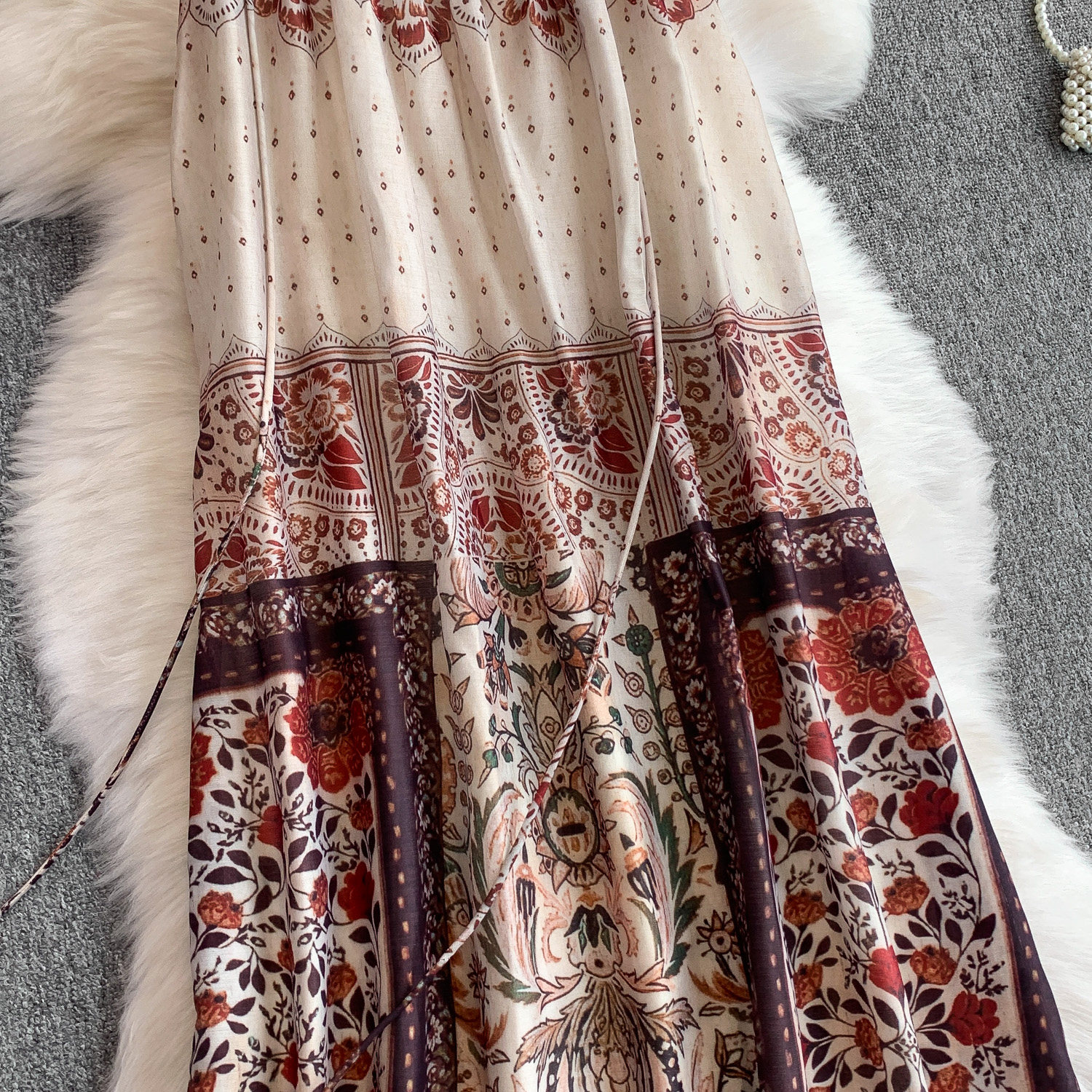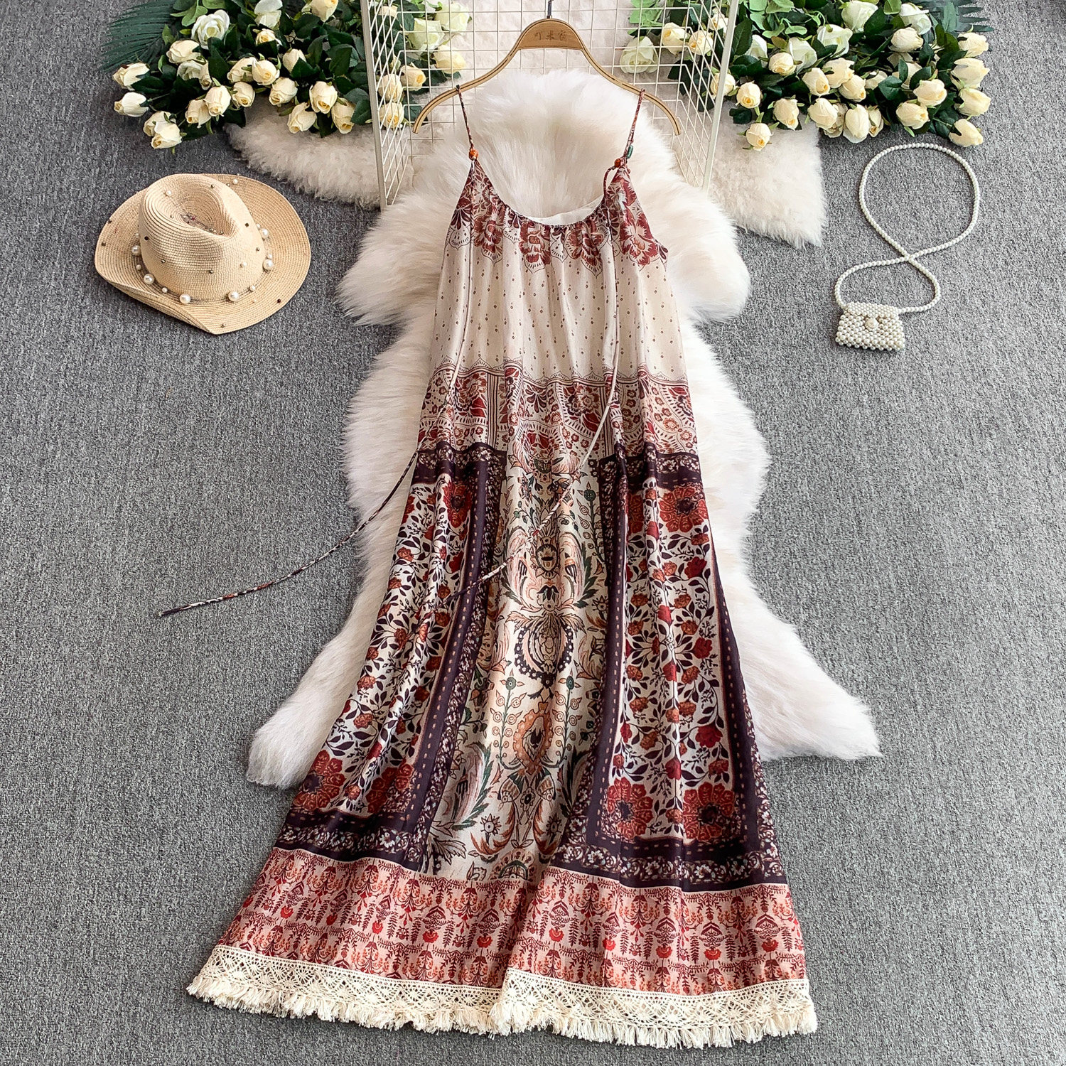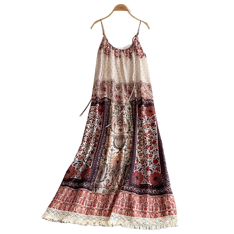 Ретро летнее платье, длинная юбка, китайский стиль, в цветочек, свободный крой, А-силуэт