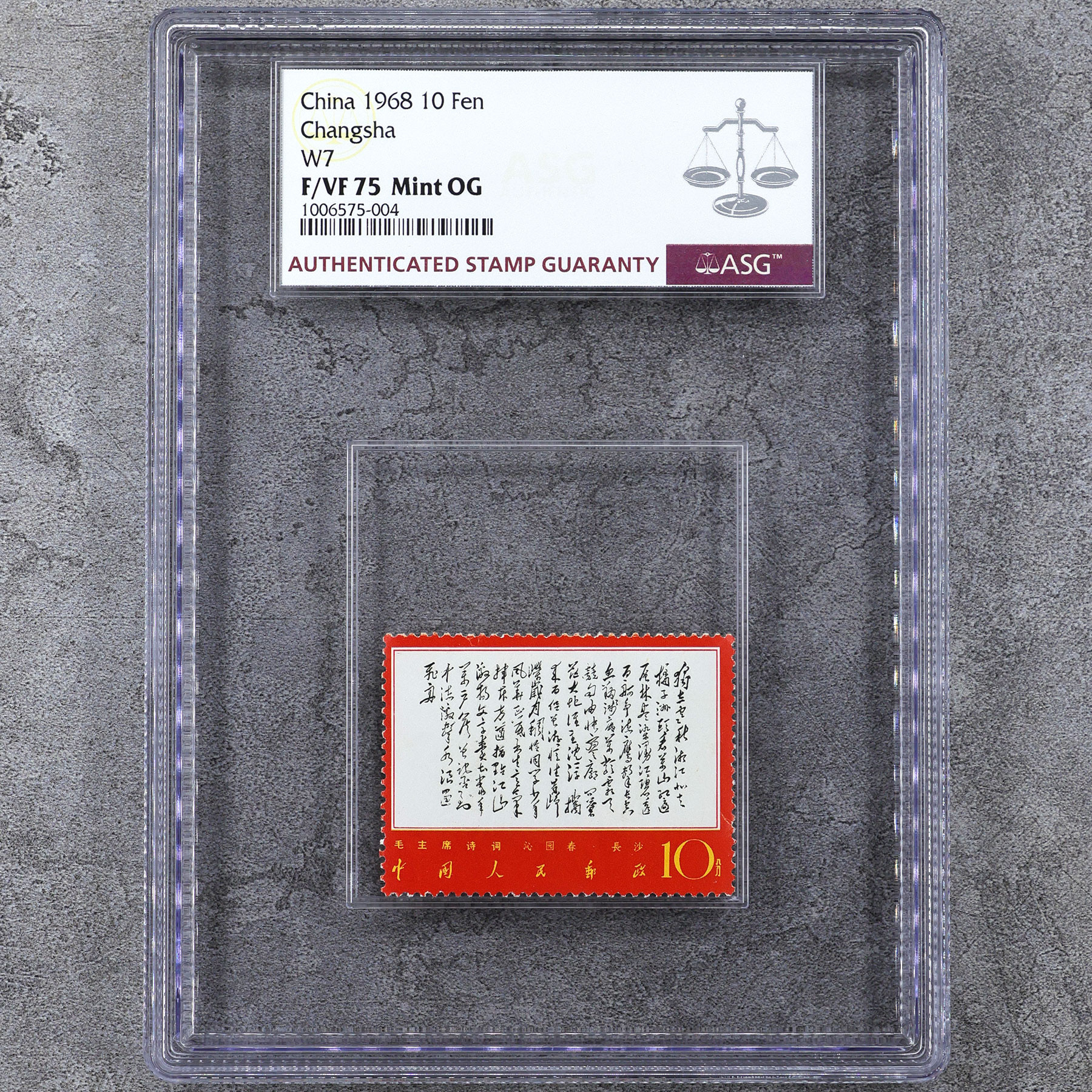 Независимая марка Вэнь 7 1968 года. Марка с рейтингом ASG. Реальное фото. 75 очков OG.