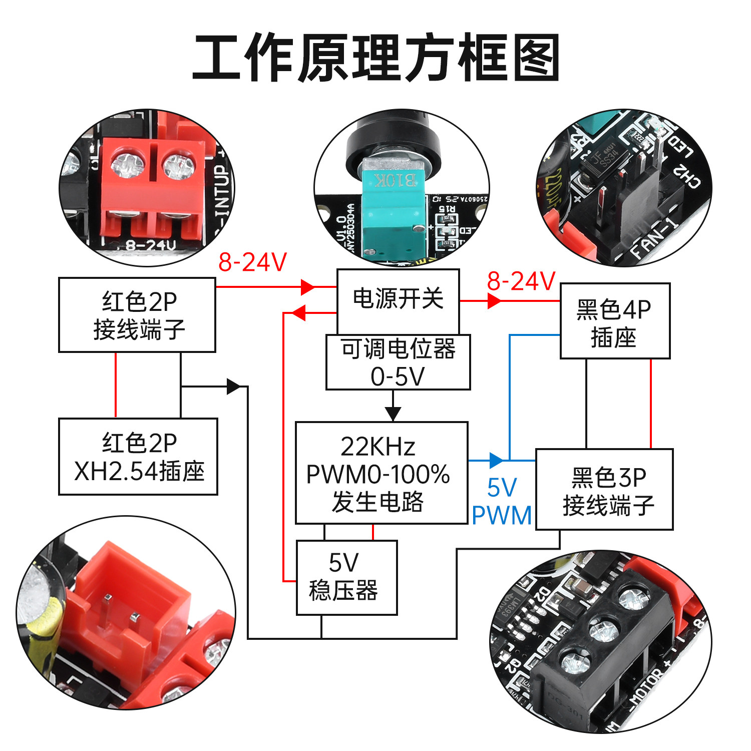 8-24 В постоянного тока, 5 А, 4-проводной контроллер скорости вентилятора, бесщеточный двигатель постоянного тока, ШИМ-контроллер скорости с переключателем