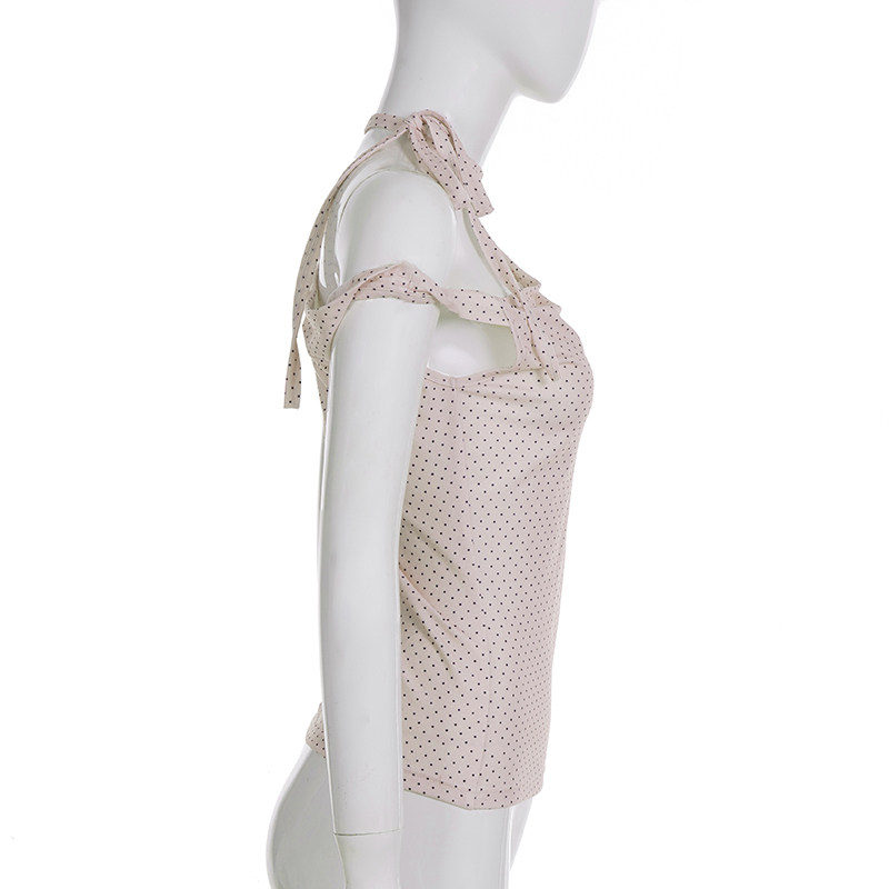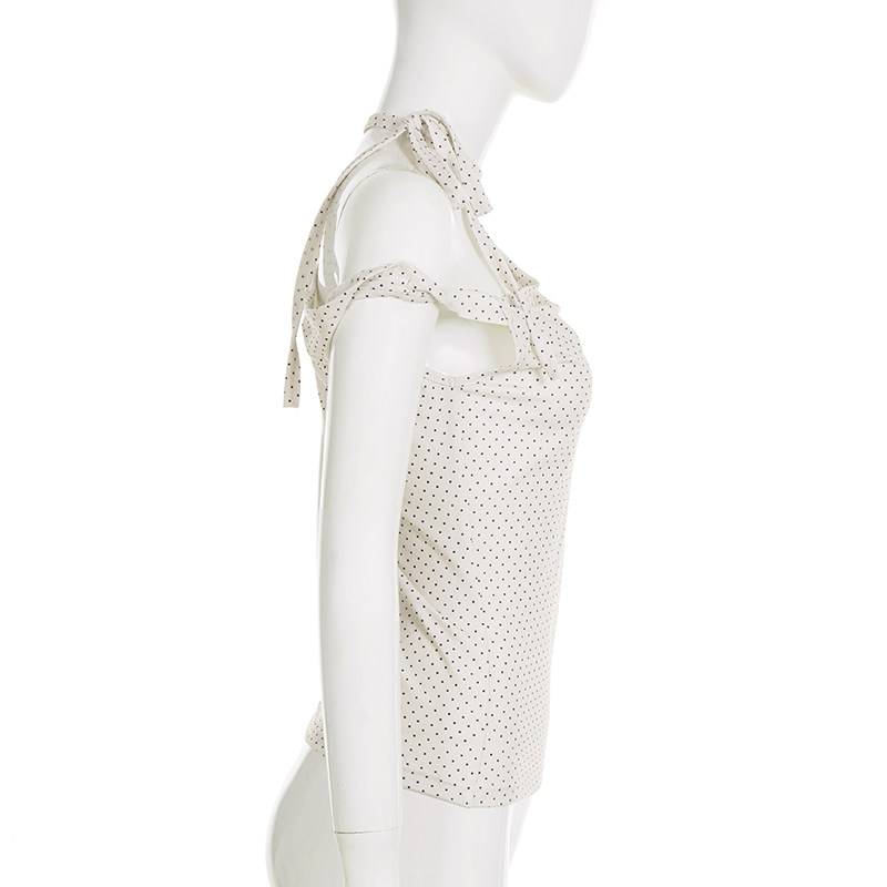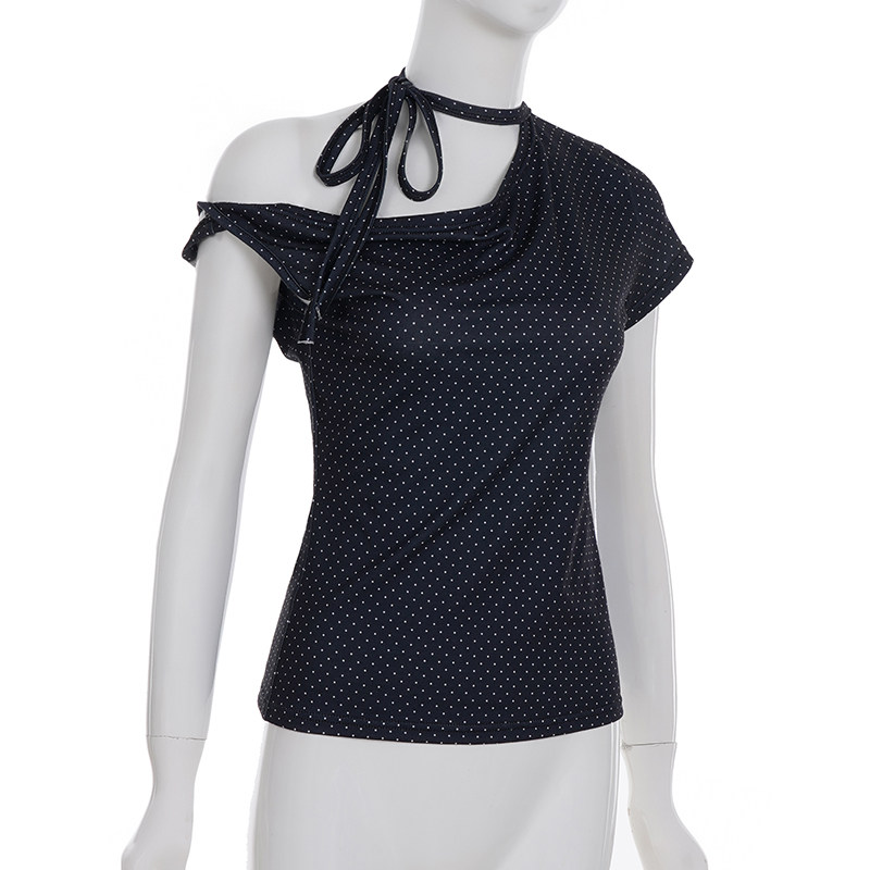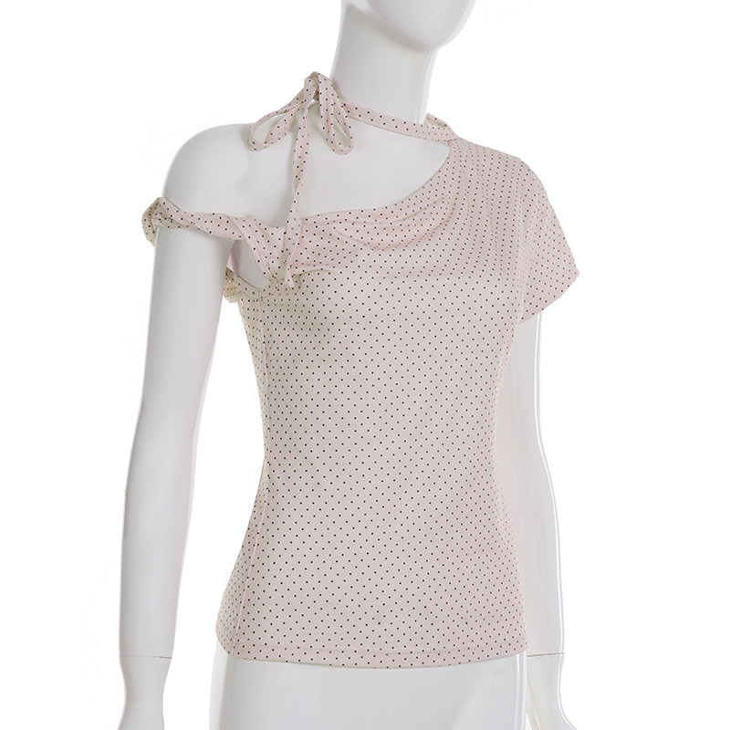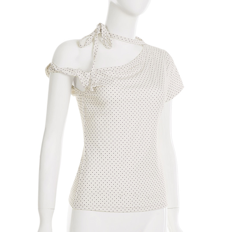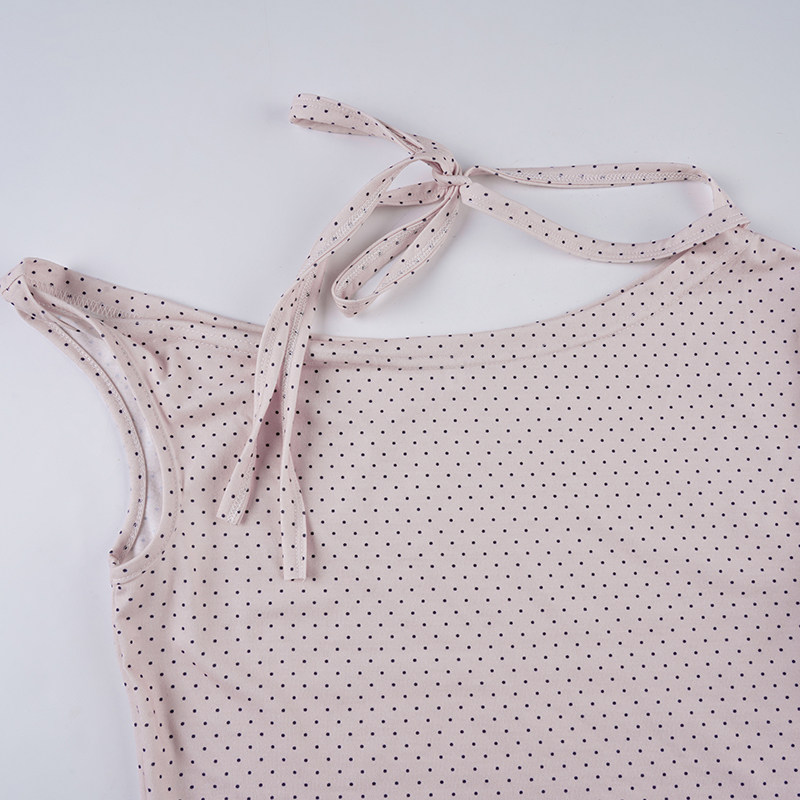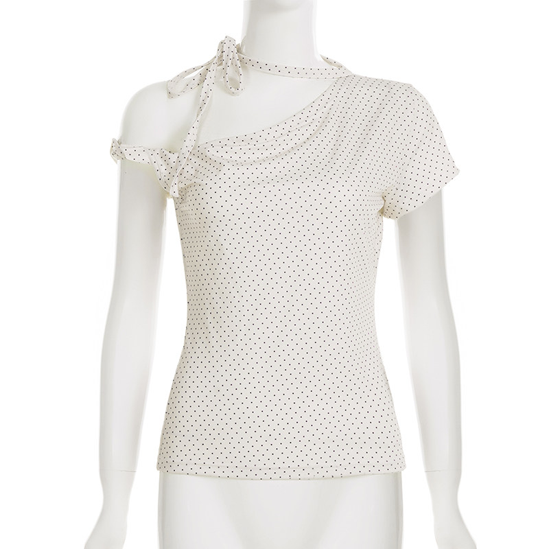 Милая девчачья футболка Weekeep контрастного цвета в горошек, асимметричная футболка с открытыми плечами и бретелями, многофункциональный повседневный тонкий топ