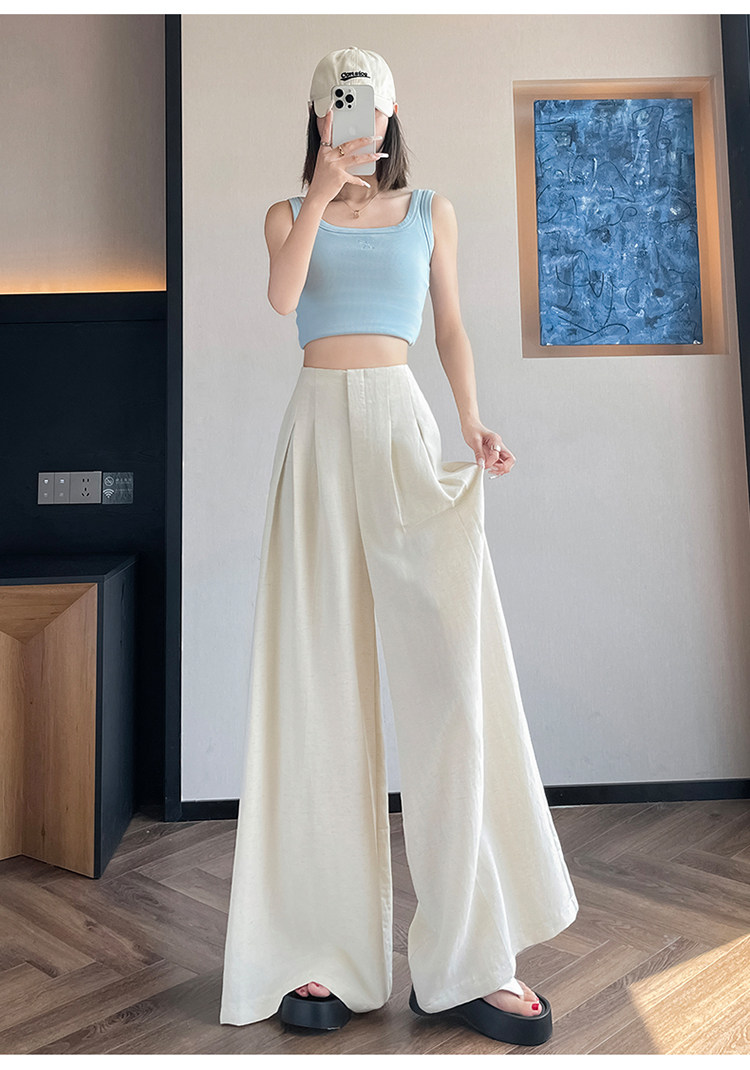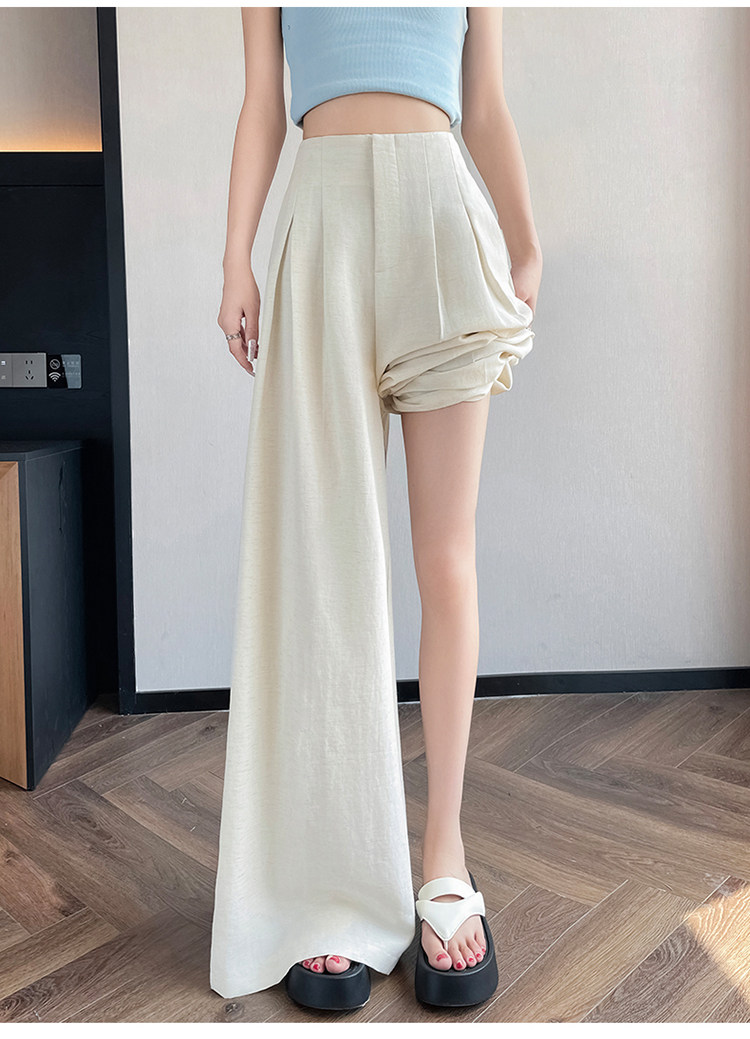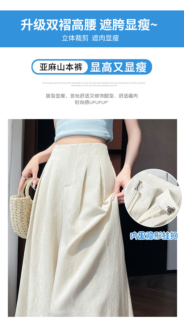 Юбка, тонкие шелковые штаны, костюм, из хлопка и льна, свободный крой