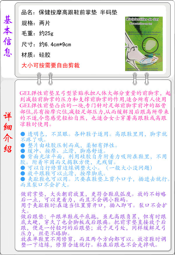 Впереди ладонь передняя половина -код полу -кодированные силиконовые прозрачные стельки с сцеплением и против боли против футов