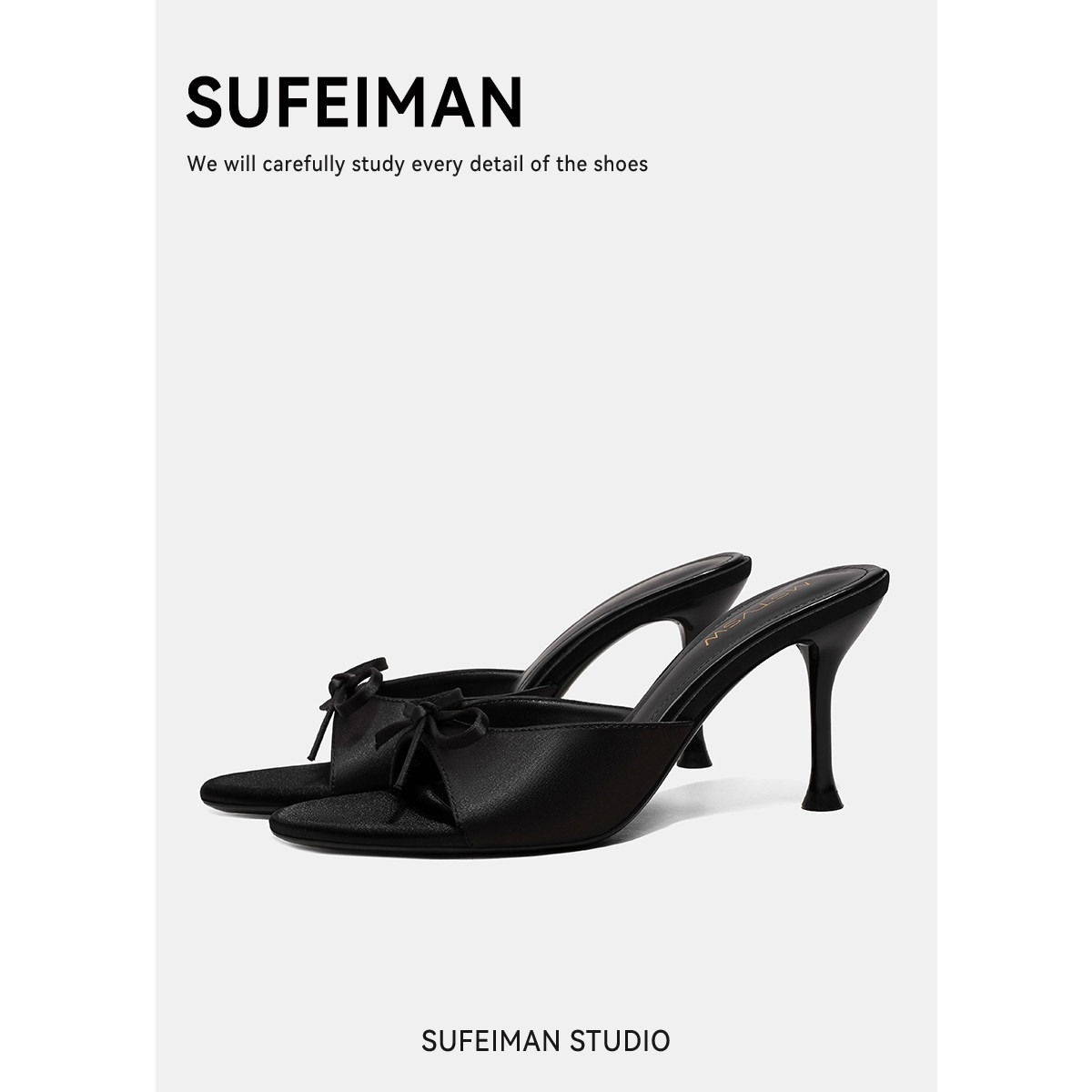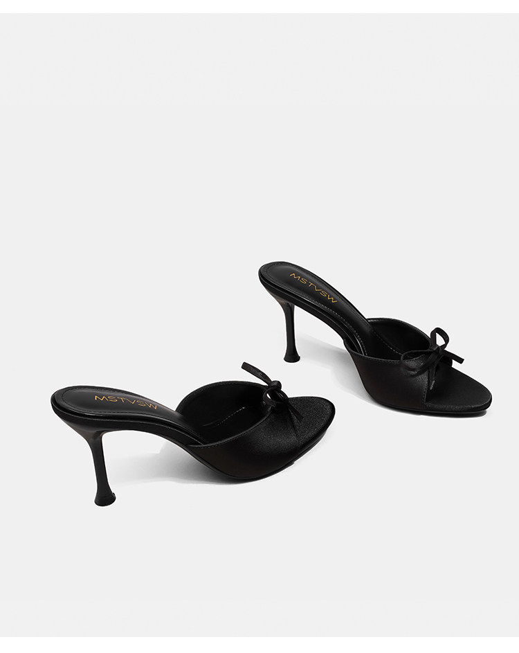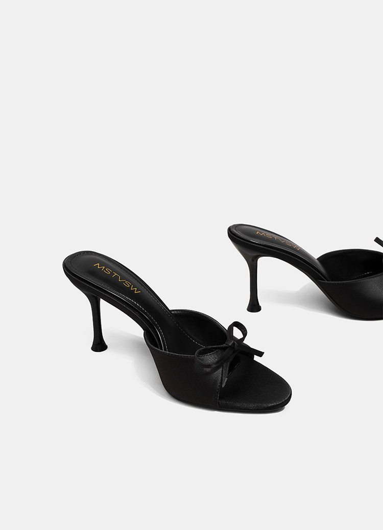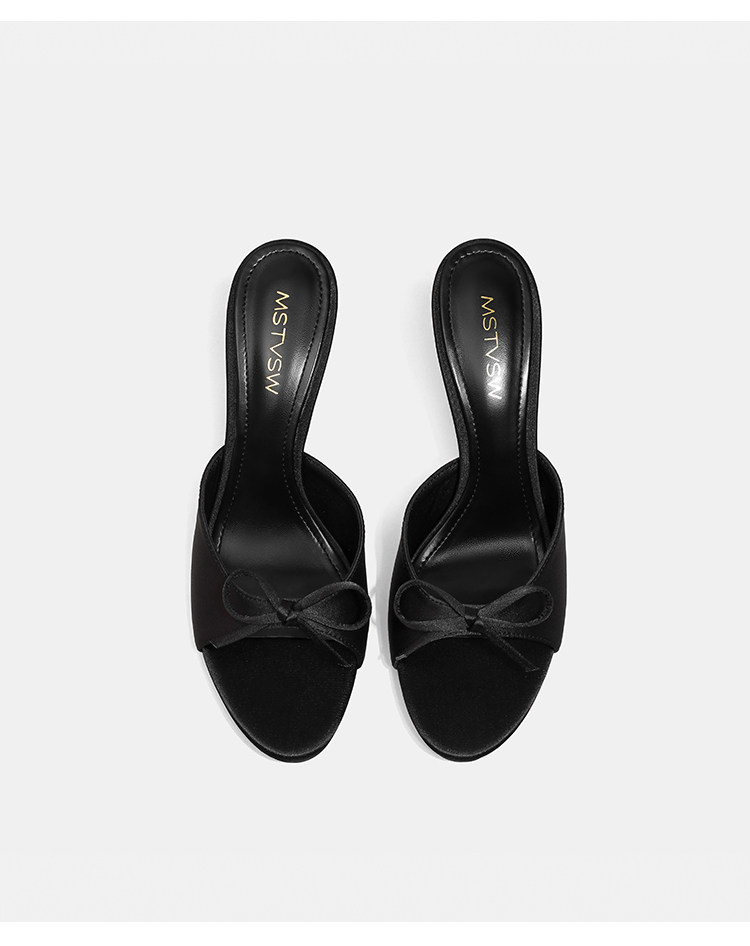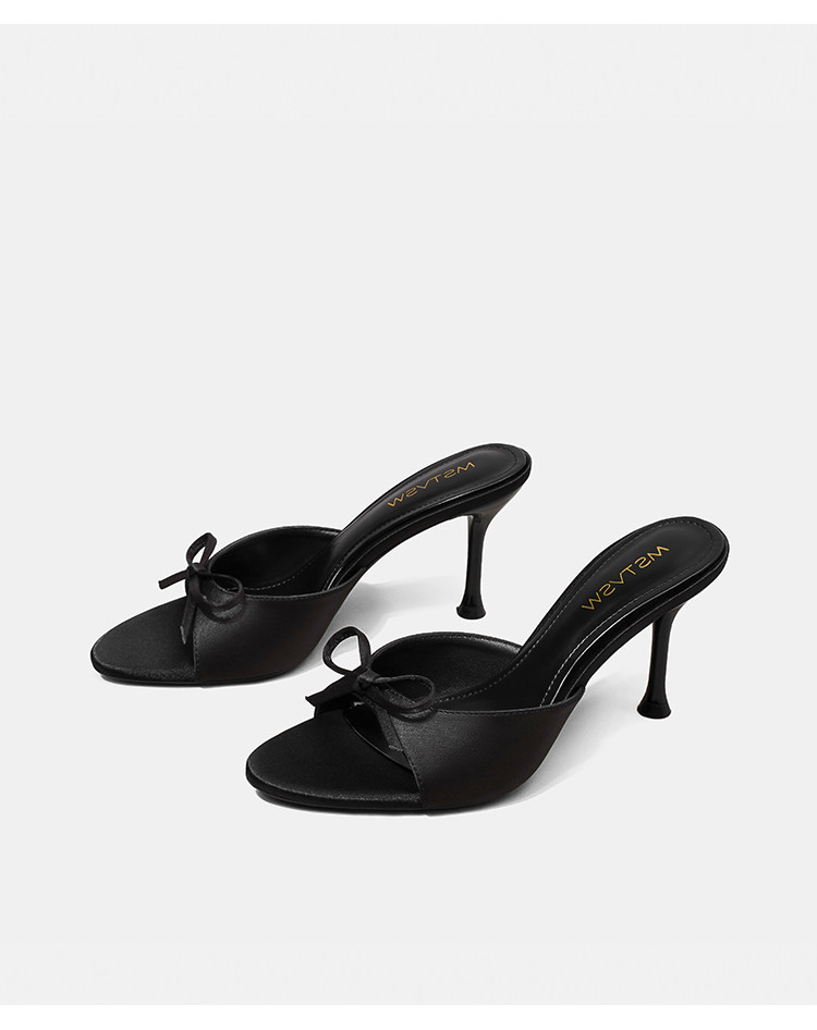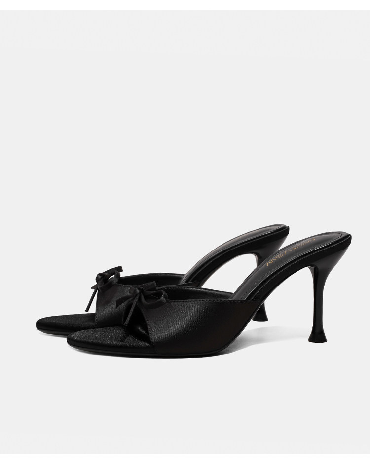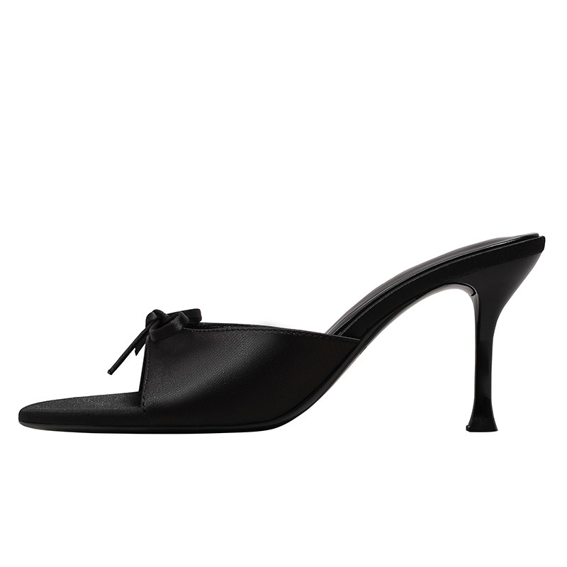 苏菲曼 Черные летние слайдеры на высоком каблуке с бантиком, тапочки, обувь