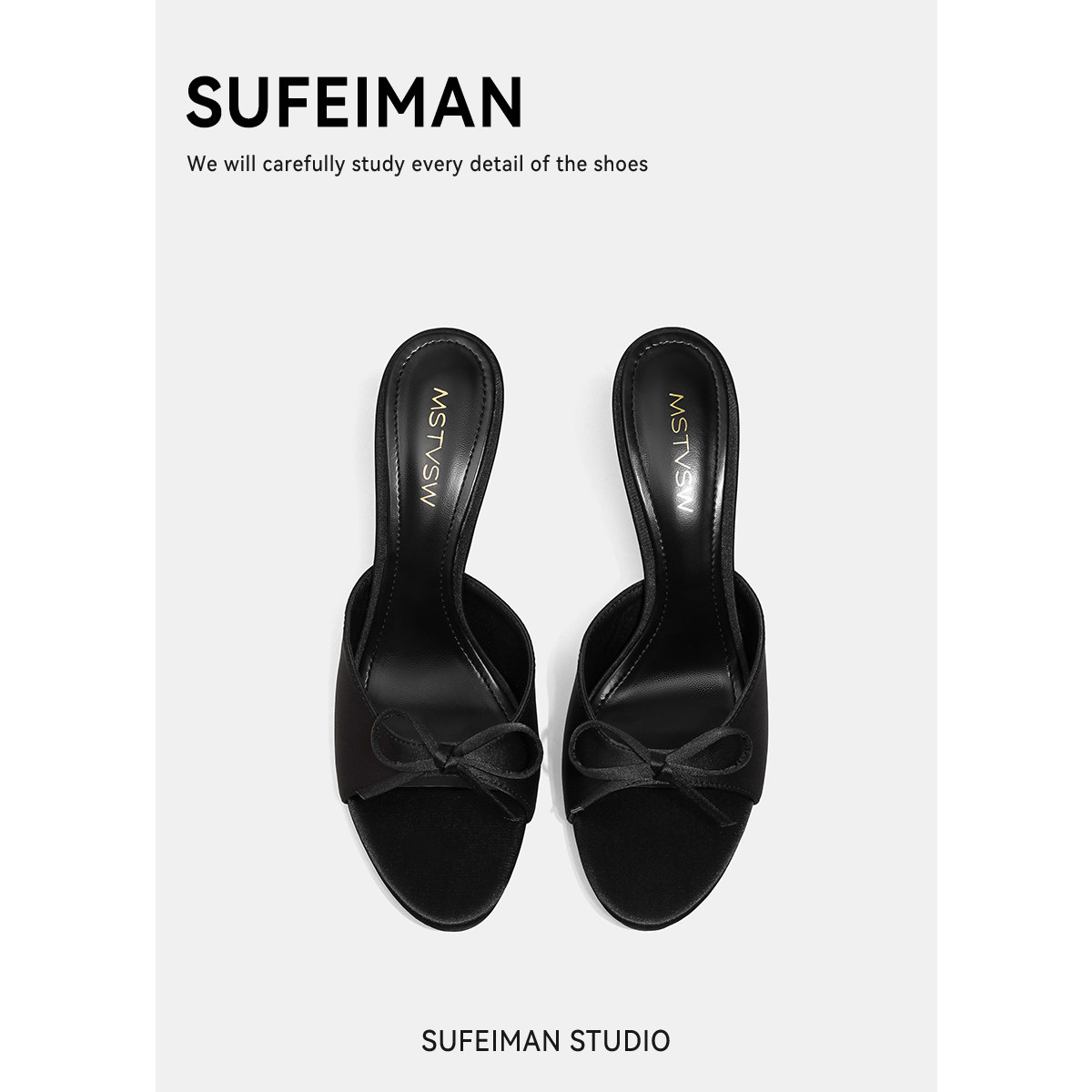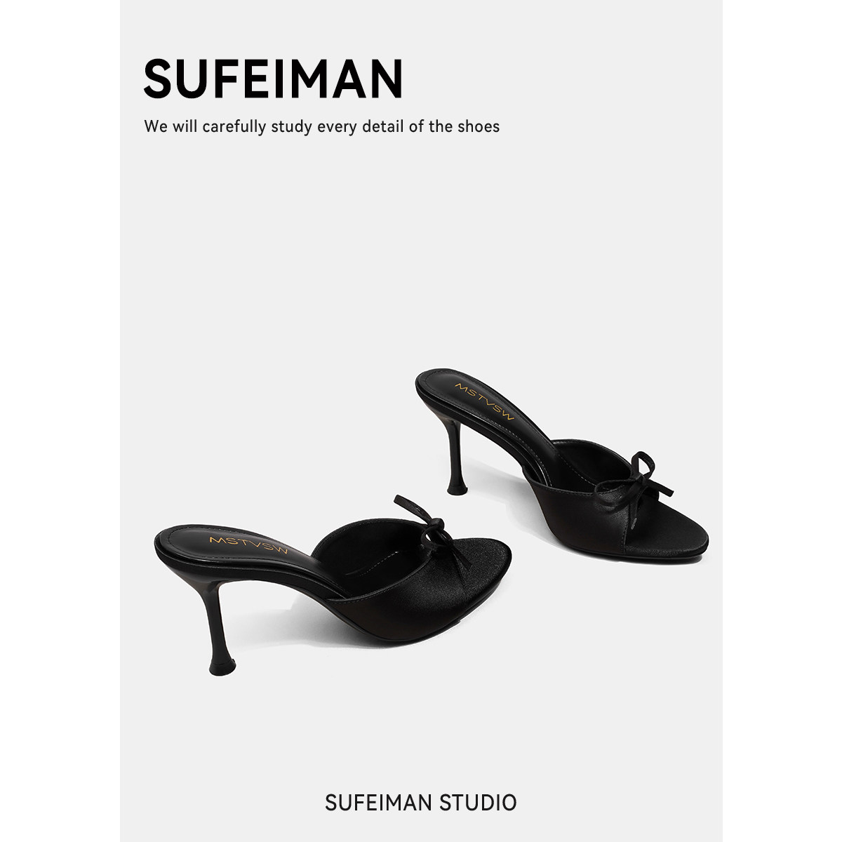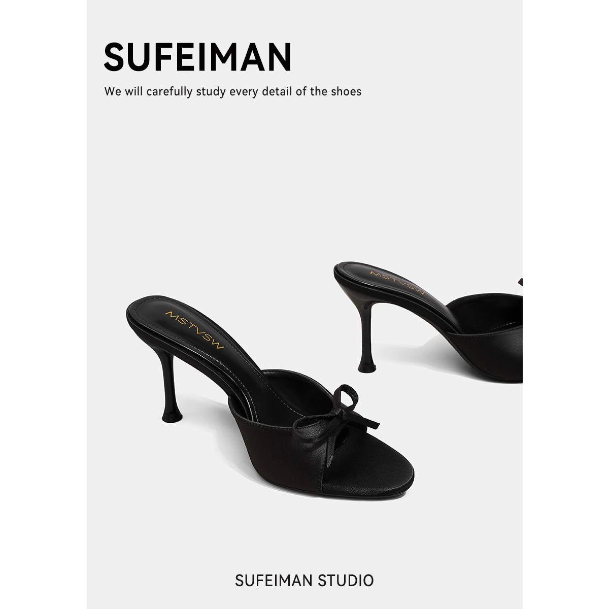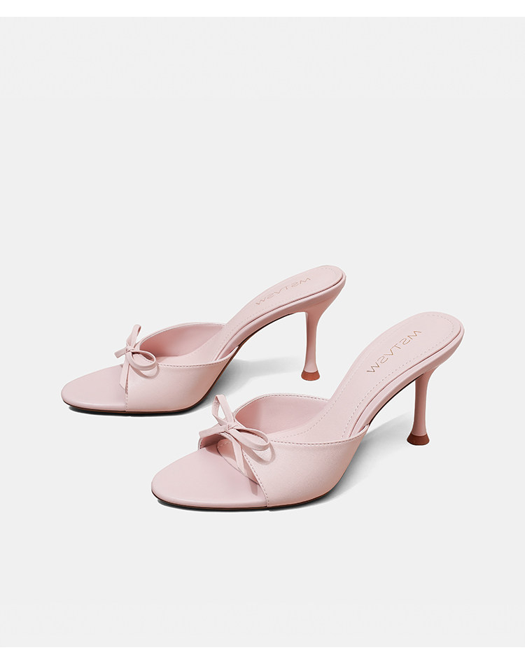苏菲曼 Черные летние слайдеры на высоком каблуке с бантиком, тапочки, обувь