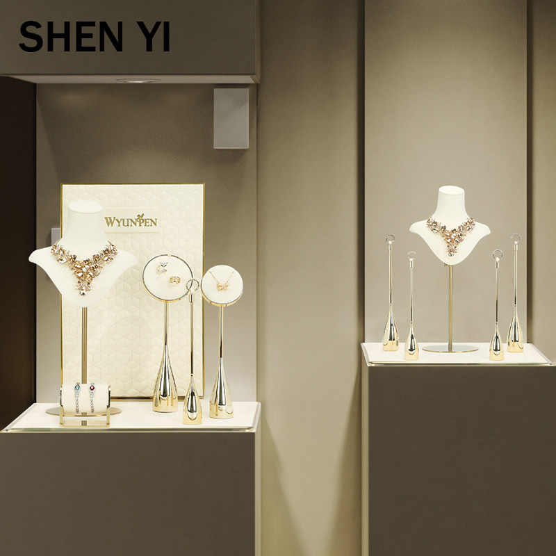 Ювелирное украшение, высококлассный стенд, бриллиантовое ожерелье, манекен головы, серьги, кольцо