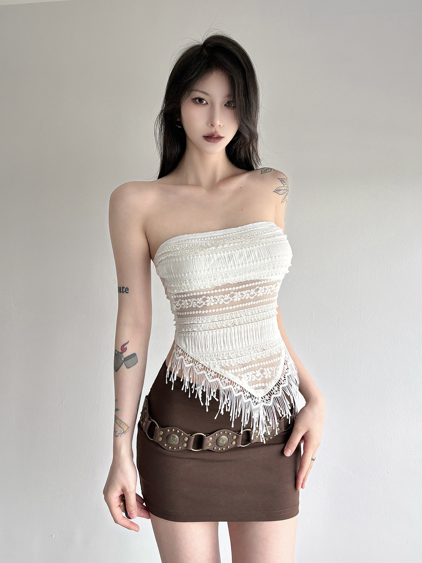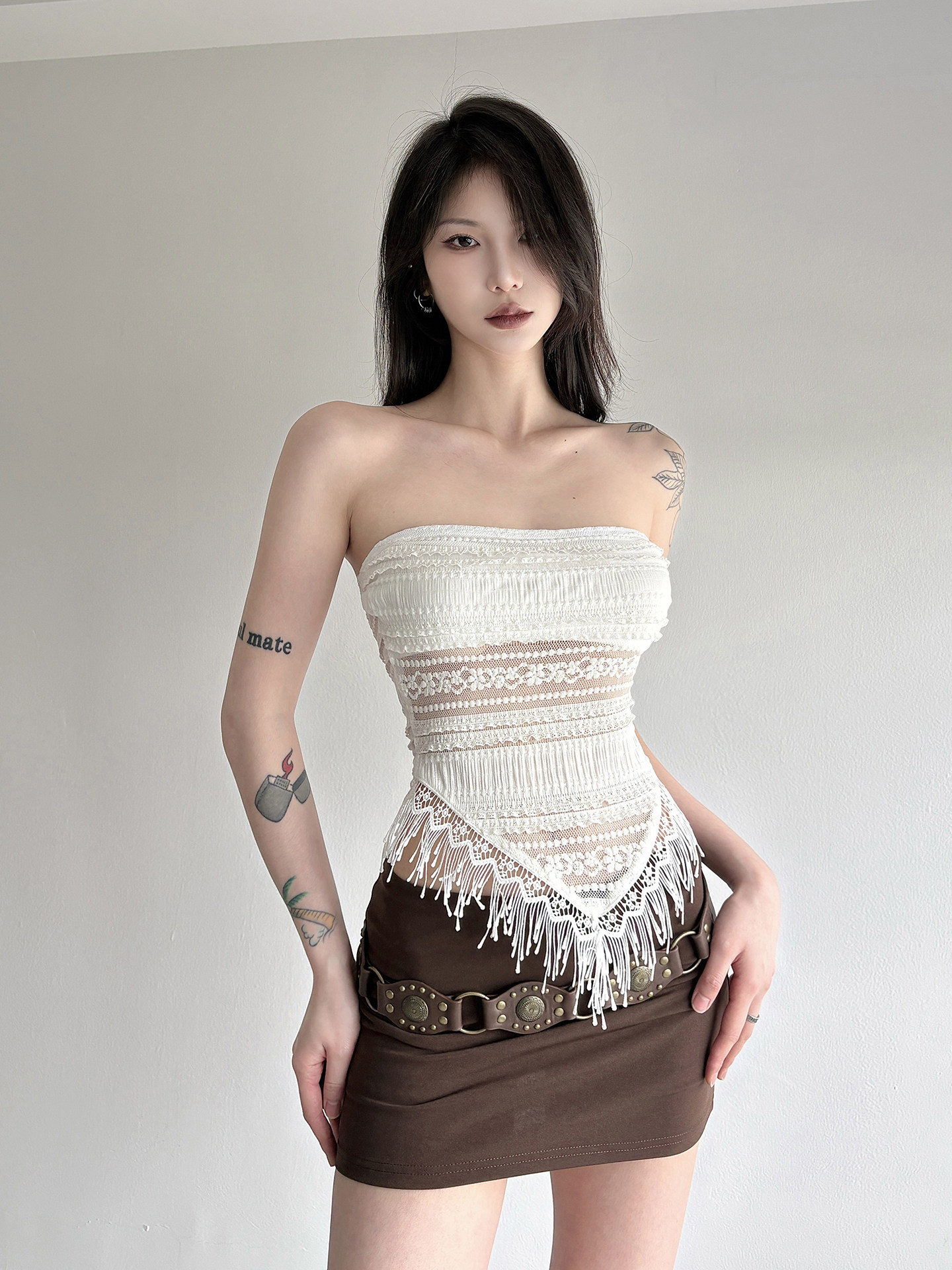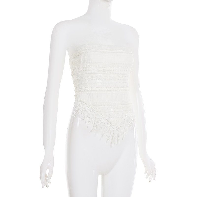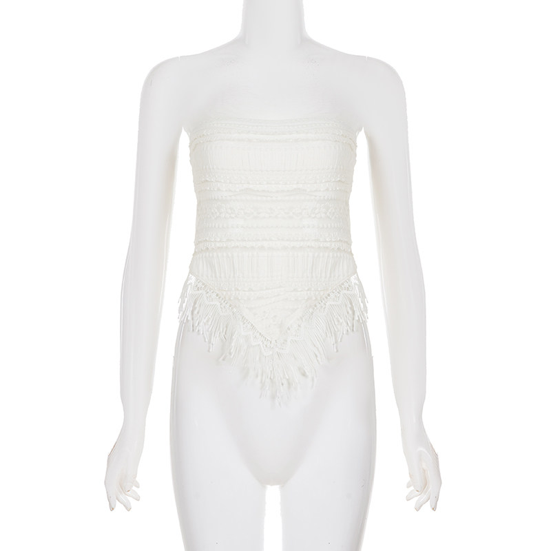 WEEKEEP Кружевной топ без лямок, стиль бохо, цветочный принт, в обтяжку, с открытой спиной