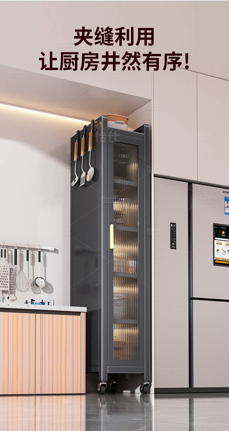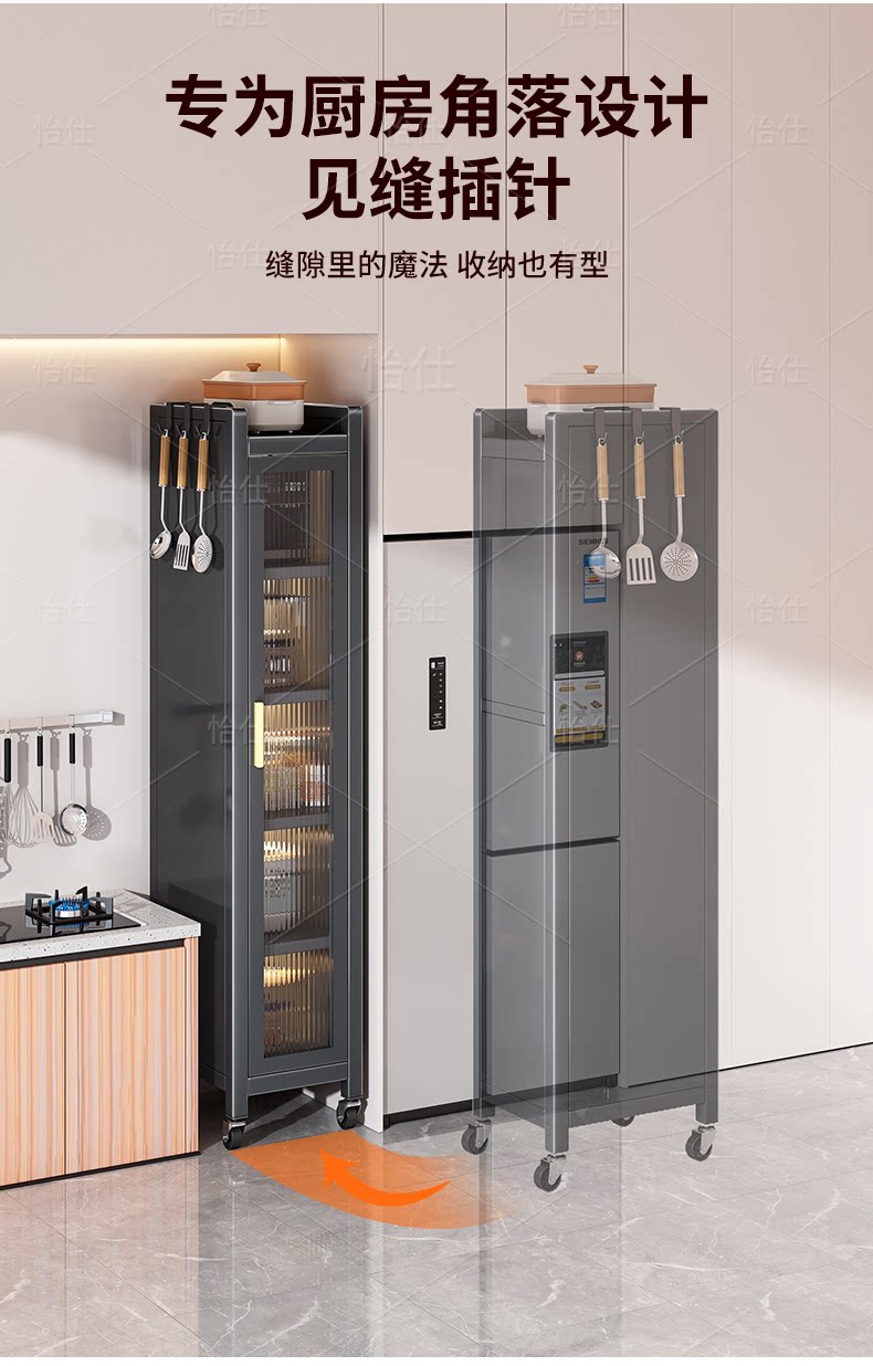 Кухонная полка напольная с узкой щелью, многослойный шкаф для хранения приправ, сервант, шкаф для хранения микроволновой печи, шкаф для хранения