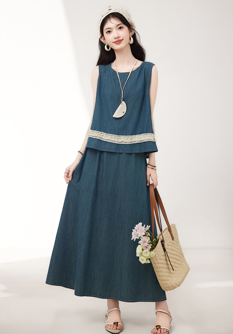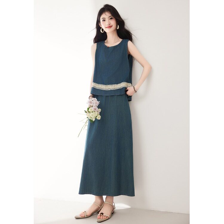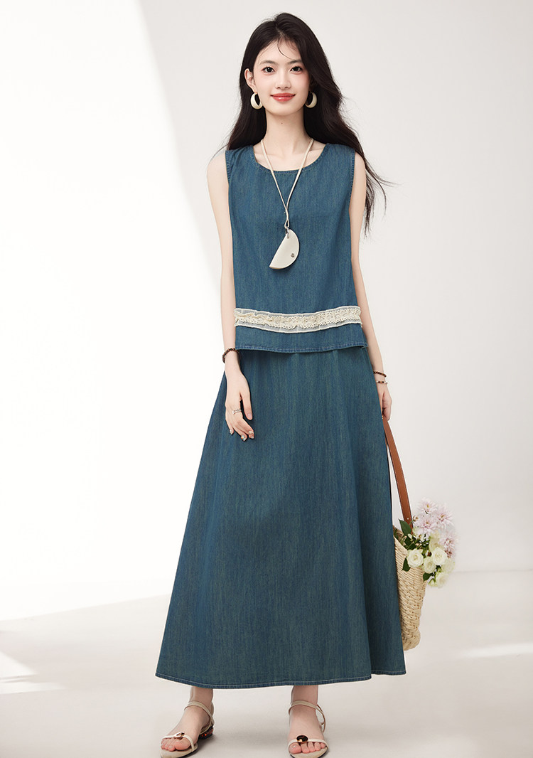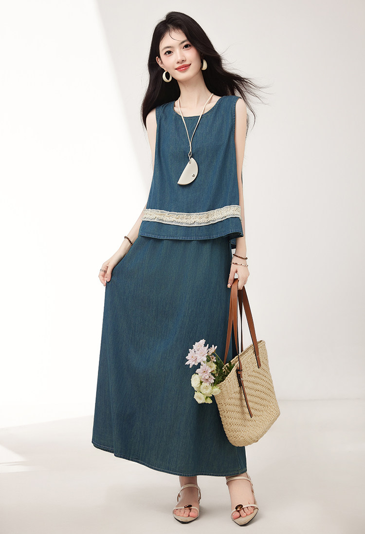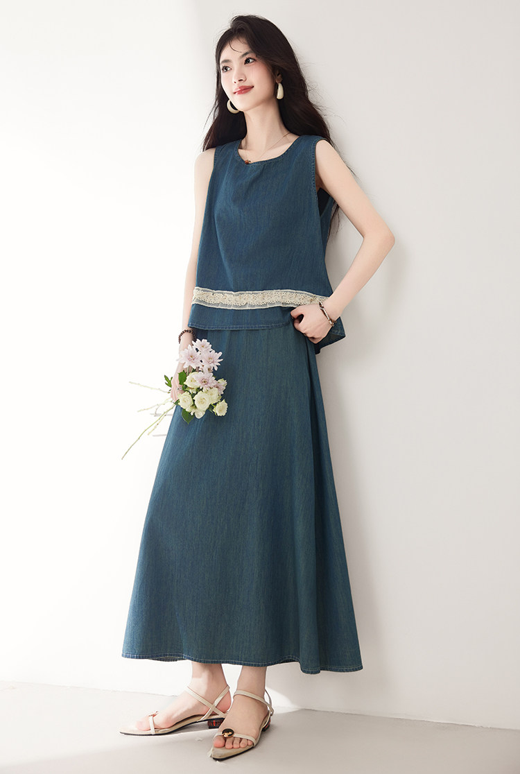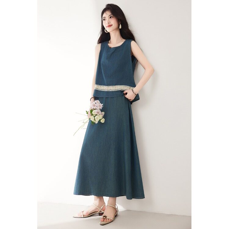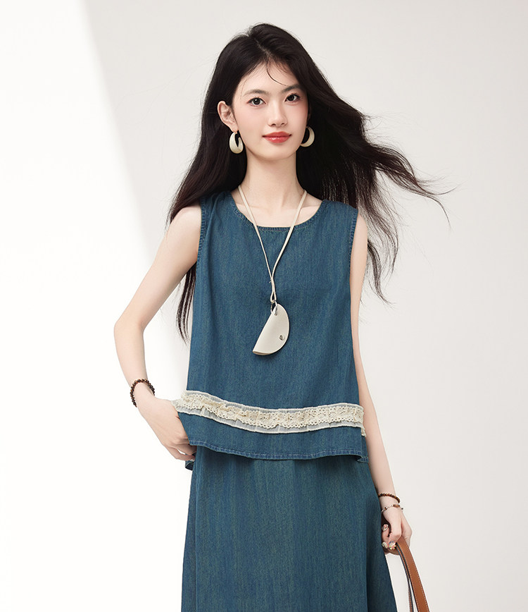 Брендовый дизайнерский джинсовый жилет, юбка, летний комплект, тренд сезона, эластичная талия