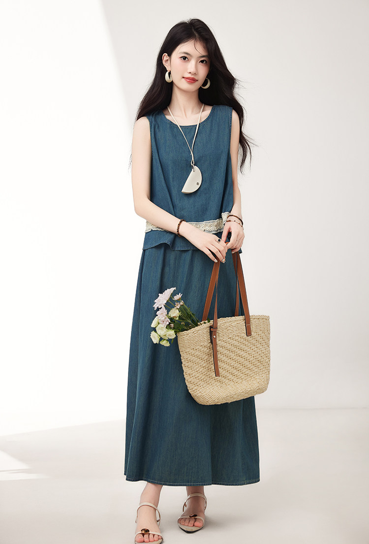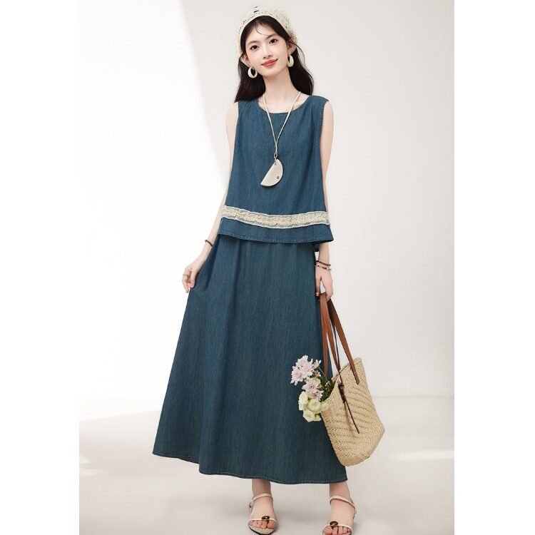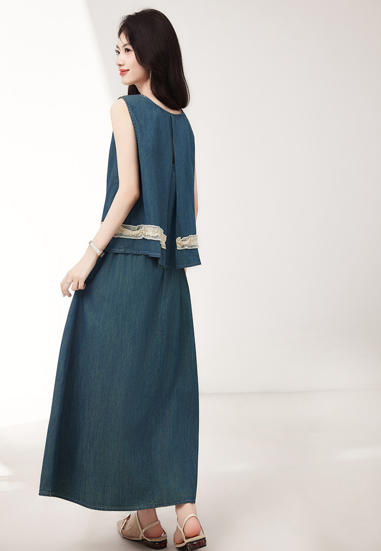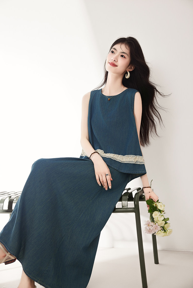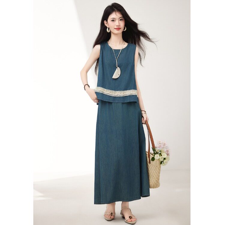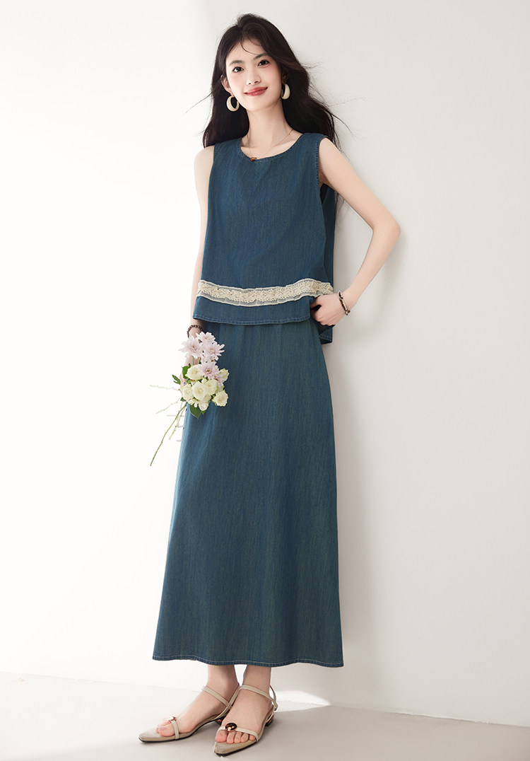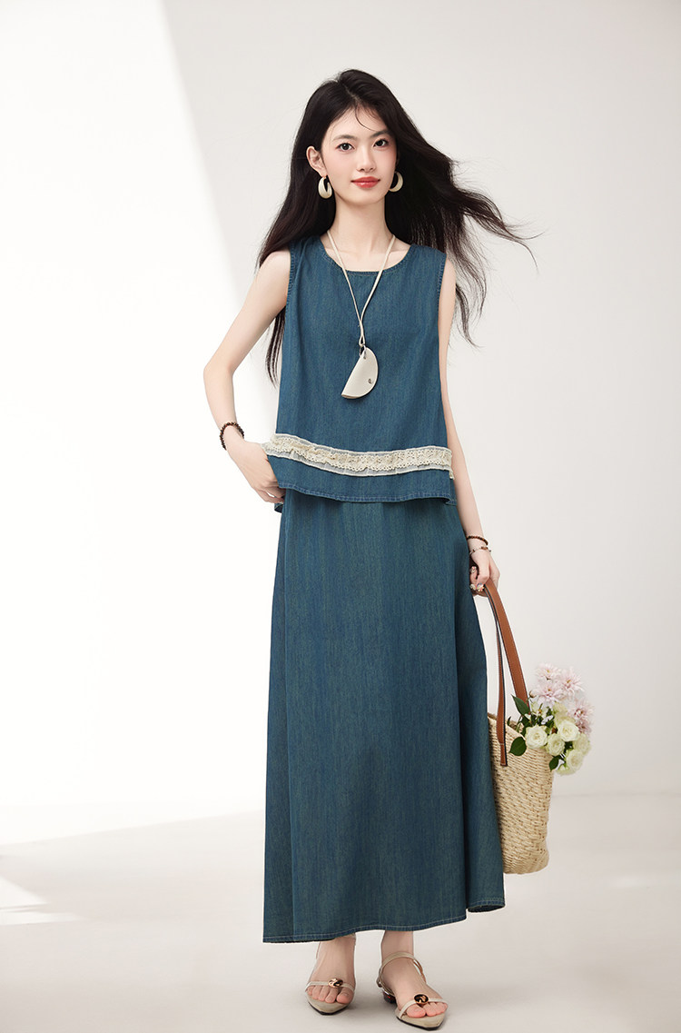Брендовый дизайнерский джинсовый жилет, юбка, летний комплект, тренд сезона, эластичная талия