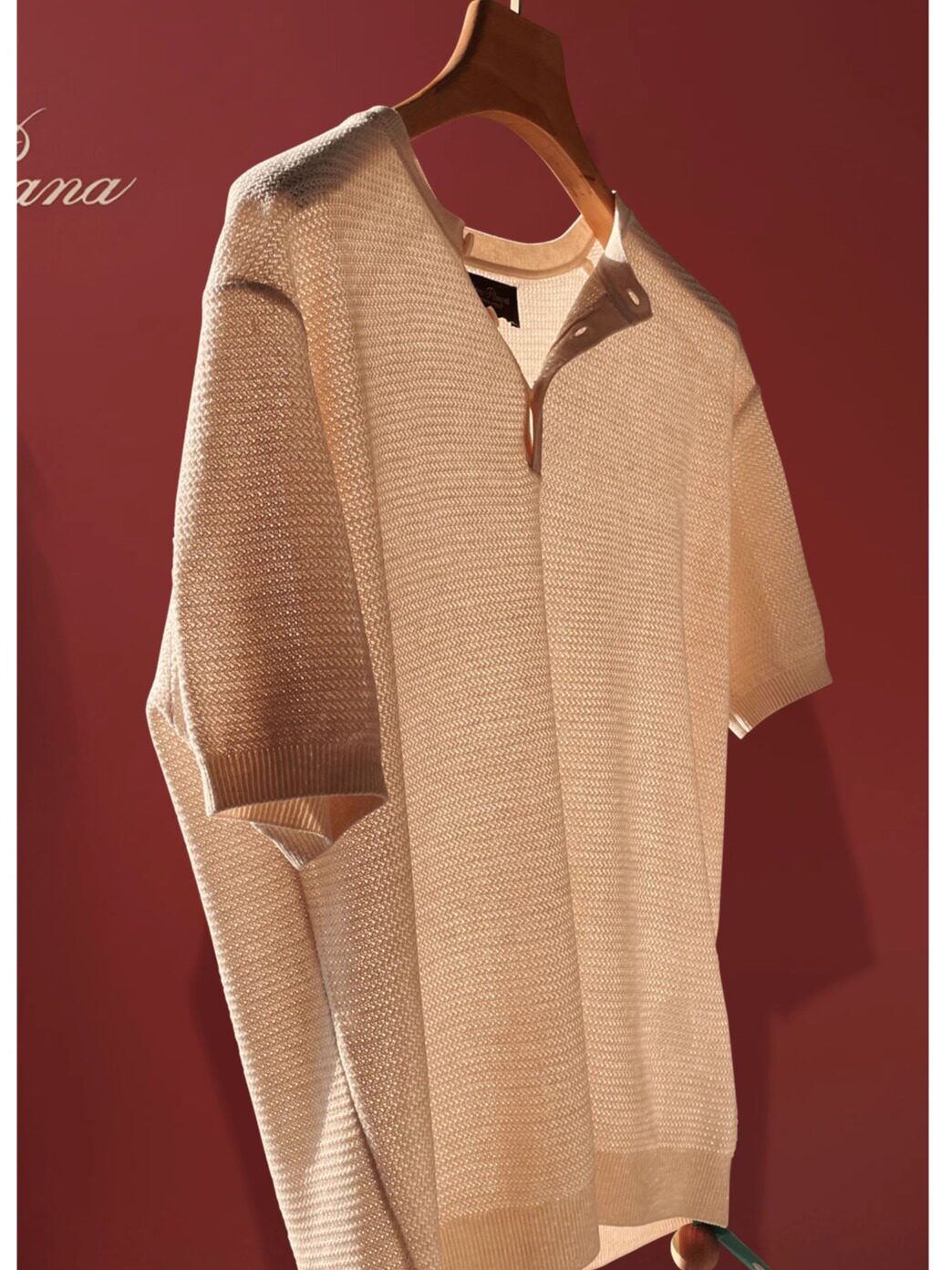 Красивый и стильный ~ элитный итальянский стиль старый стиль, летний кружев, вязаная футболка с короткими рукавами Генри Нек.