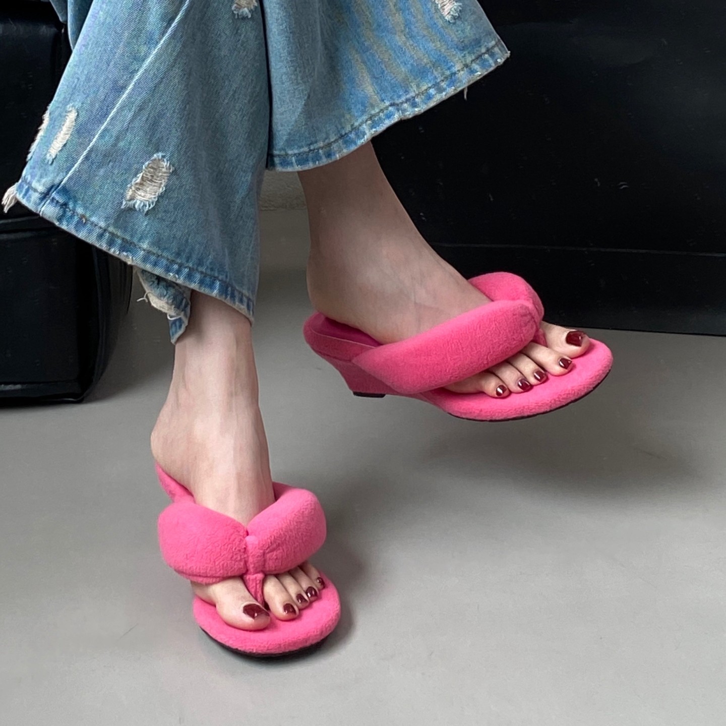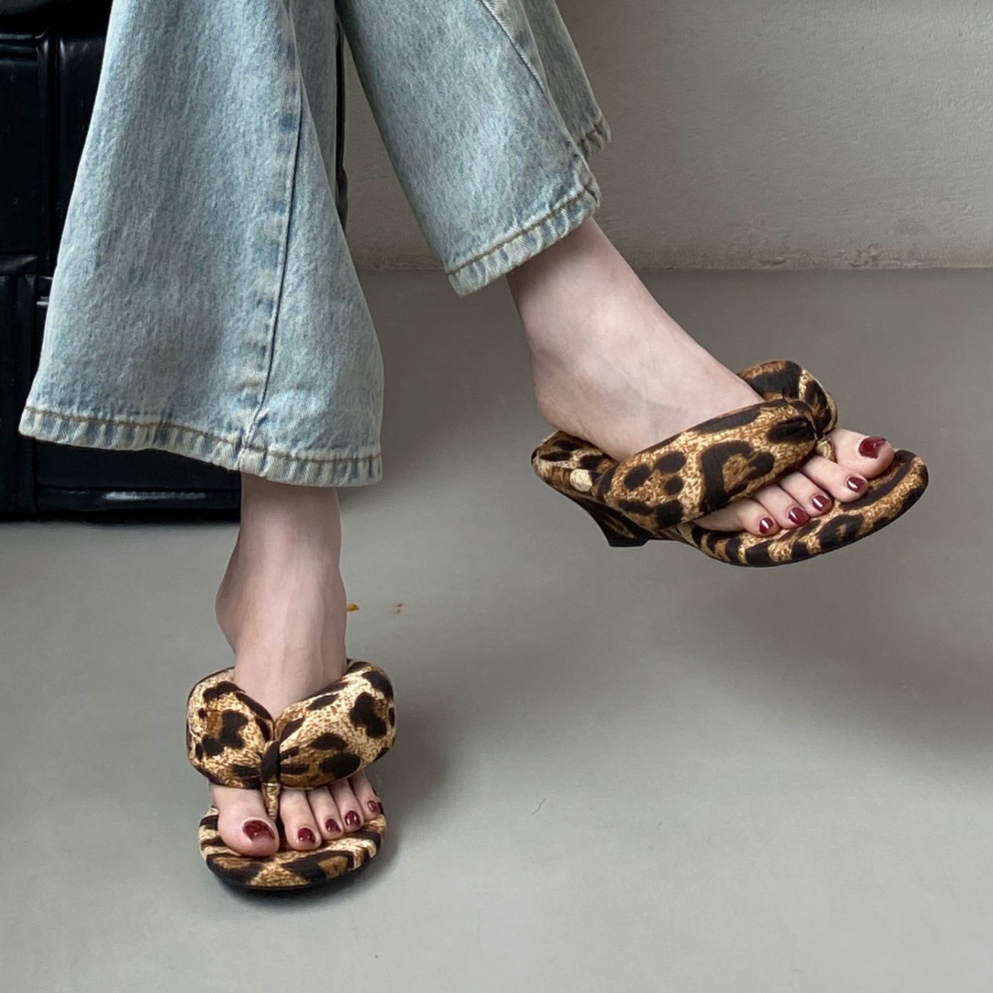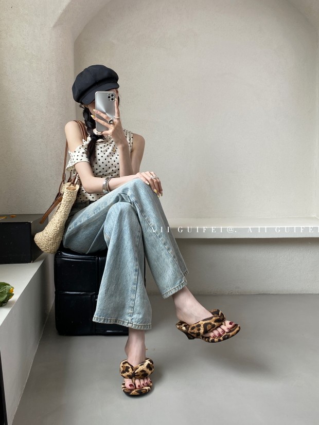 SYLSH Интернет-знаменитости, шлепанцы на танкетке с толстой подошвой и леопардовым принтом на толстой подошве высотой 7 см, с ощущением легкой походки, летние шлепанцы во французском стиле для верхней одежды
