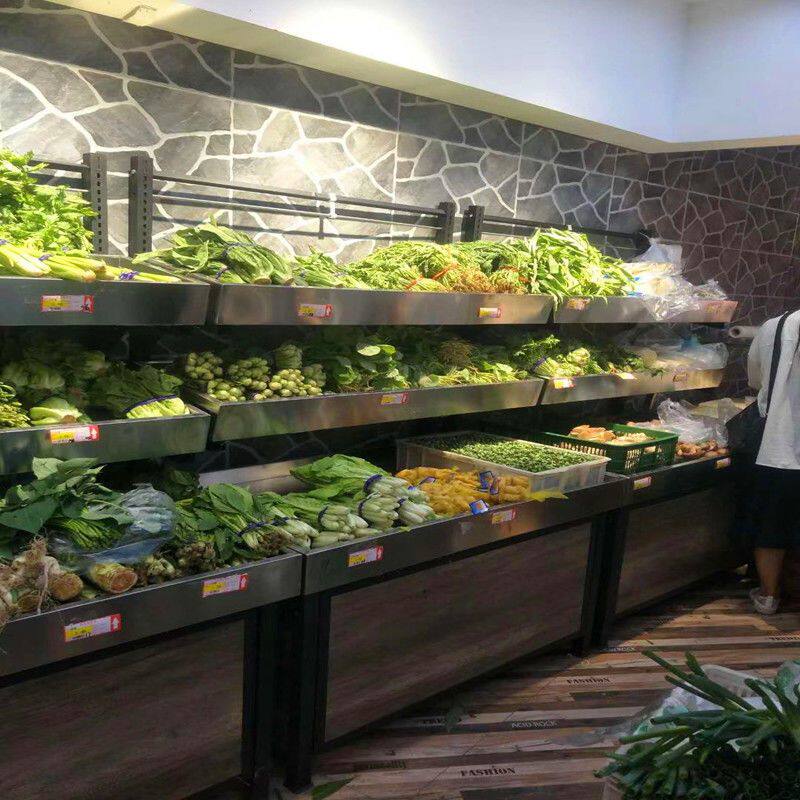 Полка из нержавеющей стали для овощей, витрина для супермаркета, витрина для фруктов и овощей, стойка для фруктов и овощей из нержавеющей стали, цельнометаллическая полка