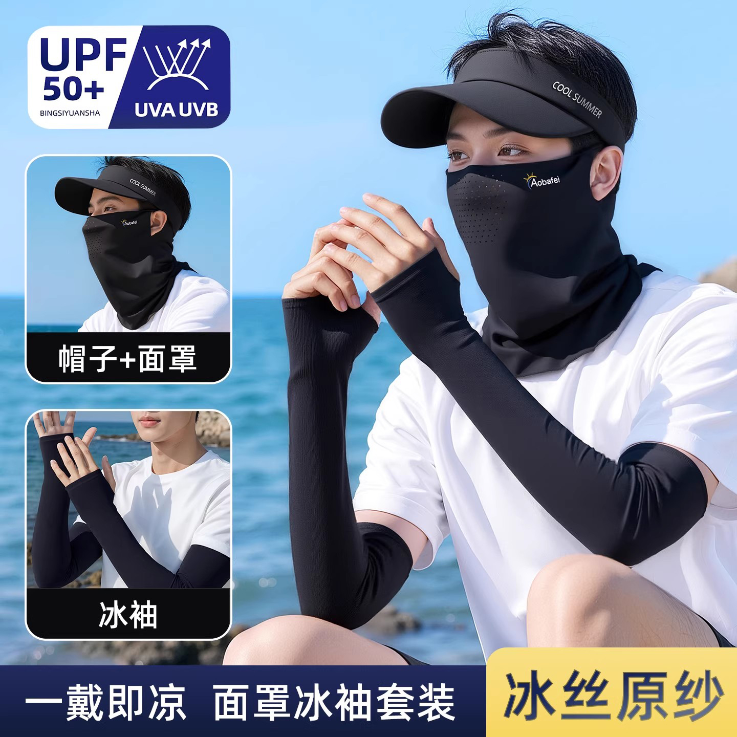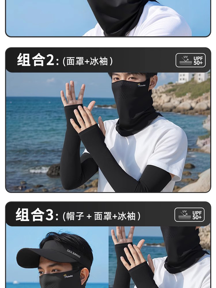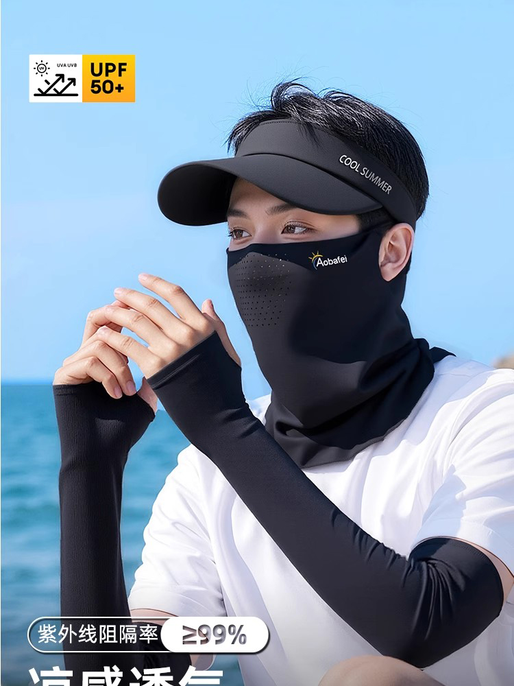 Шапка, медицинская маска для велоспорта, шелковые нарукавники, комплект, защита от солнца