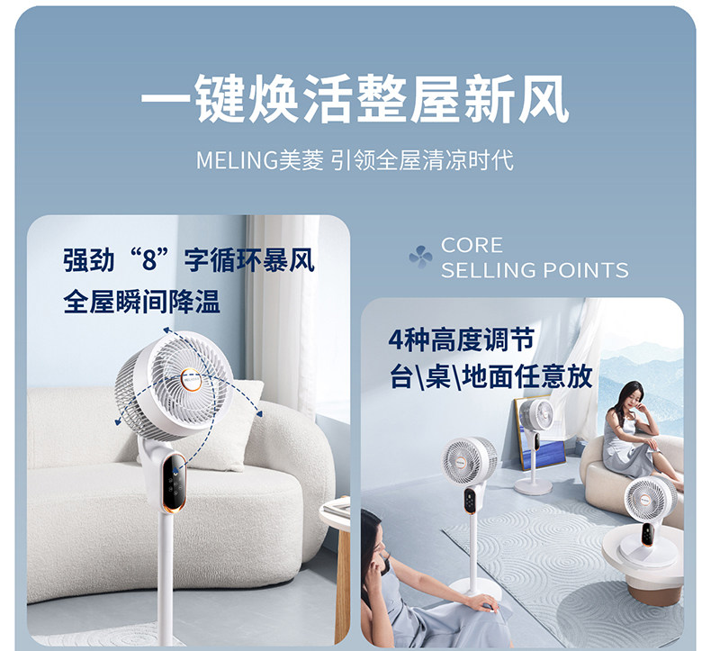 Meiling Smart Voice Fan Fan 2025 Новый домохозяйственный полет электрического вентилятора Большой ветровой планшет вентилятор Light Sound
