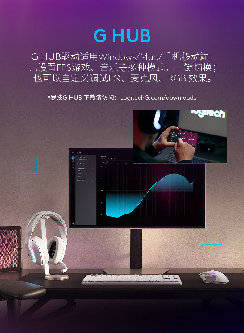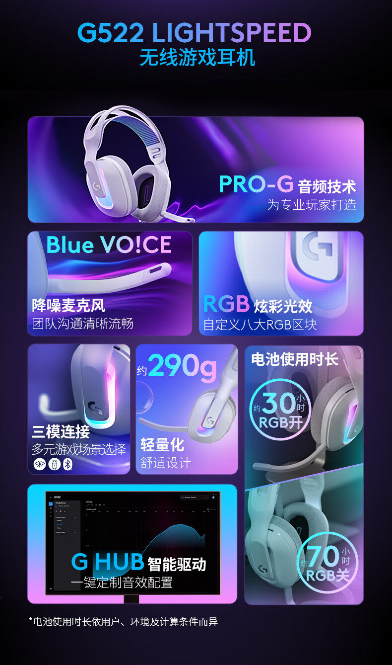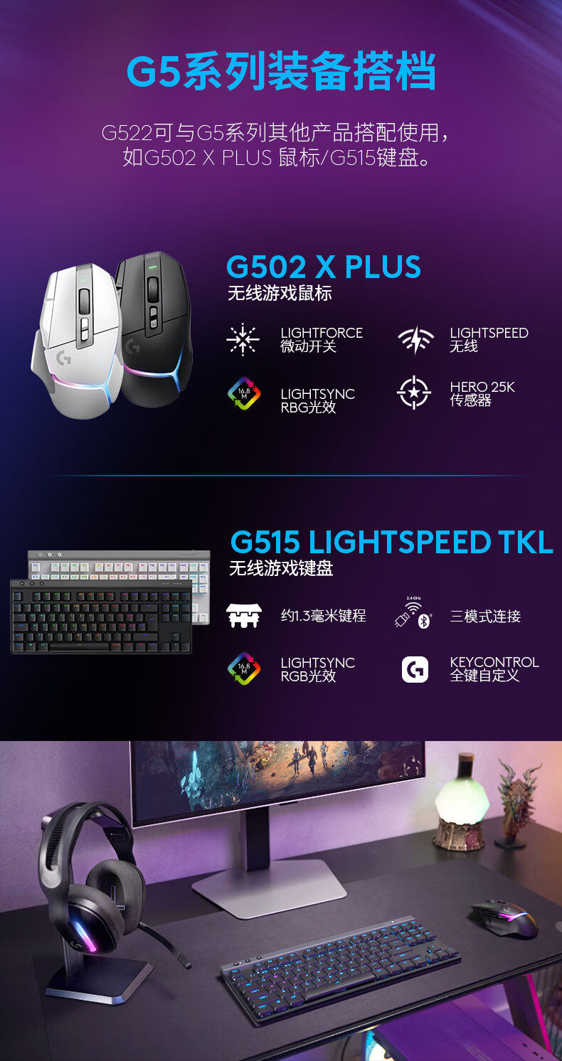Logitech, игровые легкие наушники, G522, bluetooth