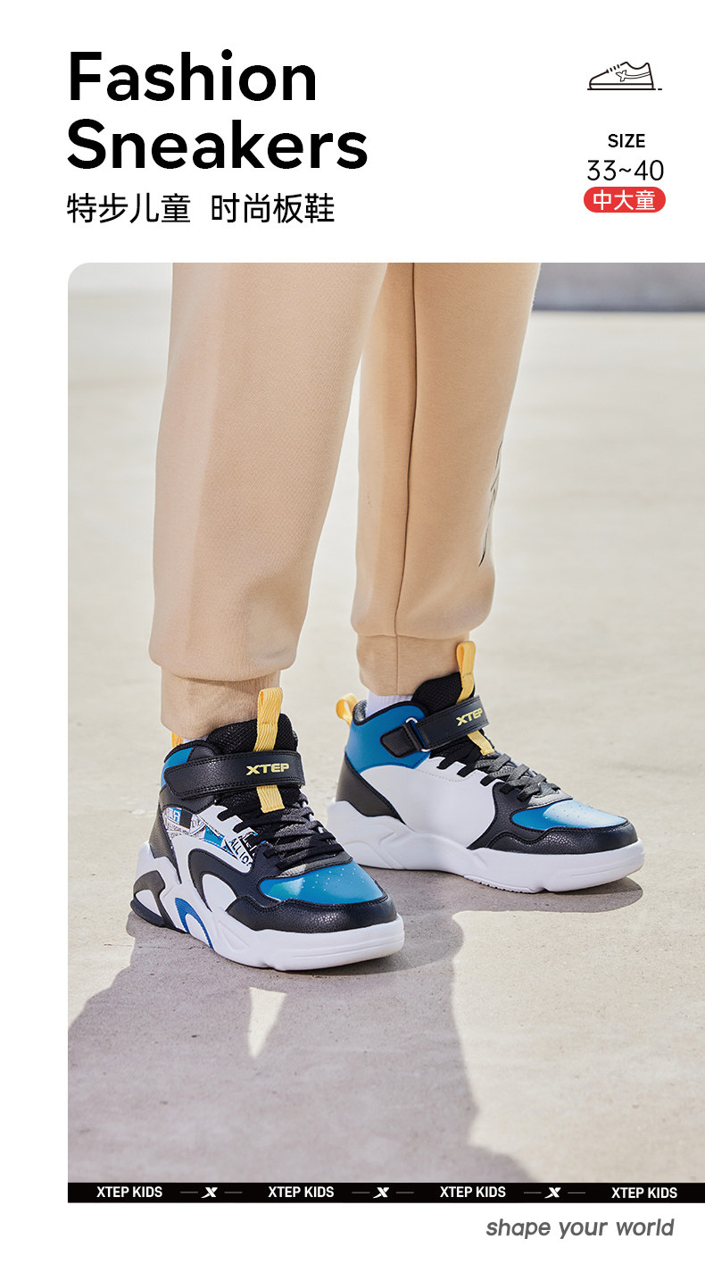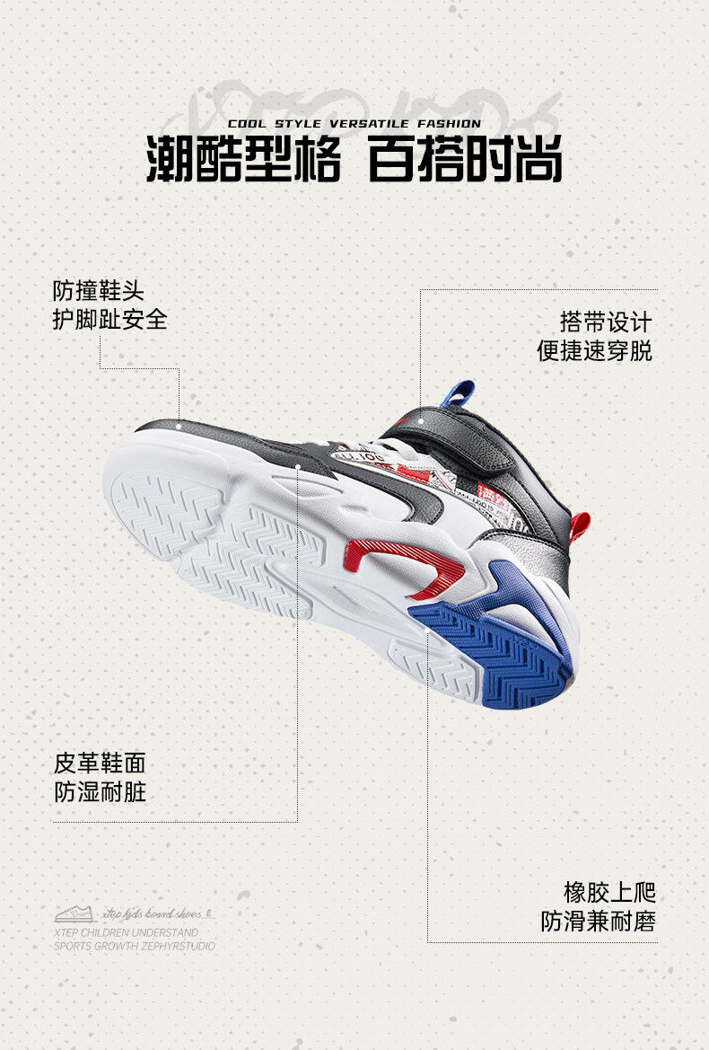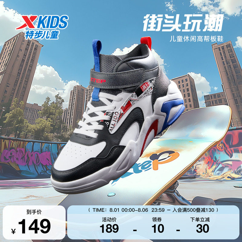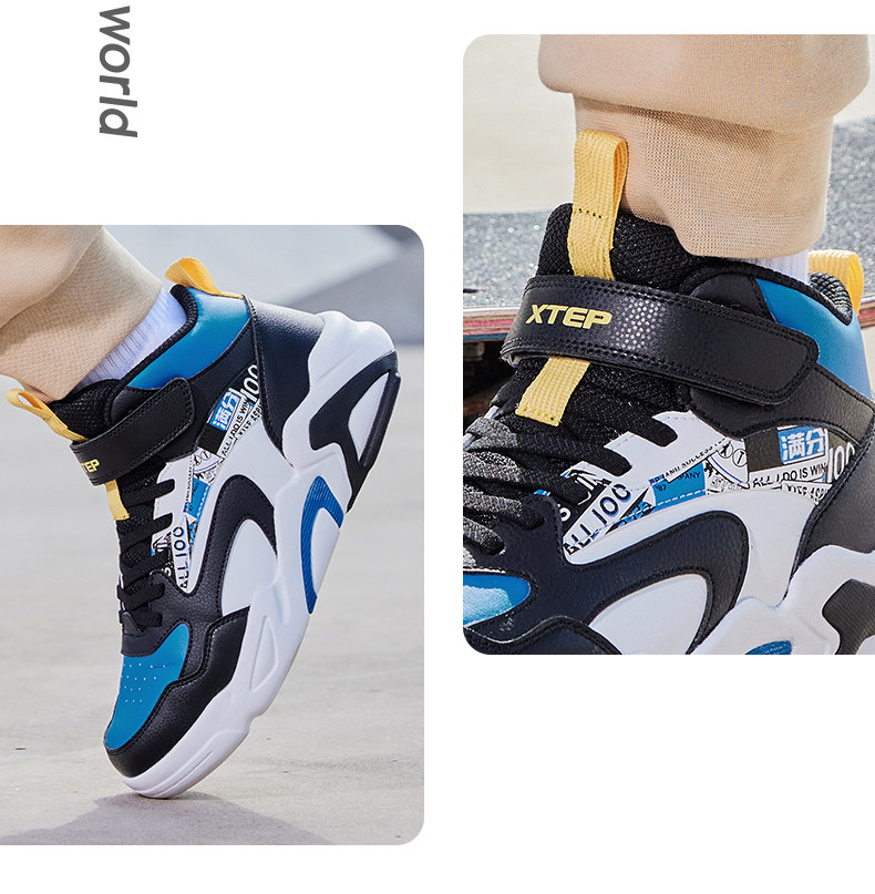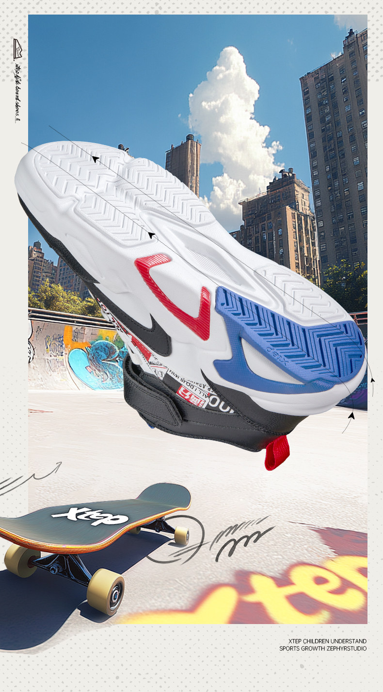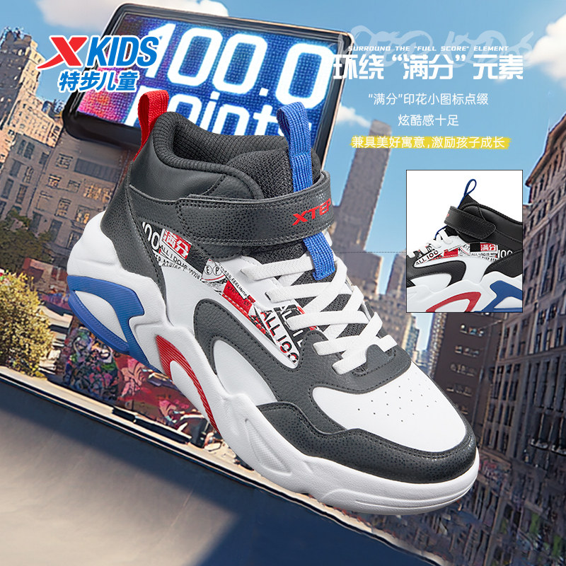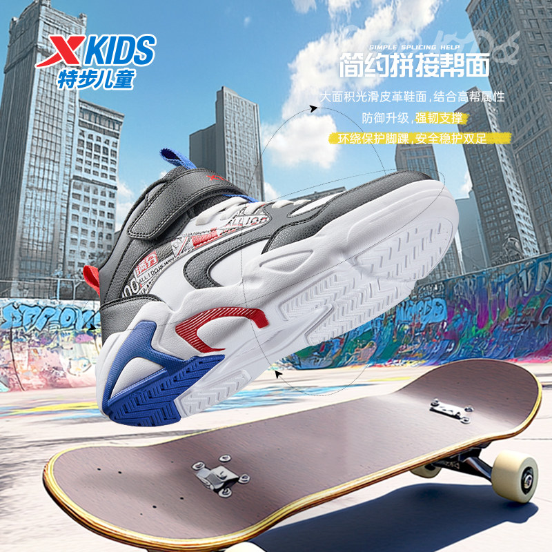 Xtep, туфли, детская спортивная нескользящая спортивная обувь для мальчиков, кроссовки на липучке для отдыха, осенние, тренд сезона, мягкая подошва, подходит для подростков