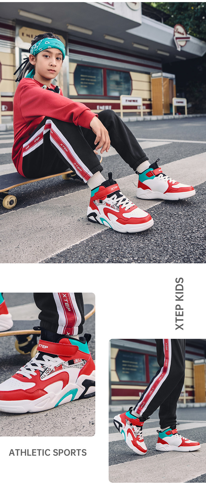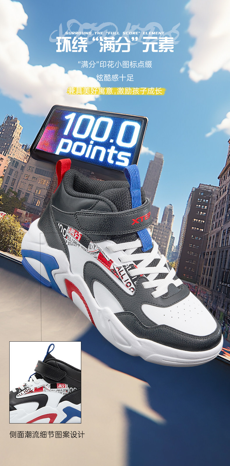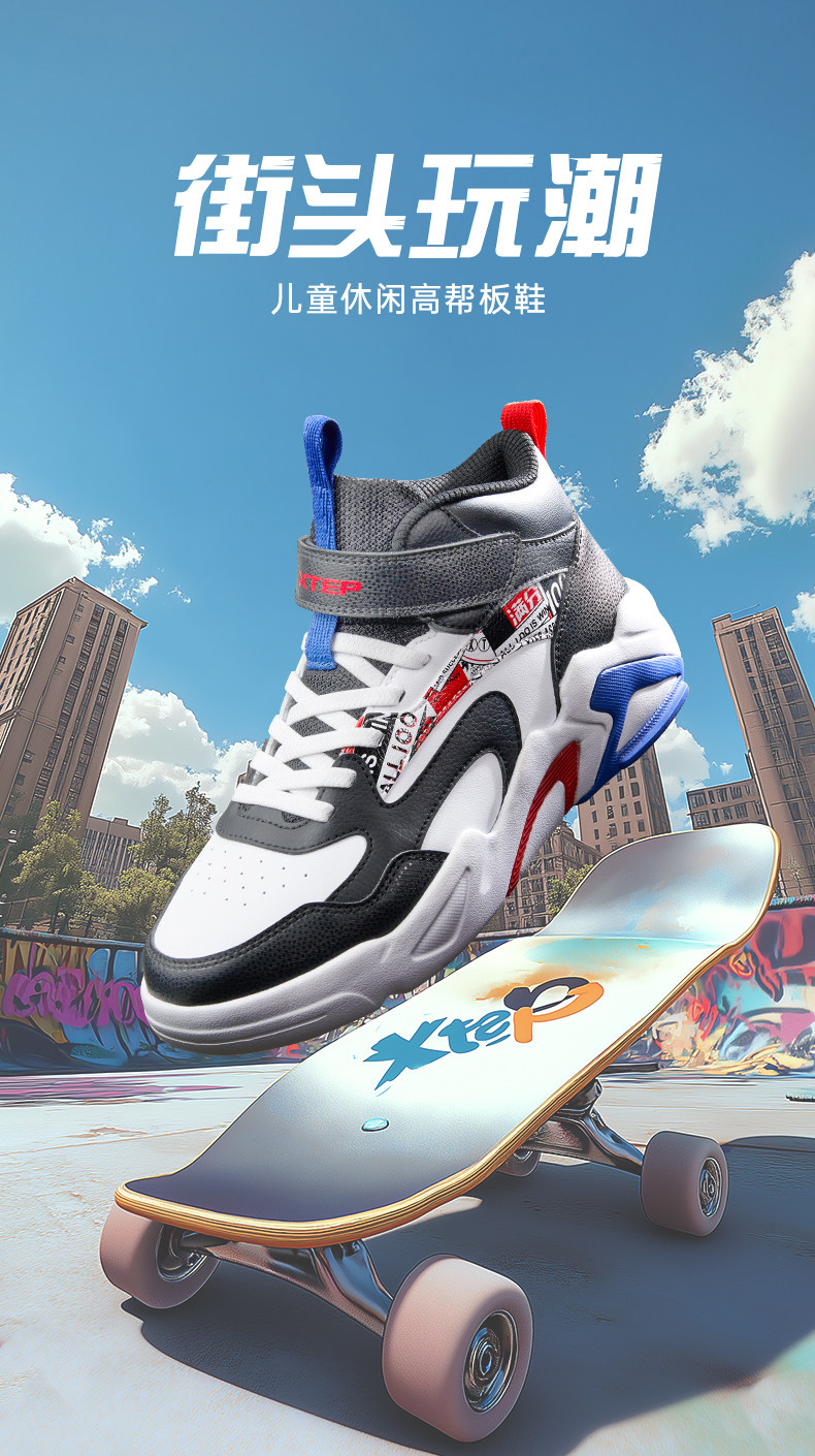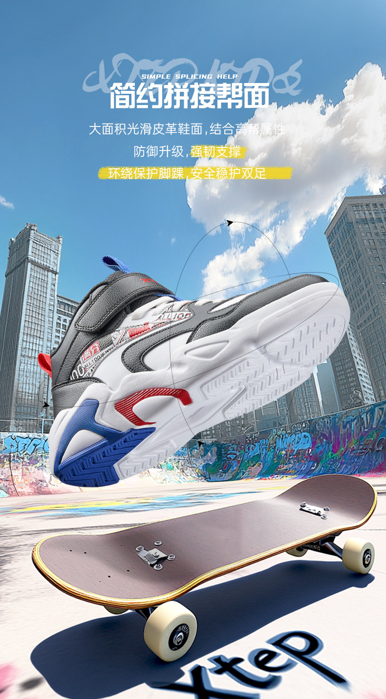 Xtep, туфли, детская спортивная нескользящая спортивная обувь для мальчиков, кроссовки на липучке для отдыха, осенние, тренд сезона, мягкая подошва, подходит для подростков