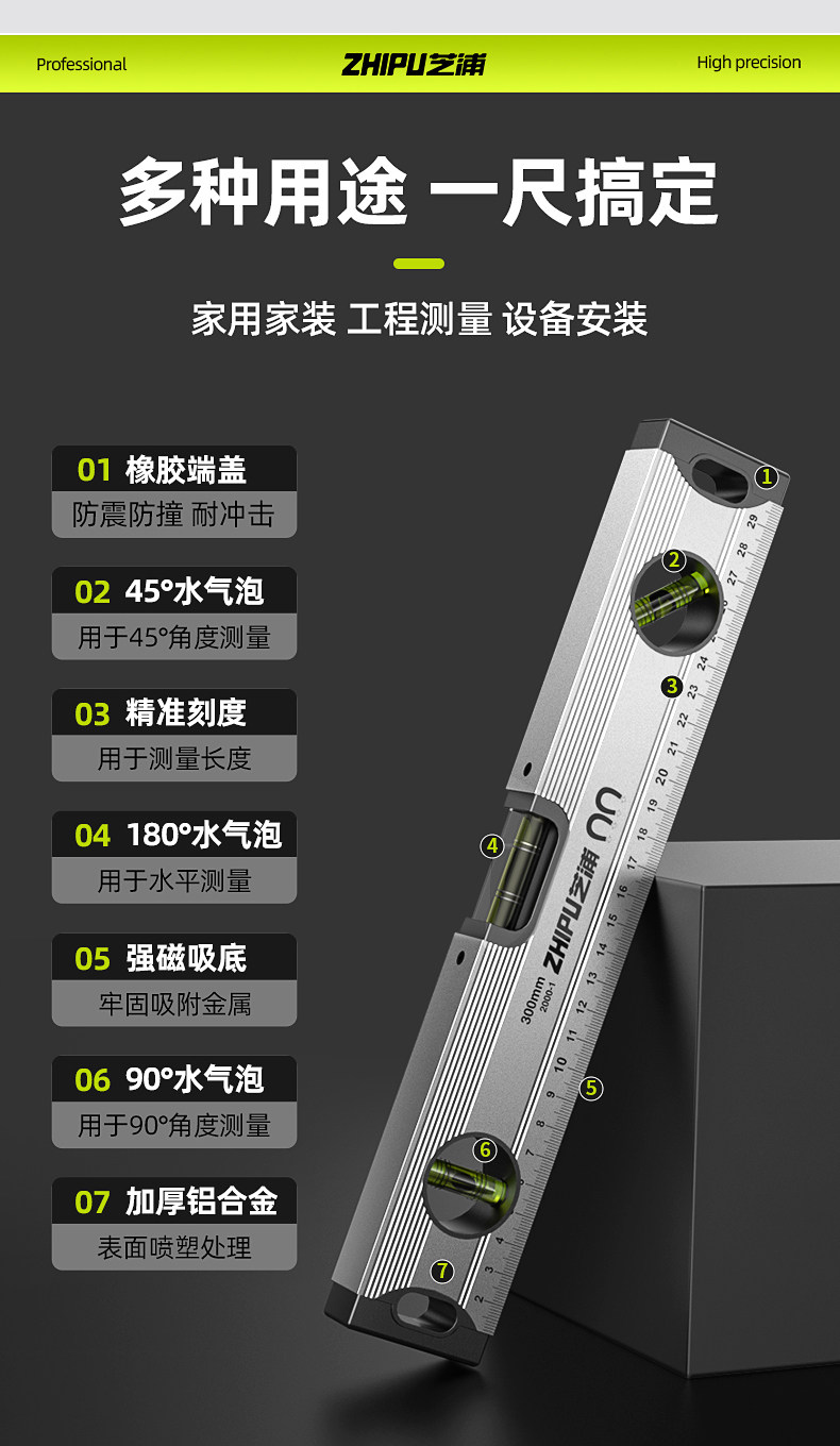 Уровень, высокоточная плоская водная линейка, артефакт, линейка из твердого литого алюминия, линейка баланса, маленький сильный магнитный уровень