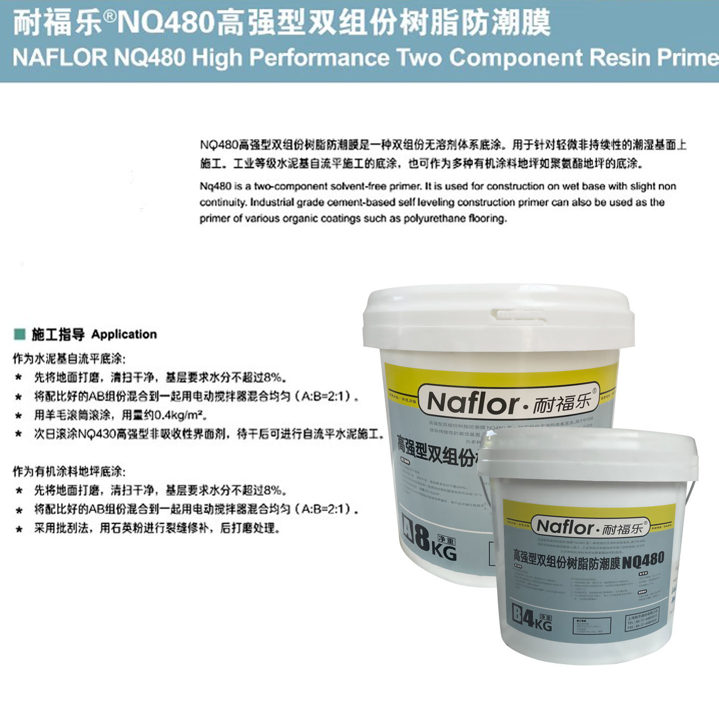 耐福乐 Высокопроницаемая двухкомпонентная смола-защищенная пленка NQ480 среднее средство лечения пола NQ450 Усиление цемента