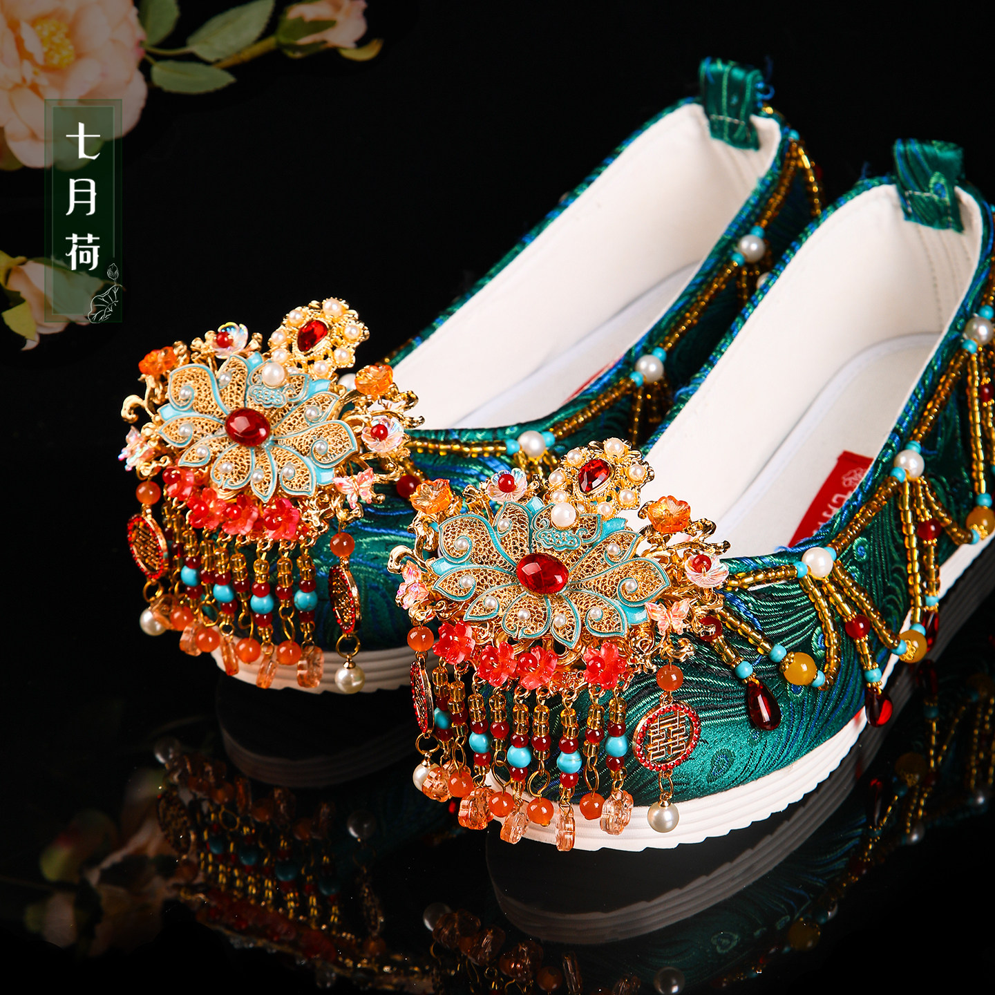 Плюс бархатные июльские лотосы, оригинальные туфли ручной работы [ruyijixiang] Xiuhe, свадебные туфли для невесты, роскошные китайские свадебные туфли