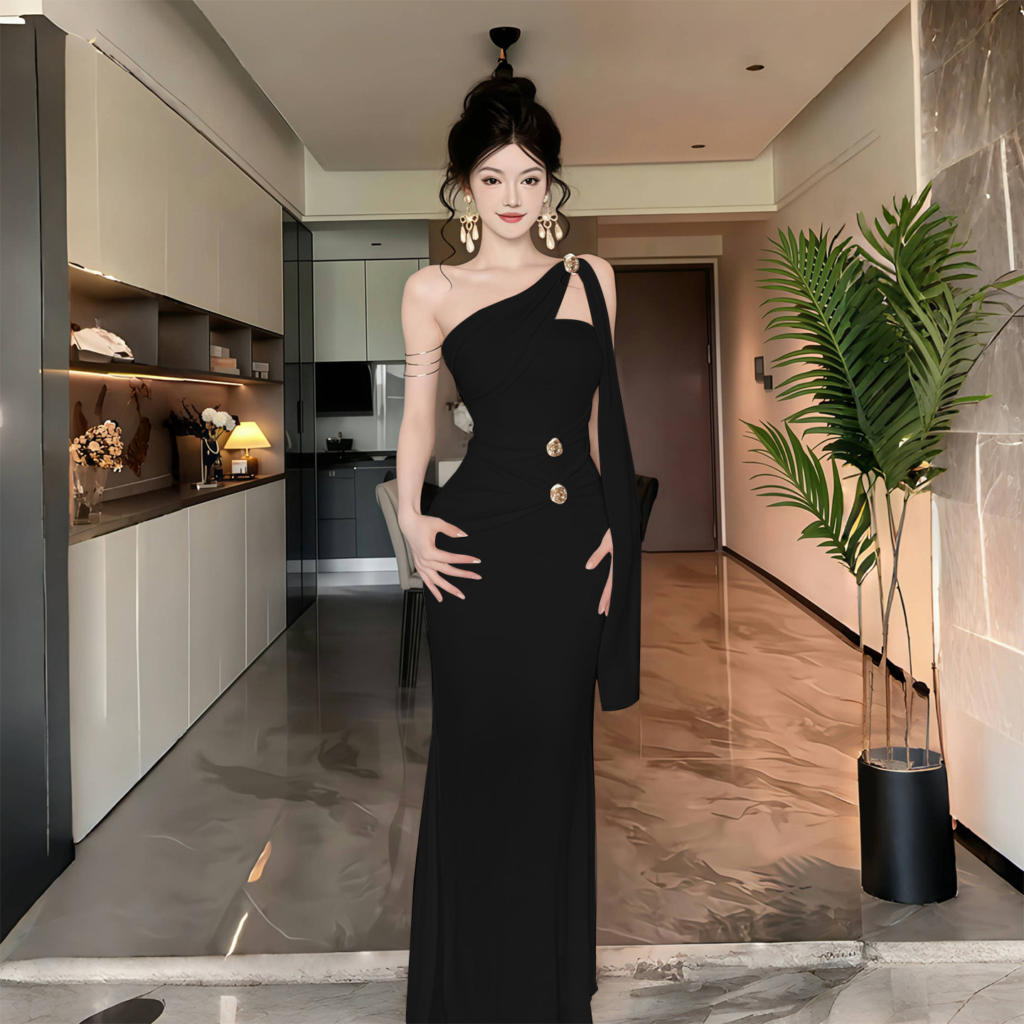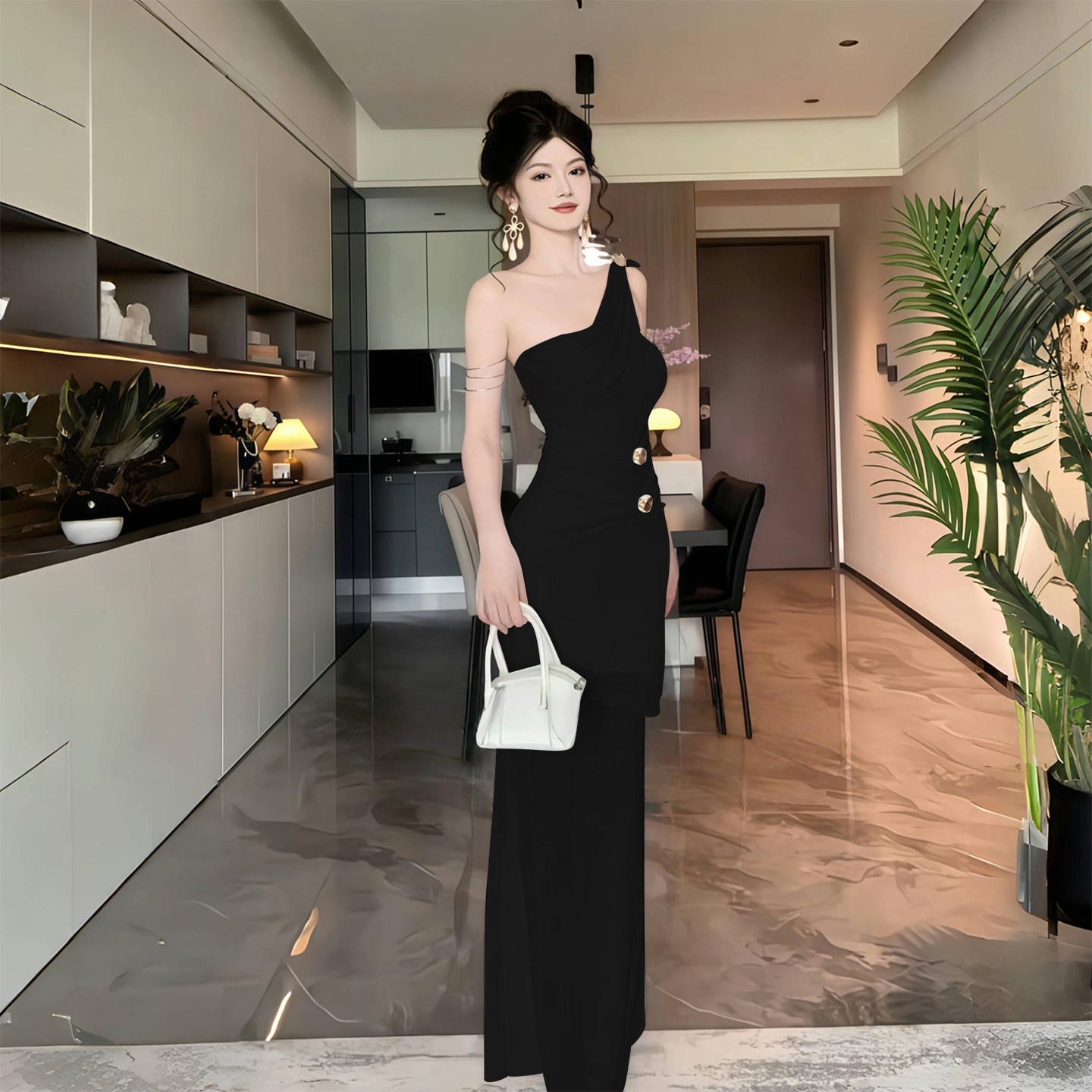 Instahot Черное платье без рукавов с греческой богиней, женское черное платье 2025 года, новое летнее платье с наклонным плечом и висячим вырезом