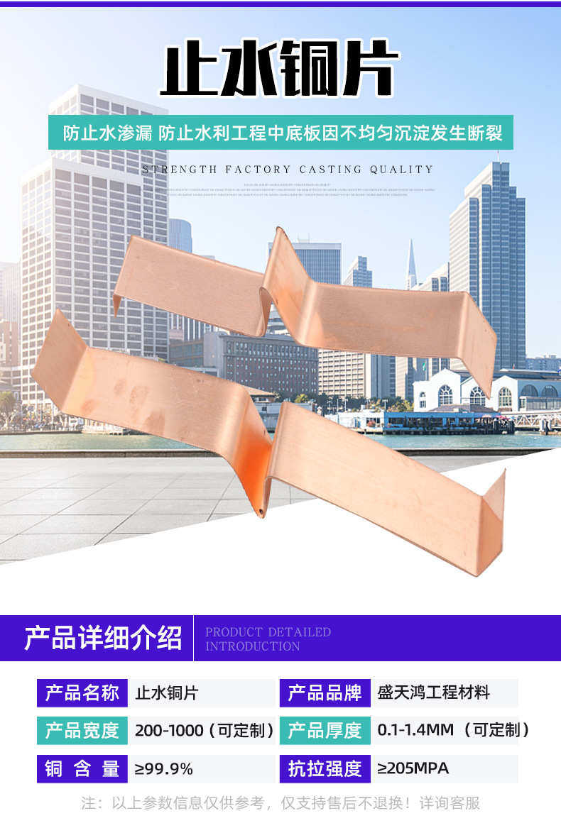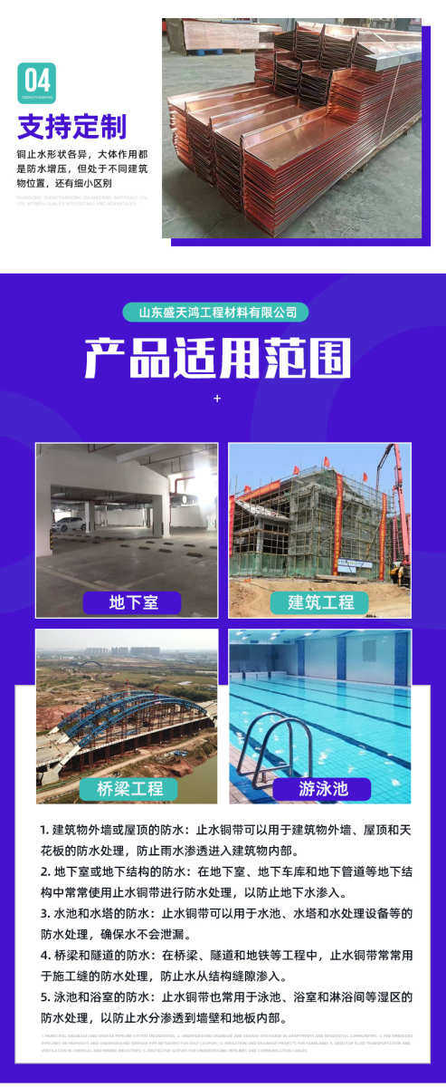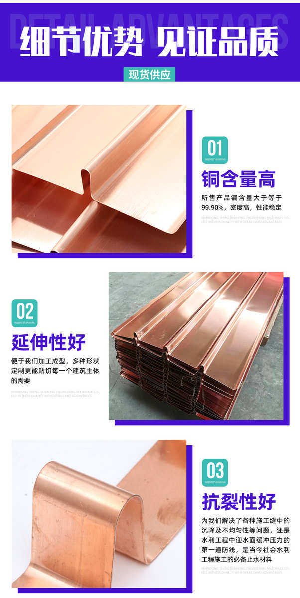 Вертикальная гидроизоляция для деформационных швов в проектах водного хозяйства, медная гидроизоляция типа UVW для строительства плотин и мостов, гидроизоляционная медная пластина