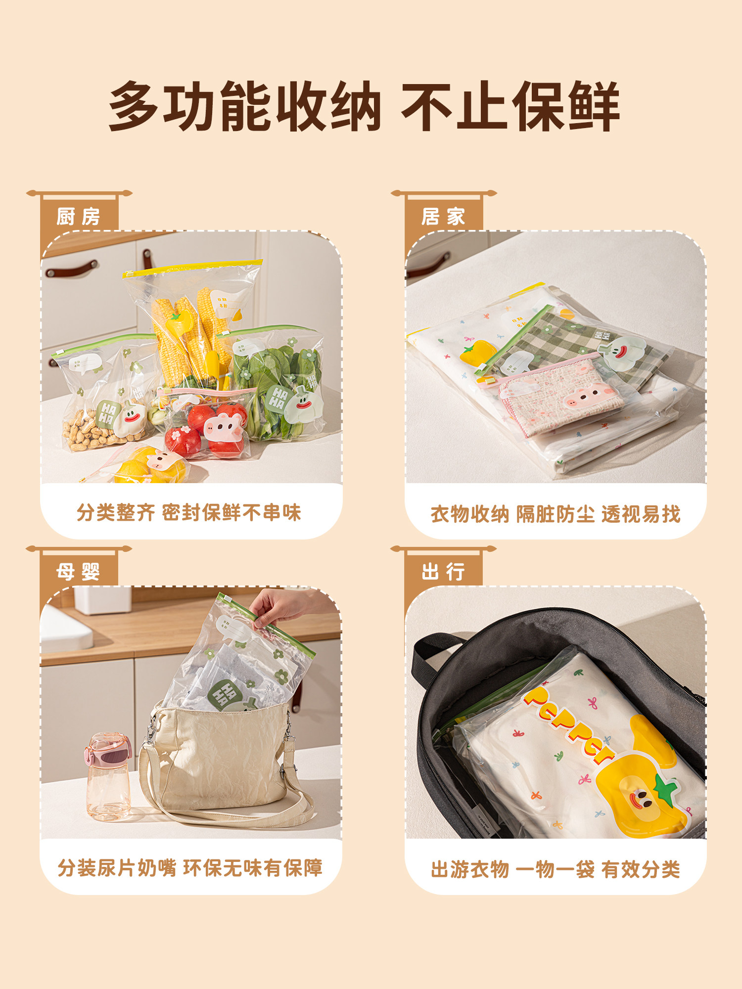 Герметичный пакет для хранения свежей моркови, пищевой бытовой упаковочный пакет, специальный пластиковый пакет для холодильника и морозильной камеры, мультяшный пакет на молнии