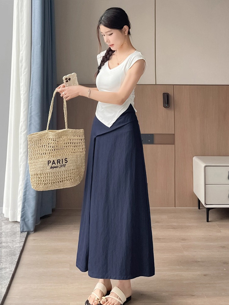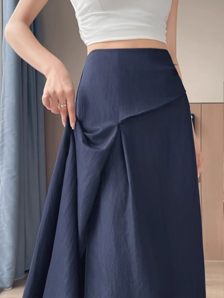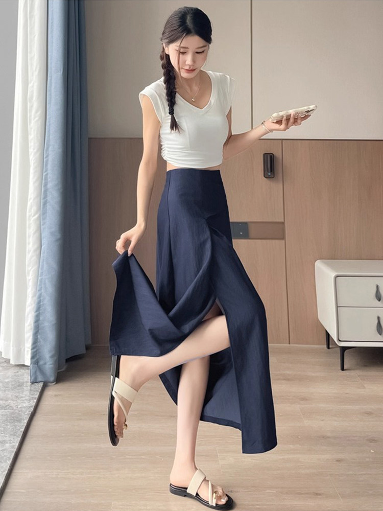 Дизайнерская летняя длинная юбка, из хлопка и льна, 2026 года, тренд сезона, высокая талия, свободный прямой крой, длина макси
