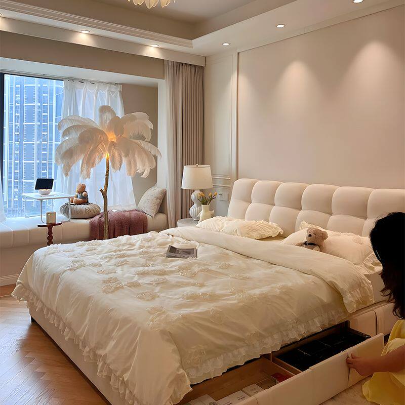 Chuwu Modern Simple Cream Puff Bed Leath