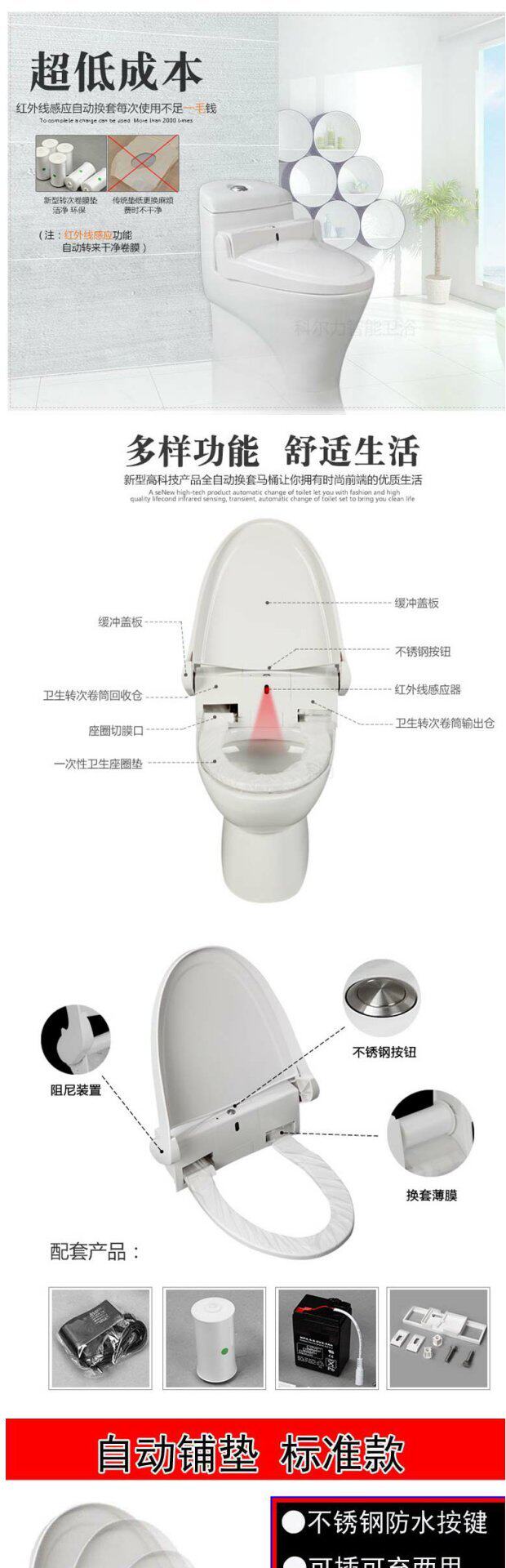 Автоматический туалет, одноразовая подушка, электрические пластиковые умные индукционные колечки
