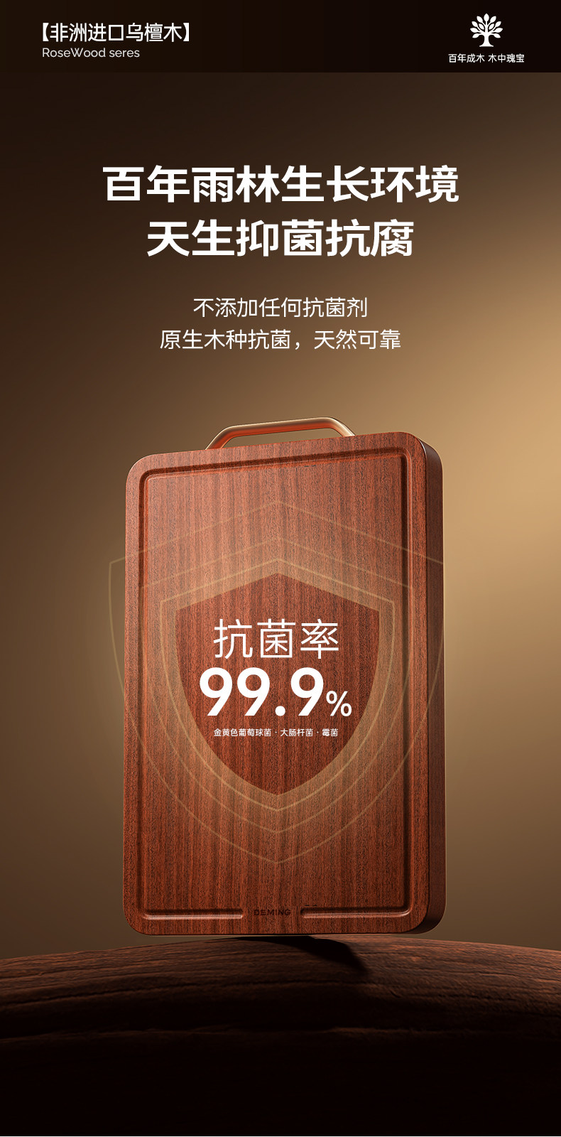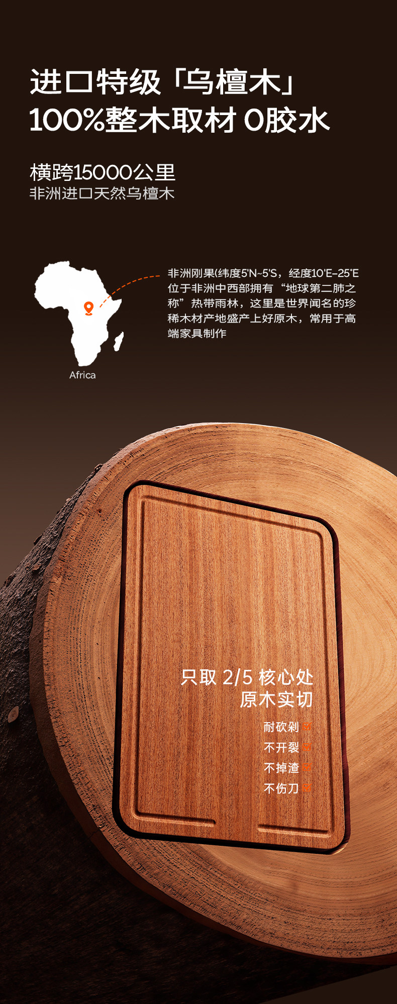 Ebony цельная деревянная режущая доска антимолд и антибактериальная домохозяйская пищевая продовольственная плата.