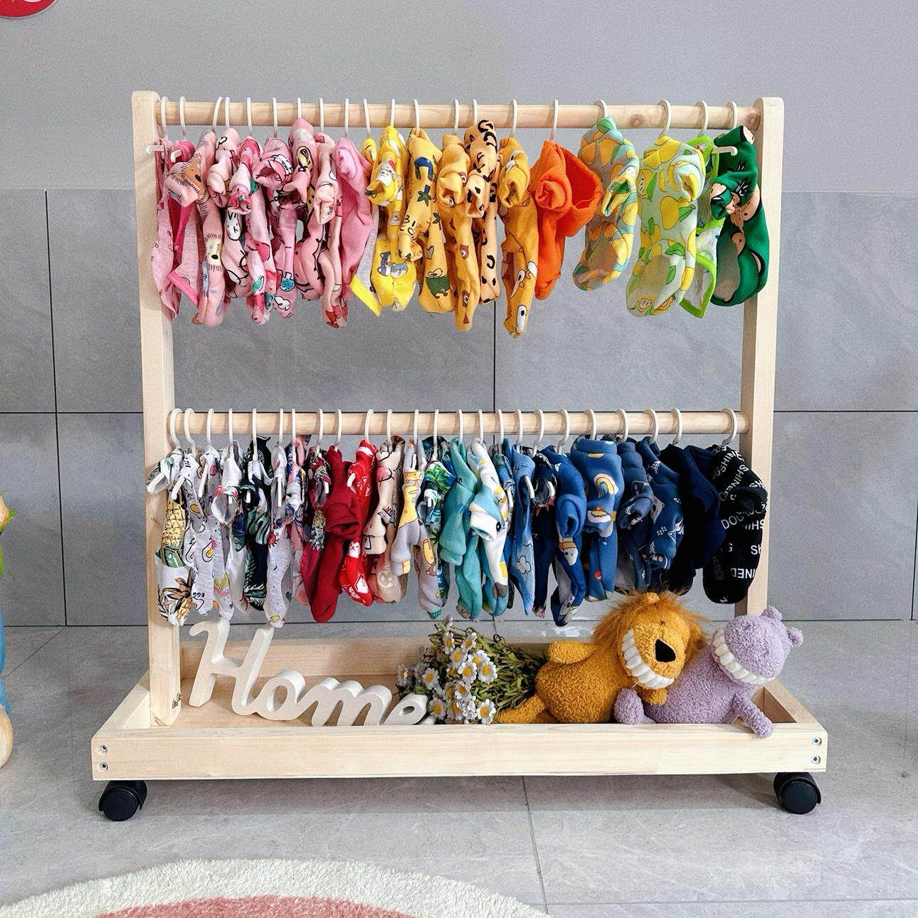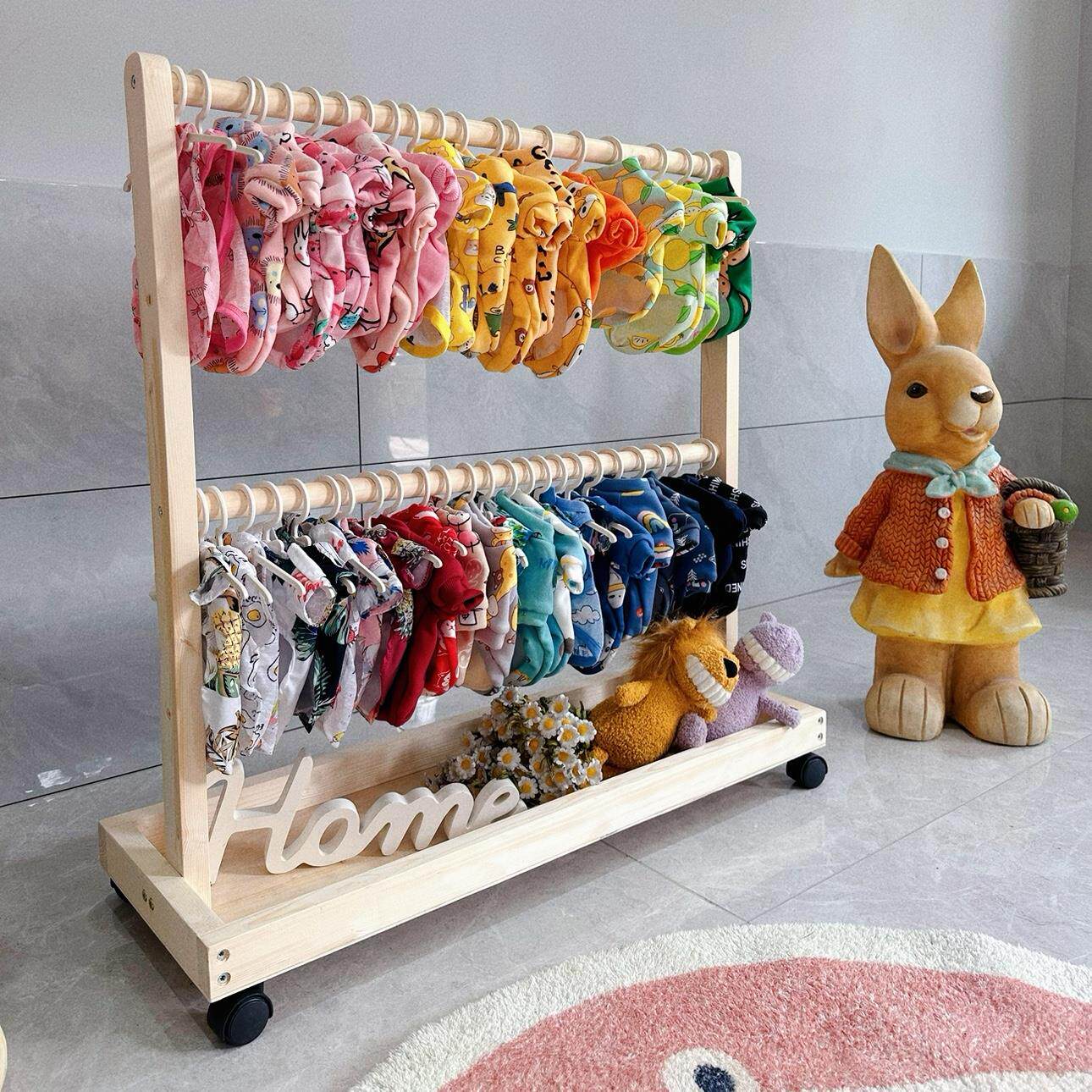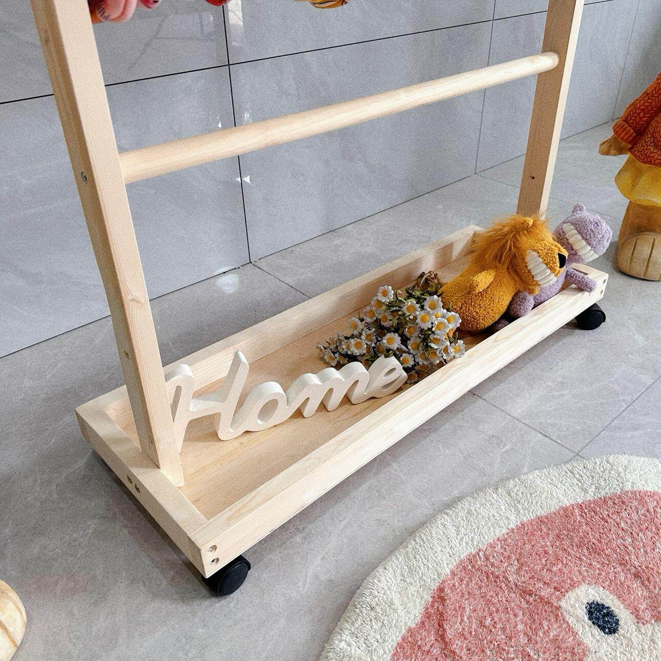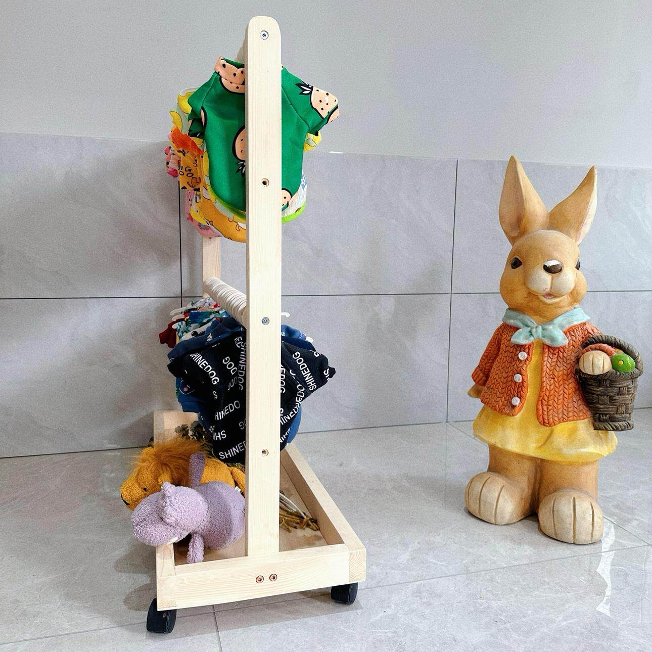 一芯有宠 ® Сплошная деревянная напольная вешалка для хранения домашних животных подставка для одежды для кошачья стойка с колесной стойкой для вытяжки