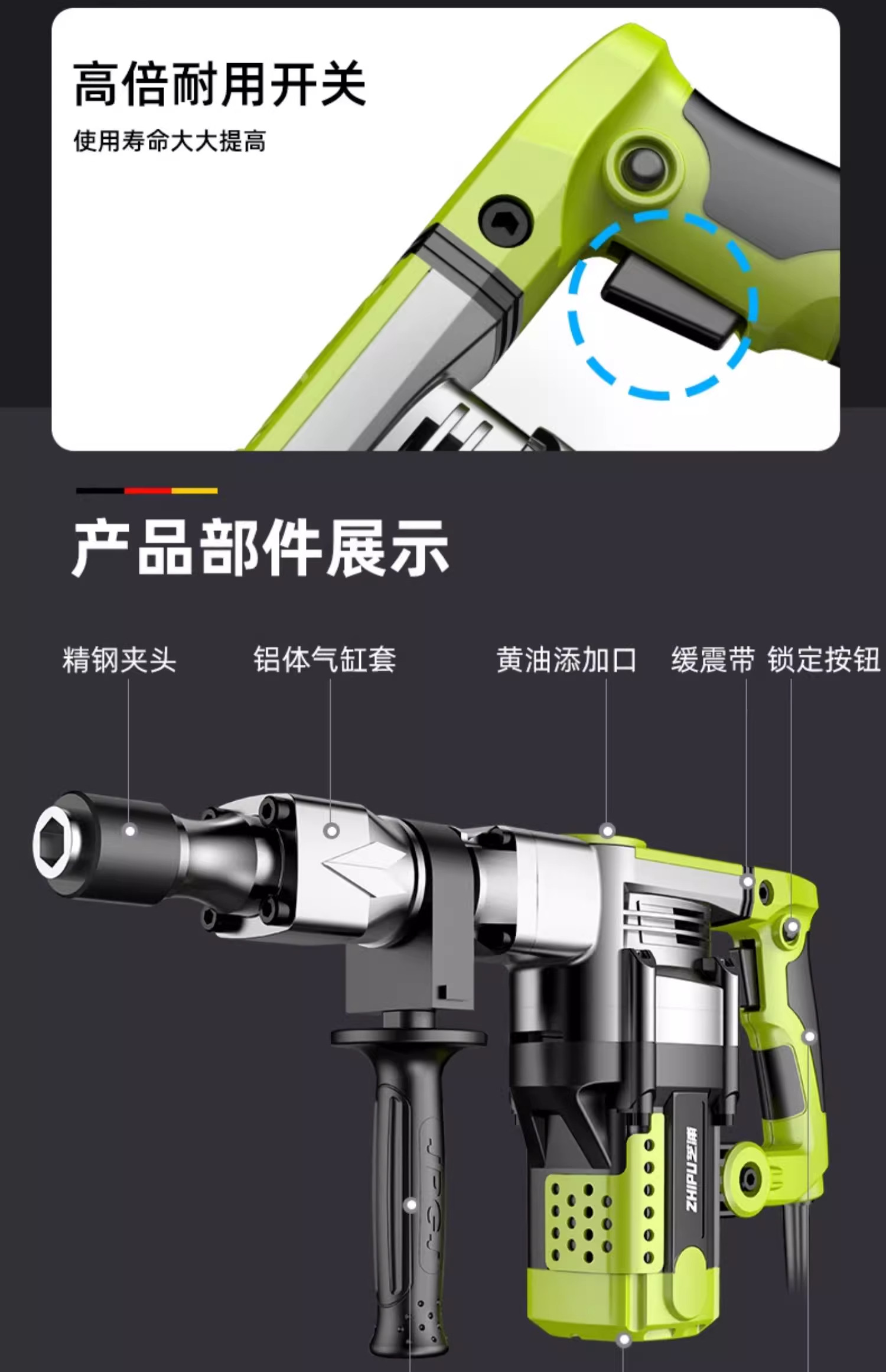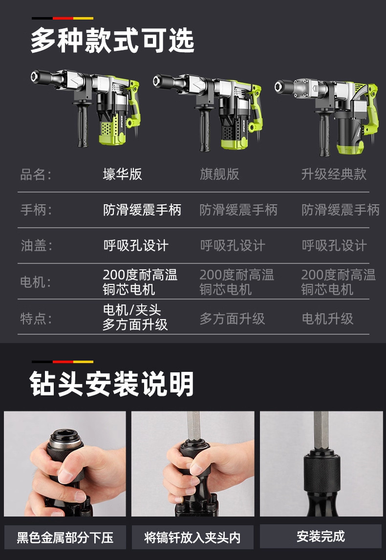 95 большой электрический отбойный молоток, сверхмощный ударный электрический молот промышленного класса для одноразового профессионального строительства бетона и сноса стен.