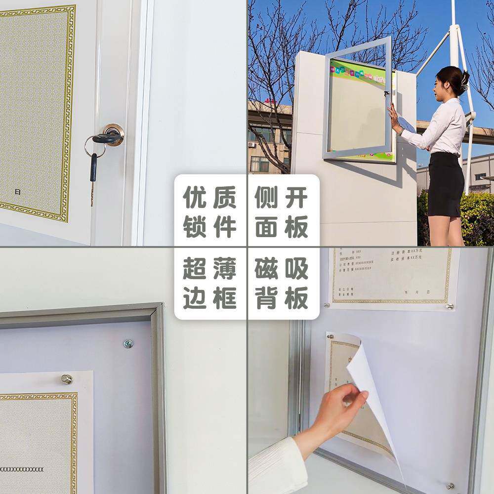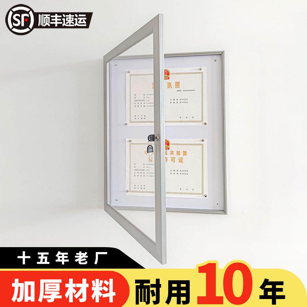Запираемая рамка для бизнес-лицензий, боковое открывание, настенное рекламное окно из алюминиевого сплава, рекламная рамка, информационная доска объявлений