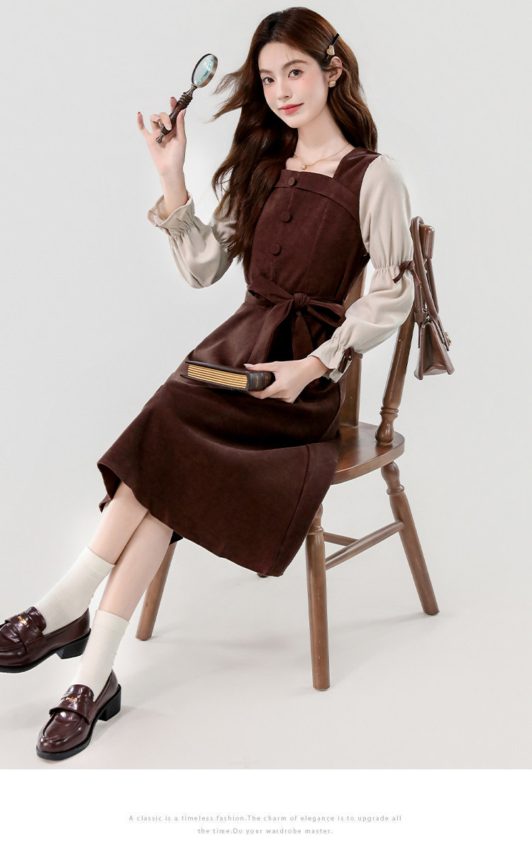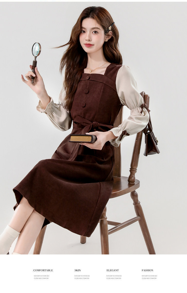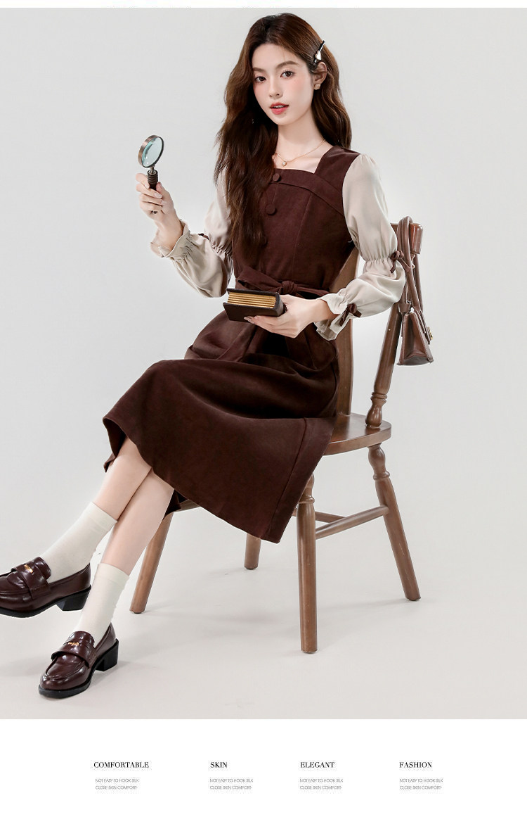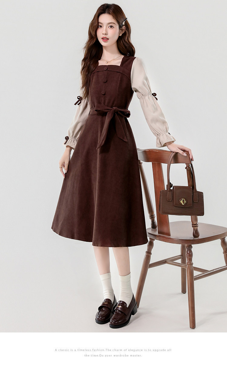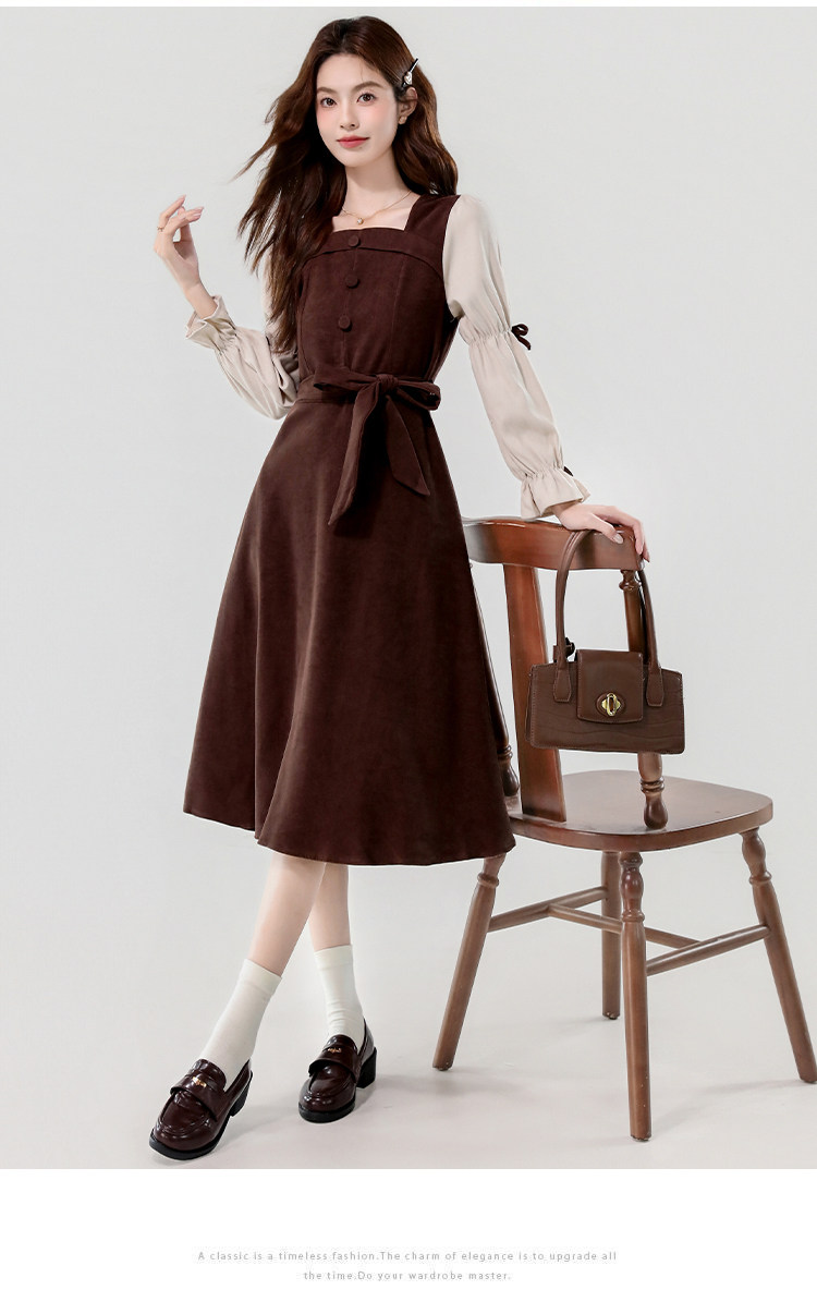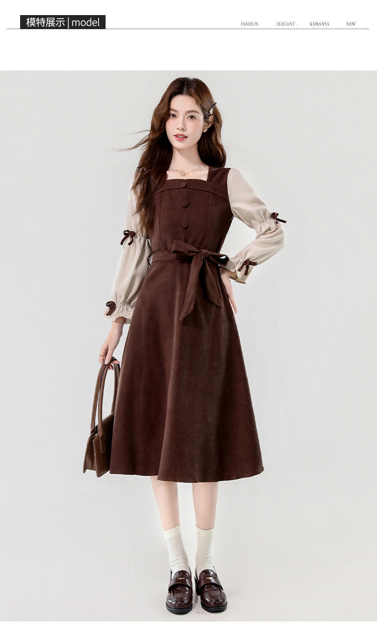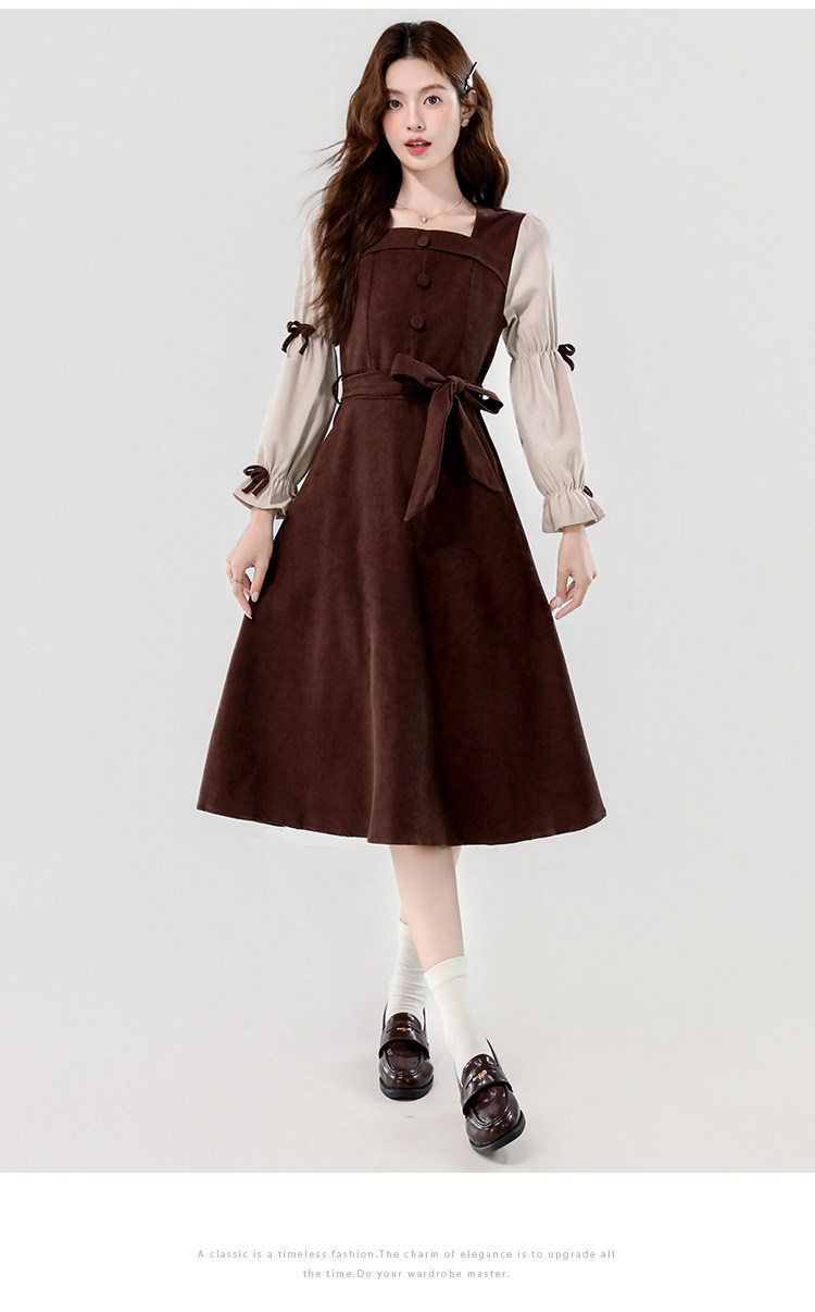 Лонгслив, осеннее платье, вельветовая длинная юбка, квадратный вырез, рукава фонарики