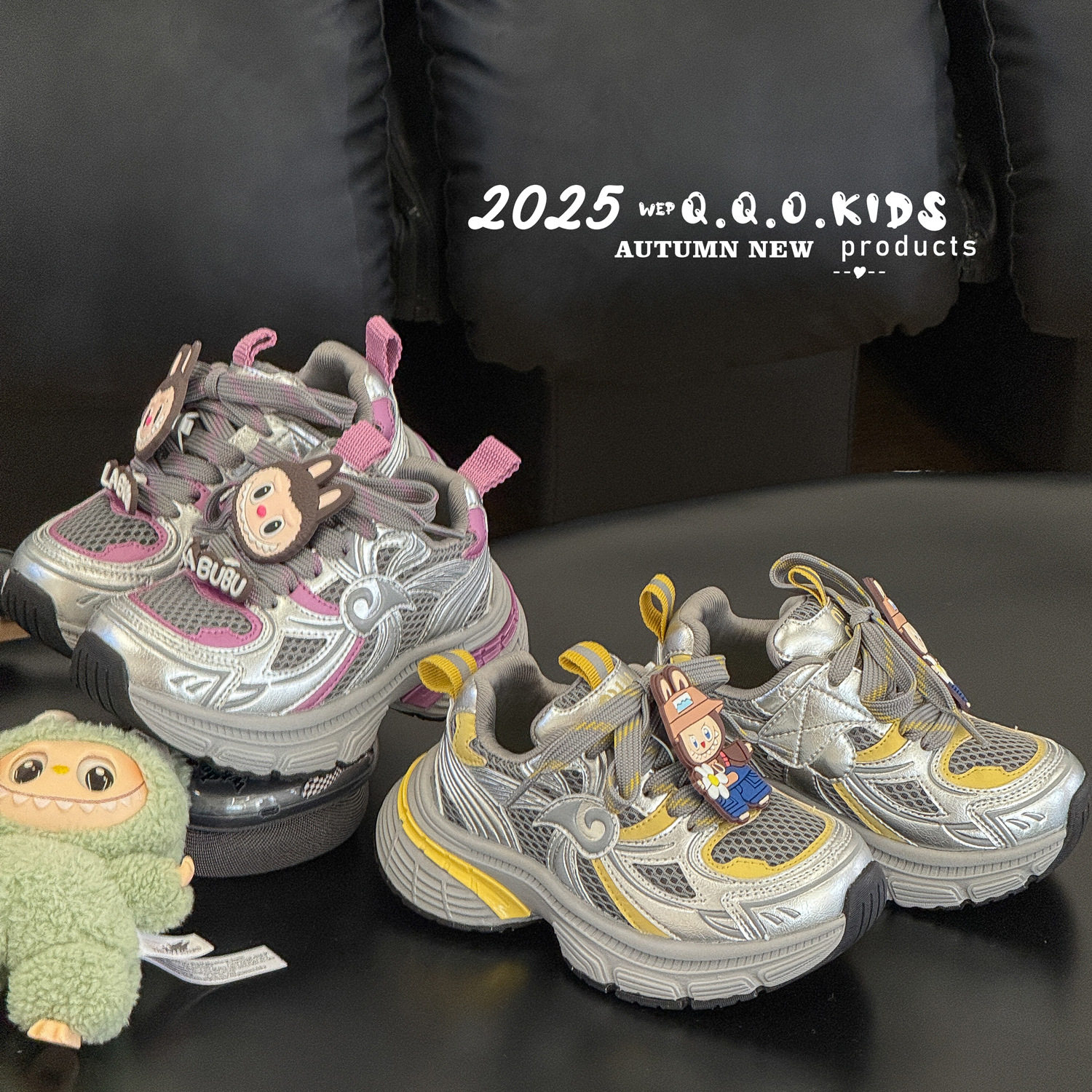 QQO детская обувь, осень 2025, новая детская спортивная обувь для девочек, обувь для папы labubu с рисунком, студенческие кроссовки
