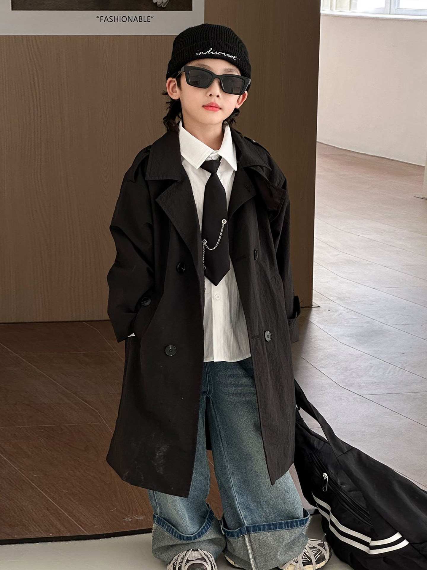 Черный плащ для мальчиков, осеннее детское пальто, в британском стиле, в западном стиле
