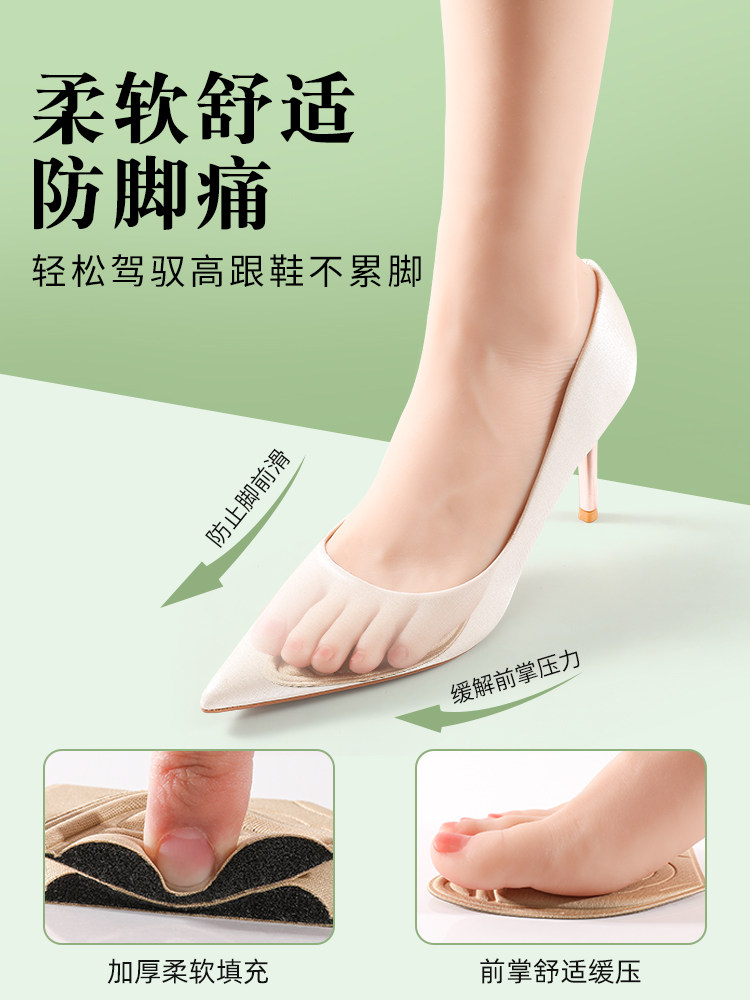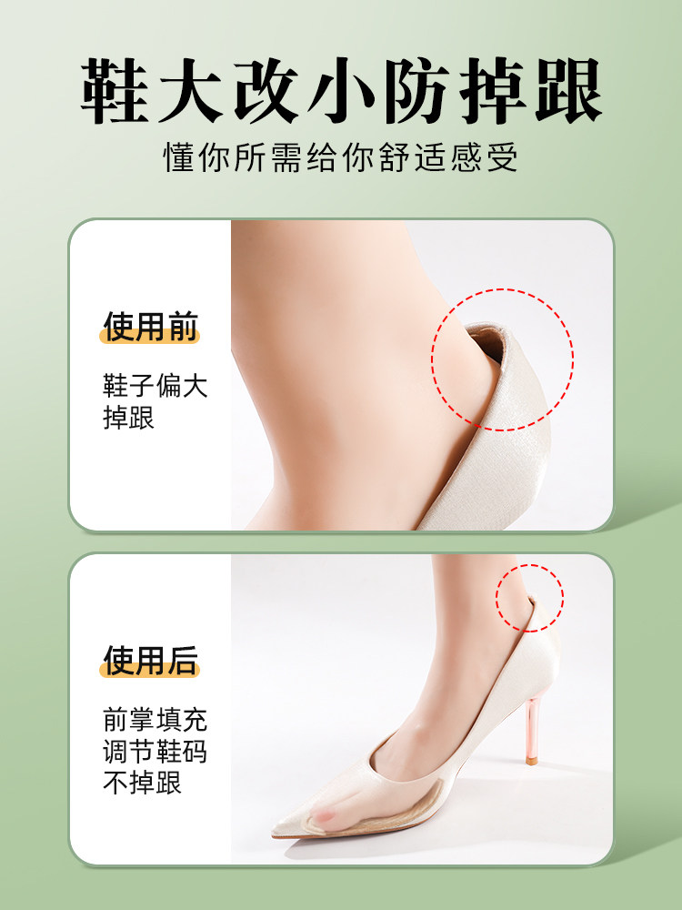 Средство против боли при ношении высоких каблуков очень мягкое и не утомляет. Он предотвращает падение стопы и изнашивает подушечки в передней части стопы. Туфли слишком большие, подушечки в передней части стопы заменены на меньшие.