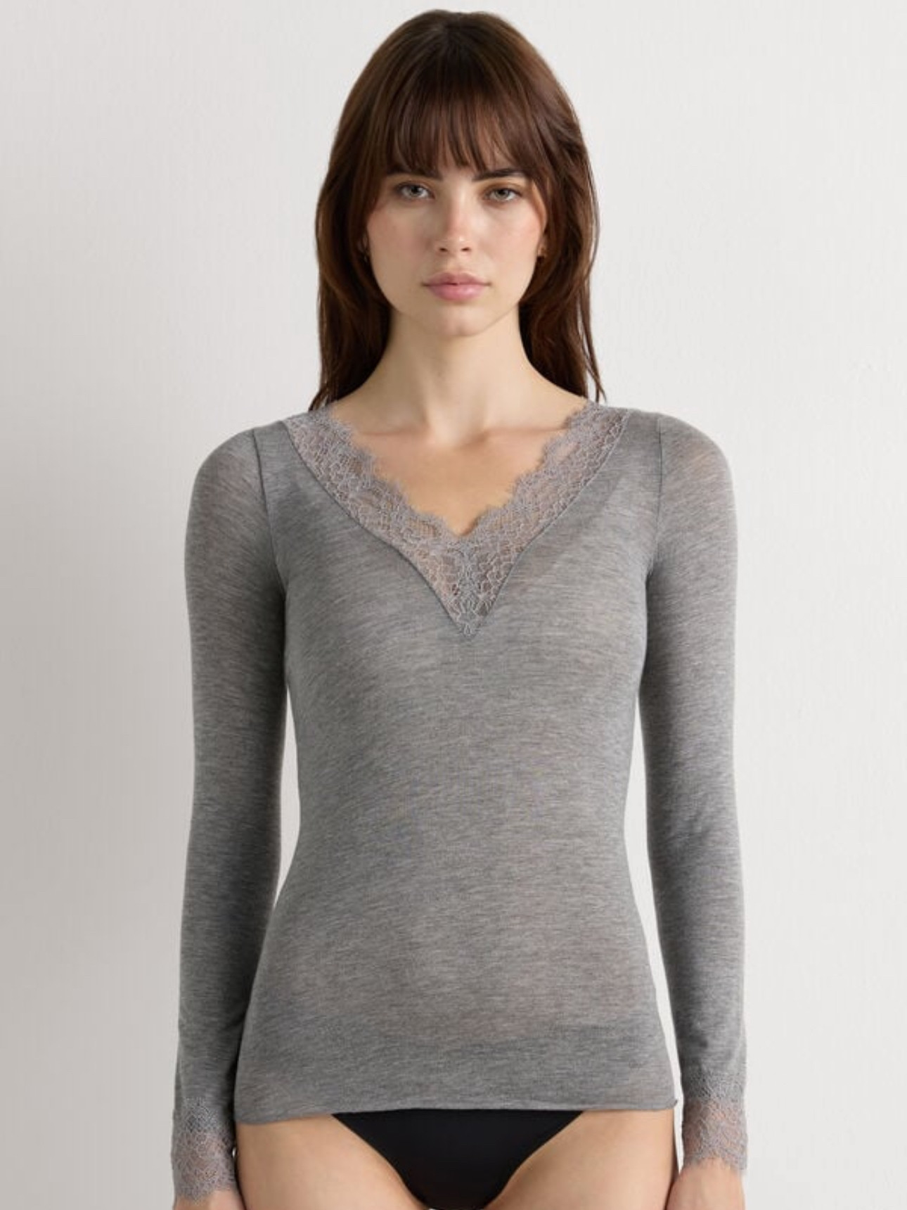 Кашемировый сверхлегкий кружевной свитер, базовый приятный телу лонгслив, V-образный вырез