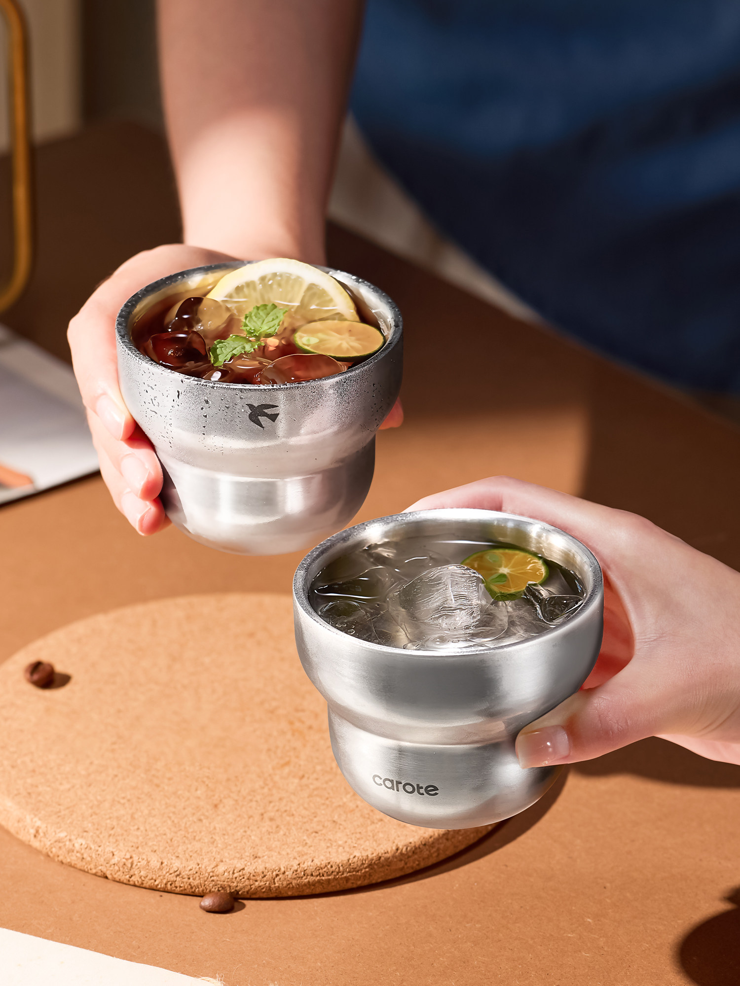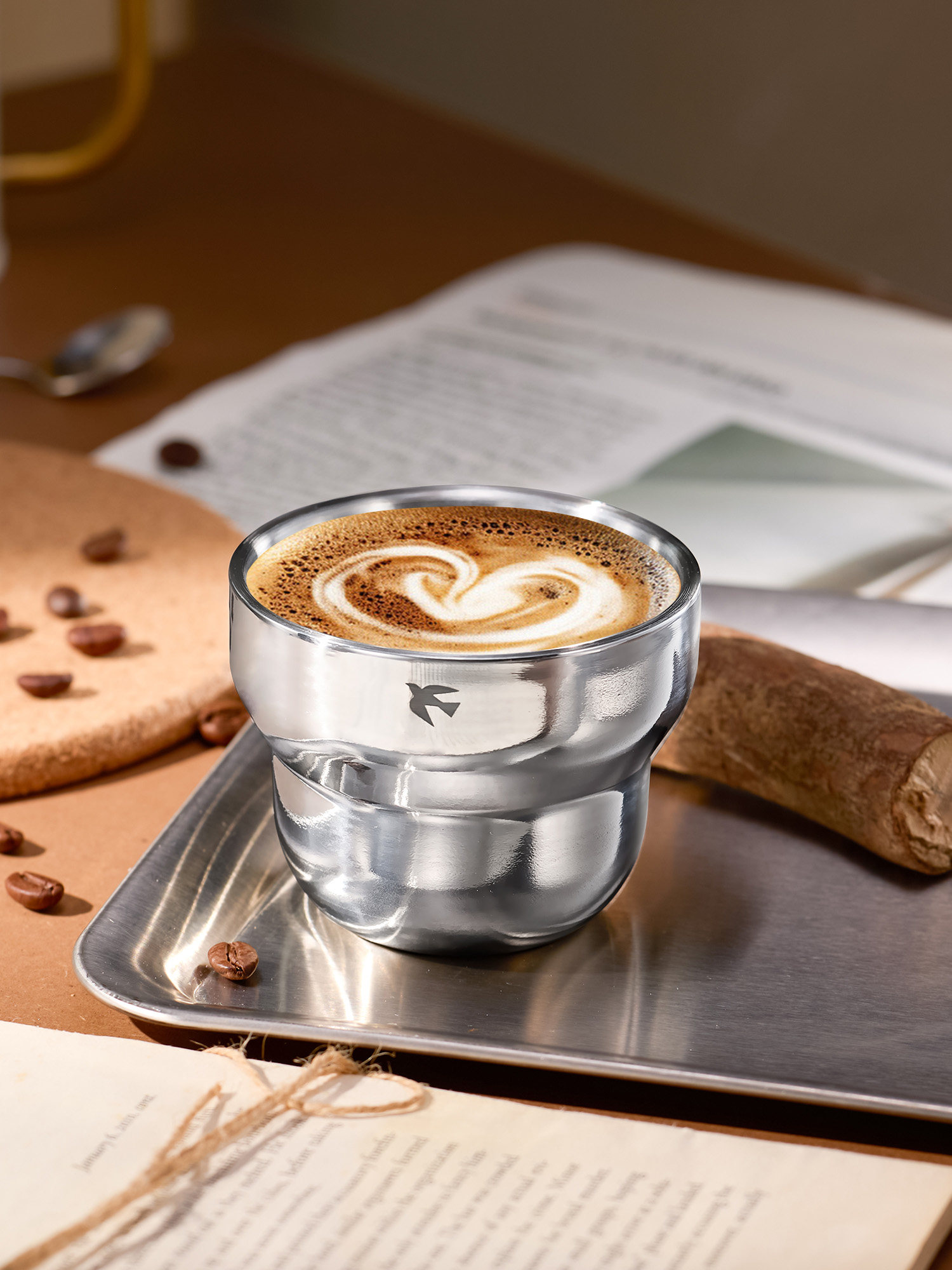 Кофейный двухэтажный портативный слюнявчик из нержавеющей стали со стаканом