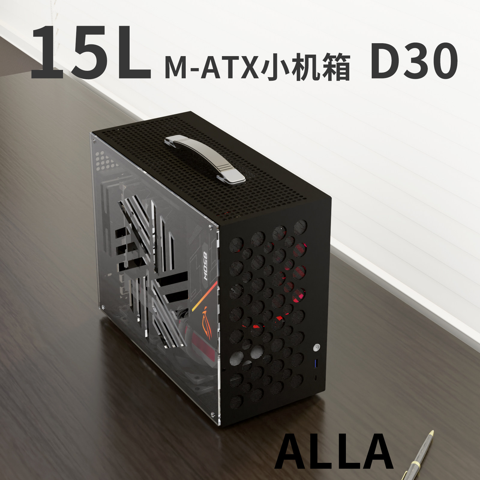ALLA D30 Акриловое прозрачное боковое отверстие MATX Маленькое шасси Портативный небольшой компьютер Маленькое основное шасси