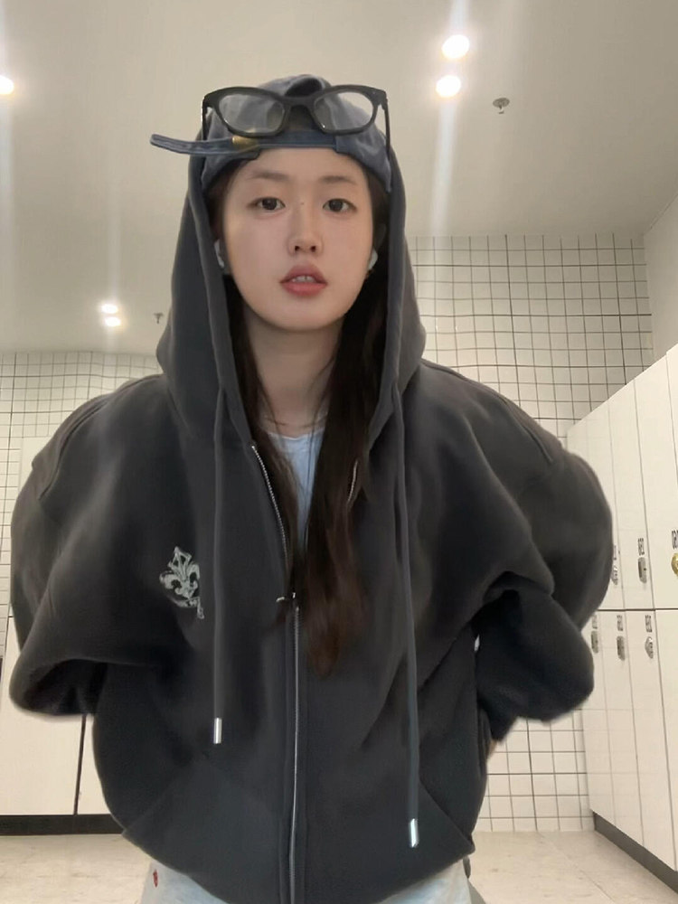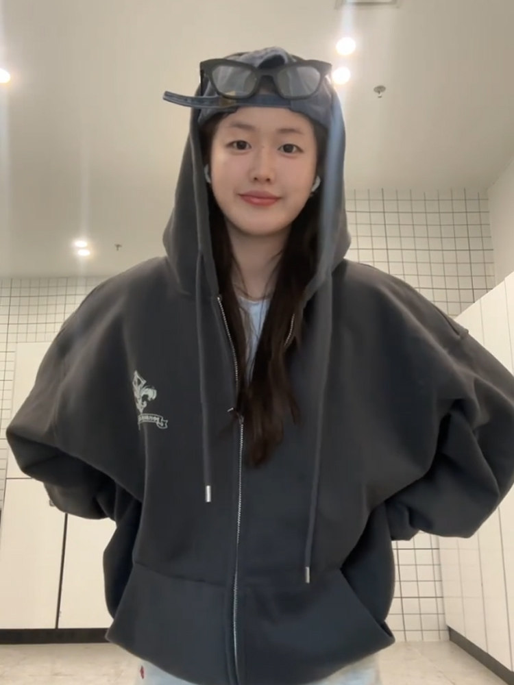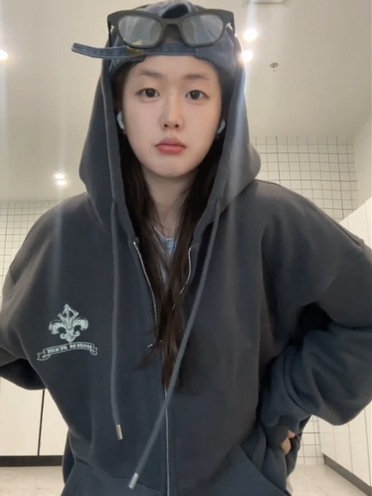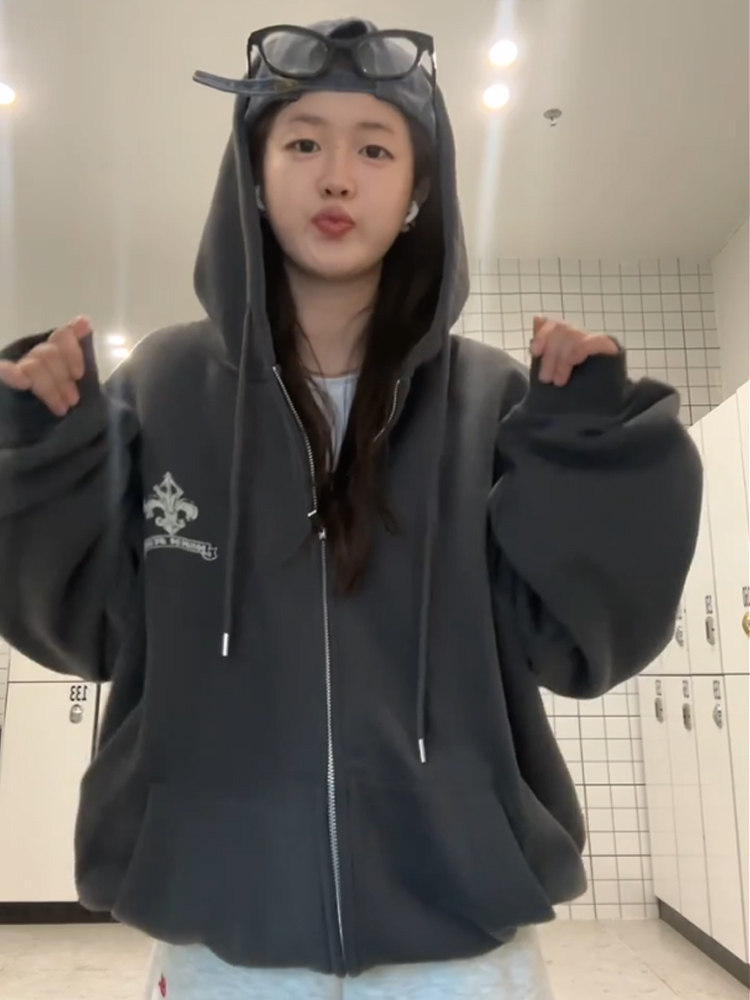 Ретро демисезонная толстовка с капюшоном, куртка, в американском стиле, для влюбленных, оверсайз