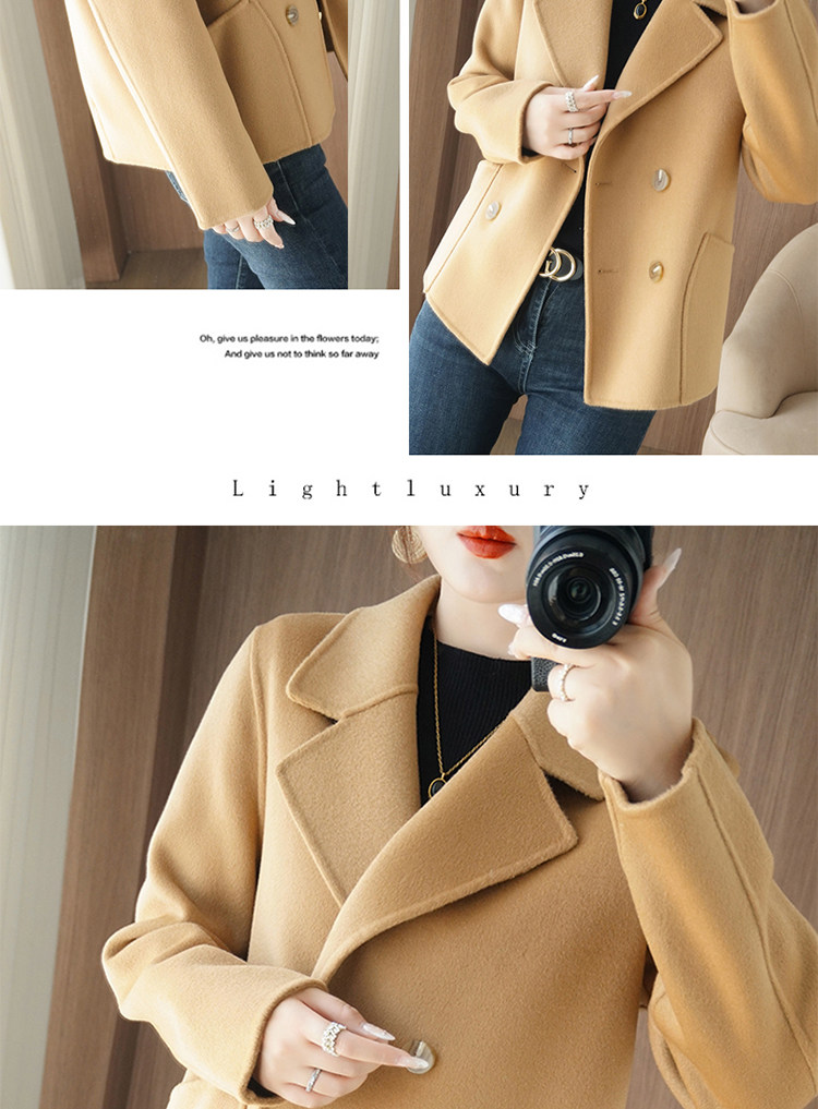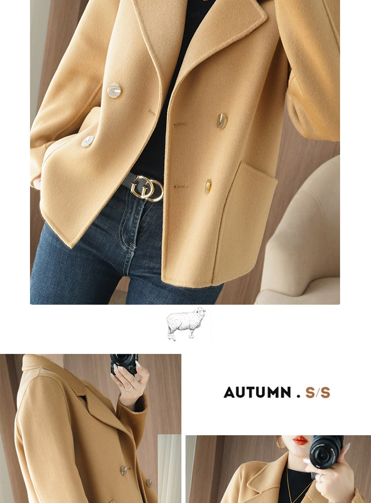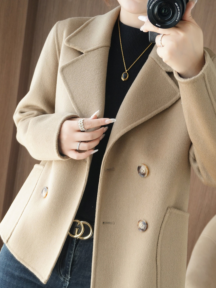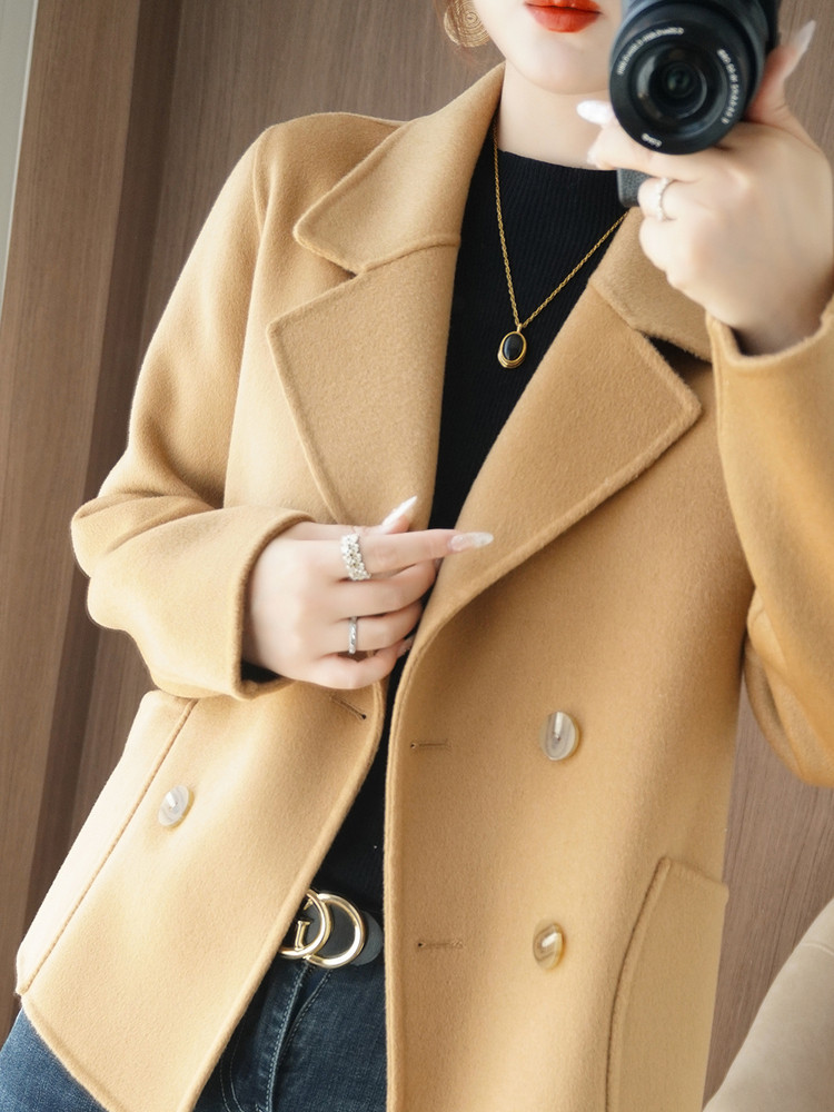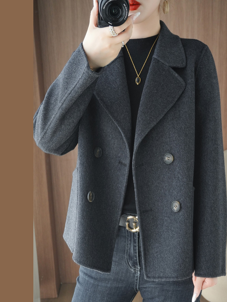 Шерстяной двусторонний кашемировый короткий костюм, шерстяное шерстяное пальто, подходит для подростков